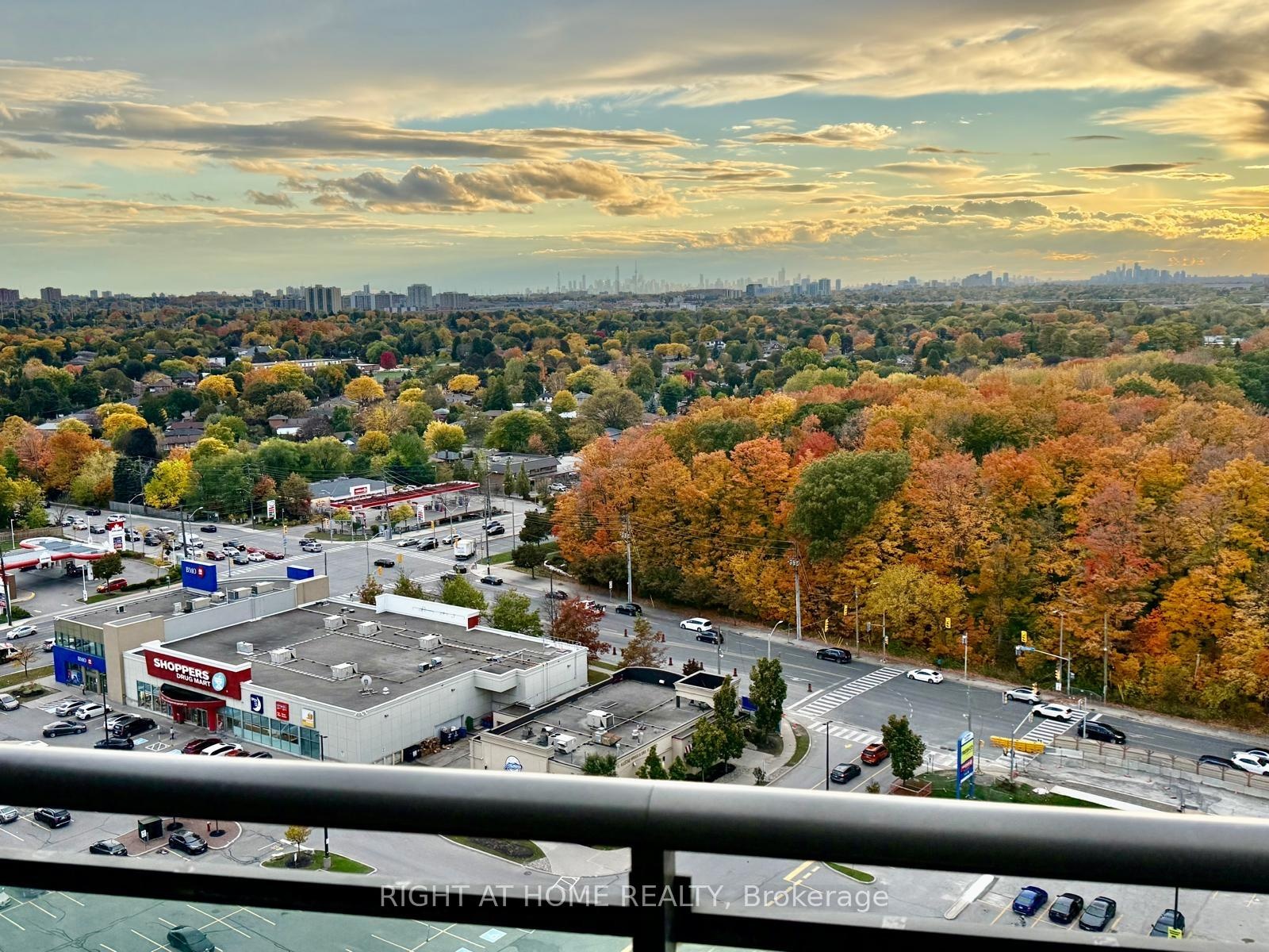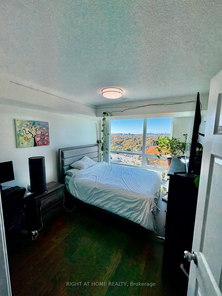 A stunning 737 Sqft suite with unobstructed South-West facing view all the way to CN Tower, featuring 2 bedrooms 1 bath and open concept Living-Dining-Kitchen unit, laminate floors, balcony and ensuite laundry. Parking, Locker, Water, Heat, CAC, Building Insurance and all common expenses included. Amenities included 24 hrs Concierge, Indoor Pool, Sauna & Party Room. Located close to HWY 401, TTC, steps to STC & City Hall, YMCA, Freshco, Shoppers Drugmart, Restaurants, Bars and Lot more.