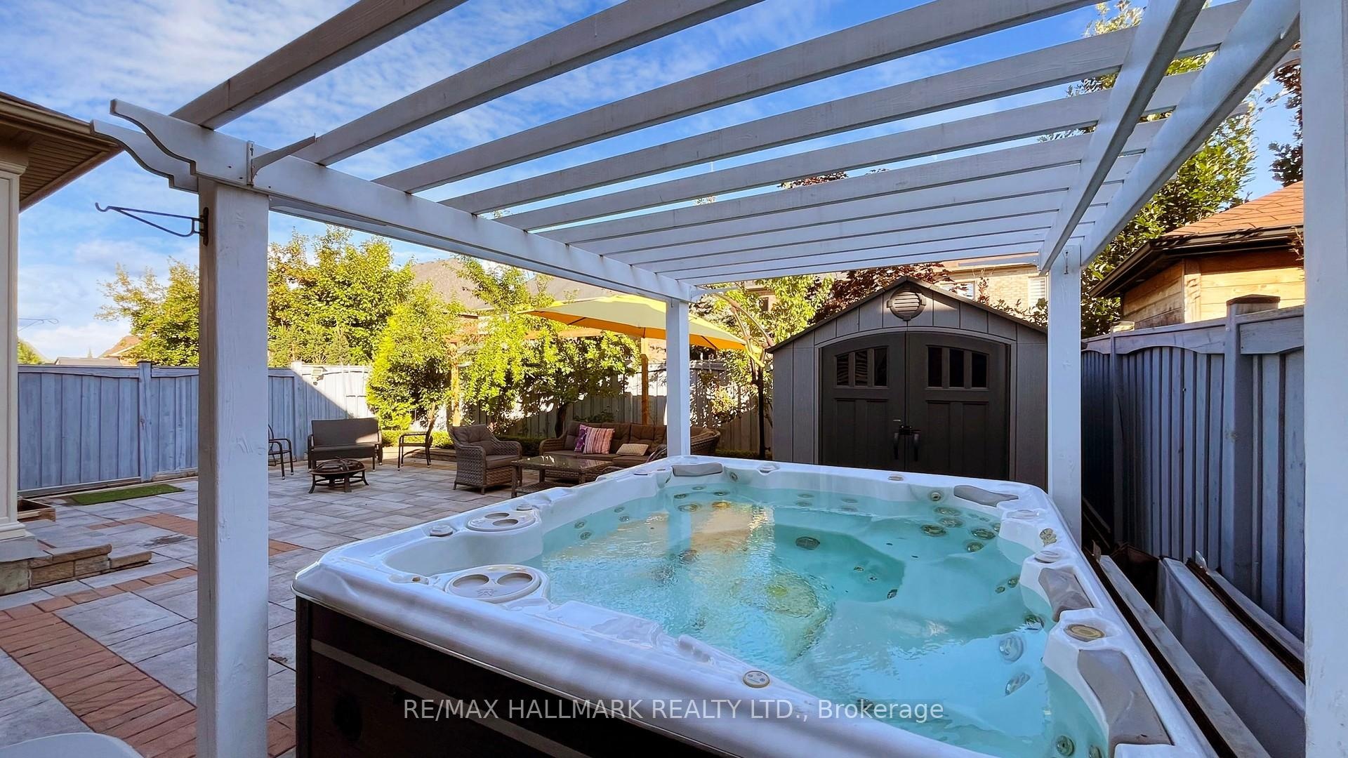 An absolutely stunning home, a must-see! This family home features 4+1 bedrooms and 5 bathrooms with upgraded finishes throughout. Enjoy hardwood floors, wainscoting, crown moulding, and custom millwork. The maple kitchen doors and built-in appliances, including a 48" fridge, 36" gas stove, wine cooler, and two sinks, add a touch of elegance. The formal dining room boasts waffled ceilings and a servery to the kitchen. An additional main floor room offers flexibility to be used as an office or library, complete with a custom wall unit. The bright family room features a gas fireplace, crown moulding, and an abundance of natural light. The master bedroom also has a cozy gas fireplace, walk-in closet, and large ensuite. Pot lights are installed throughout the home, providing a warm ambiance.The lower level boasts impressive finishes, ideal for entertaining. The massive basement includes French doors, high ceilings, an additional room, a wine closet, wet bar, bar fridge, drop moulding, coffered ceilings with robe lighting, and speaker system wiring rough-in, perfect for entertaining. Step outside to a backyard oasis with interlocks, fenced yard, fruit trees, an arbor, and an oversized hot tub. The powder room features a custom vanity, adding to the home's unique charm. The garage is equipped with 220V for charging an EV, shelving, cabinetry, and a bike rack. Additionally, the home has window coverings, shutters, and KitchenAid appliances for a modern touch.Close to amenities, top-rated schools, parks, trails, and highways, this exceptional property with luxurious features and finishes is not to be missed. Schedule a viewing today and make this dream home yours!