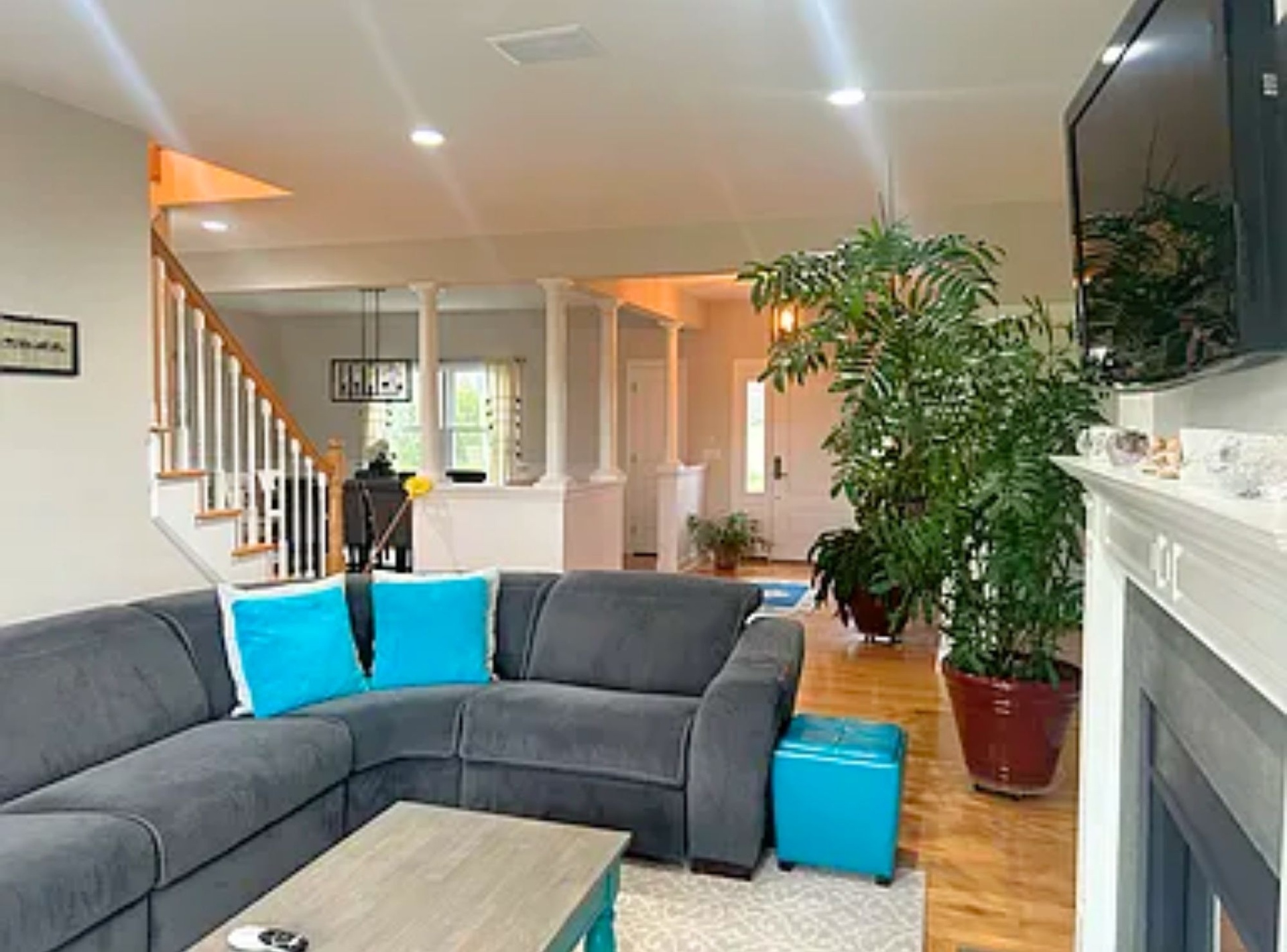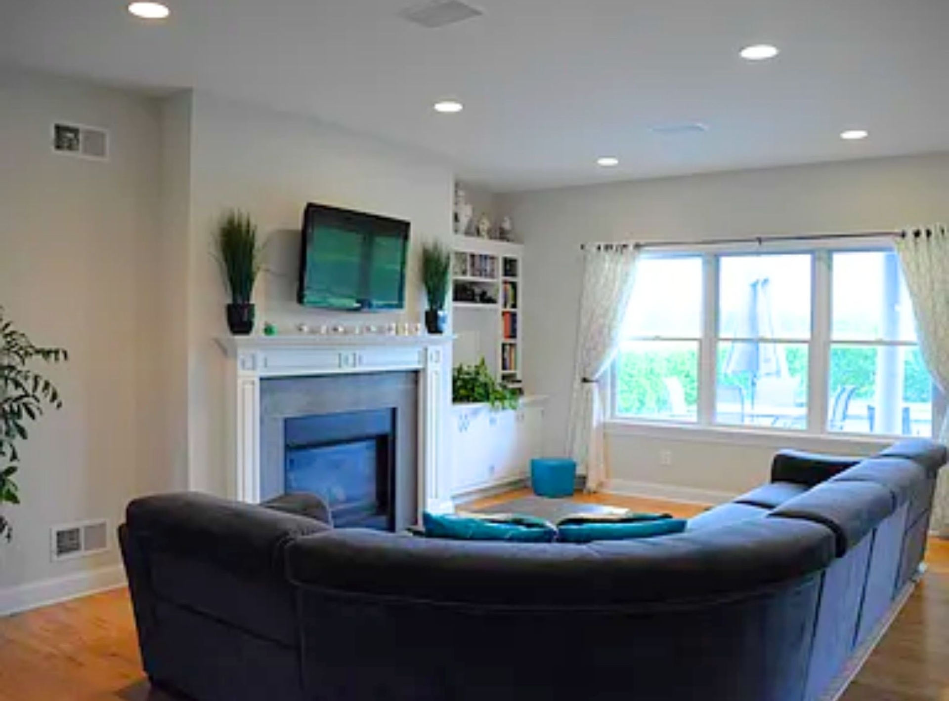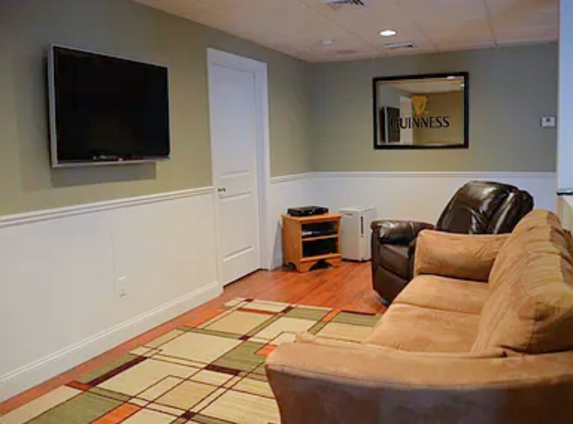 Basement is partially finished for entertaining or exercising -treadmill, sleeper couch and tv area.