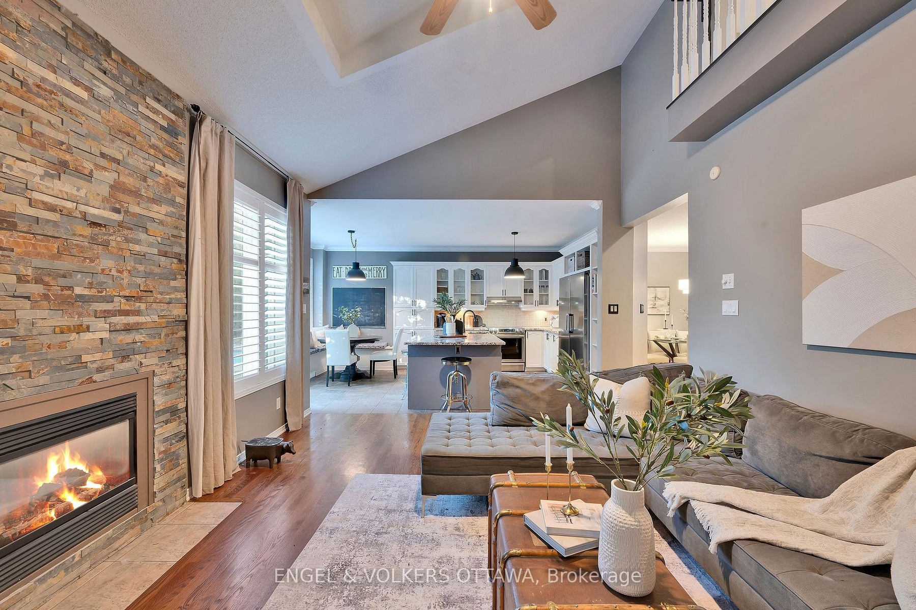 INCREDIBLE VALUE! Absolutely beautiful 4 bedroom home maintained by the same owners for 21 years. Located on a quiet, low turnover street in Kanata. Offering a resort-like backyard designed for entertaining. Perfectly positioned on a PREMIUM CORNER LOT (104ft deep) - this home features a private tree-lined, fully fenced backyard with a 36' in-ground saltwater pool surrounded by professional landscaping that includes mature gardens, interlocking, stamp concrete and a gas BBQ hookup. The main level impresses with hardwood flooring throughout, open concept living-dining and a bonus family room with a gas fireplace and 15' ceilings. Enjoy home cooking with upgraded stainless steel appliances that include a side by side fridge and freezer (2023), Samsung Induction Stove (2020), Bosch dishwasher (2020), a large island with granite countertops (2020) and a built-in banquette with pool views. The primary bedroom is located on a separate wing upstairs with a newly renovated 4-piece bathroom (2025) and a walk-in closet. The additional 3 bedrooms are a great size perfect for kids, guests and/or a home office, along with a renovated 3-piece bathroom with a double vanity sink (2024). Enjoy cozy movie nights in your finished basement with a built-in entertainment system and gas fireplace. Or, hit a workout with a separate space for a home gym! This dream home is move-in ready and waiting for its new owners. Pool Pump (2025), Pool Liner (2019), Furnace and A/C (2023), Roof (2019). OPEN HOUSE SUNDAY NOVEMBER 2ND FROM 2-4P.M!