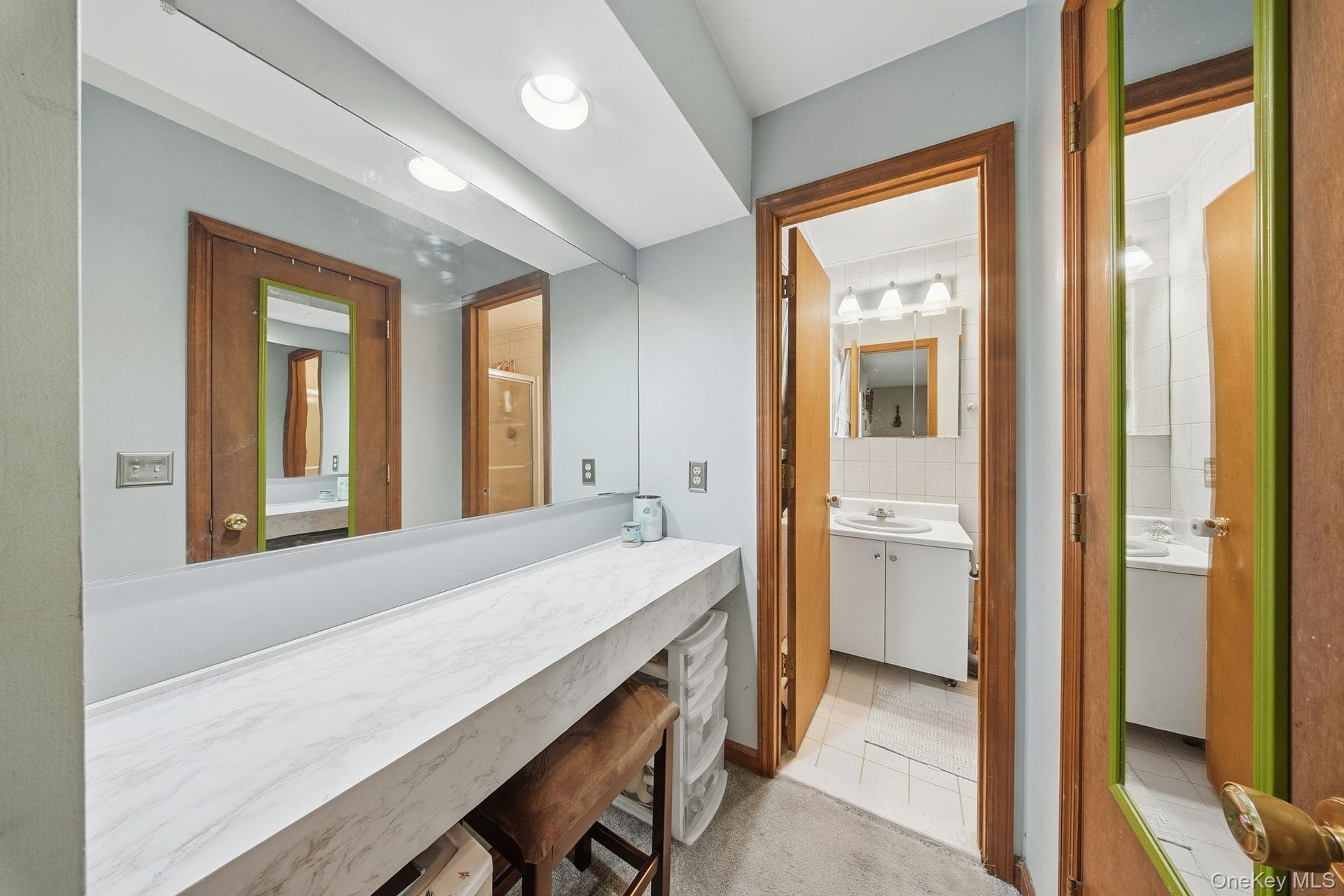 Catskills Retreat on 5 Private Acres – 44 Florio Earl Road, Wurtsboro, NY Tucked away at the very end of a quiet road, 44 Florio Earl Road offers the perfect blend of character, charm, and seclusion. This 3-bedroom, 2-bath ranch-style home sits on 5 serene acres—a private, tree-lined escape just minutes from the highway and under 1 hour and 20 minutes to the George Washington Bridge, making it the ideal upstate retreat. The oversized wraparound paved driveway leads to a spacious parking area complete with a 2-car attached garage, a 1-car detached garage, and even room to park a camper. The home greets you with cedar wood siding, a welcoming covered front porch, and a brick-lined back patio with pillar accents—surrounded by a lush yard carved from the surrounding forest. Step inside to nearly 1,900 square feet of single-level living, where thoughtful updates meet rustic elegance. Enter the foyer and immediately feel the warmth and space this home provides. To the right, a vaulted living room with exposed beams and expansive windows draws in natural light. The flow continues through a formal dining area and into the beautifully updated kitchen, featuring stainless steel appliances, butcher block countertops, and a modern tile backsplash. Whether you’re hosting around the breakfast bar, enjoying morning coffee in the eat-in nook, or setting the table for guests in the dining room, the kitchen is the true heart of the home. Connected to the kitchen is a cozy sitting room highlighted by a brick-faced wood-burning stove, knotty pine vaulted ceilings, and dual sliding doors that open to the rear patio—making the space feel open and inviting year-round. The laundry is conveniently located in a separate mudroom just off the kitchen, with direct access to the garage. The private bedroom wing of the home includes three well-appointed bedrooms, an updated full hall bathroom, and a primary suite complete with a walk-in closet, separate vanity/dressing area, and ensuite bath.