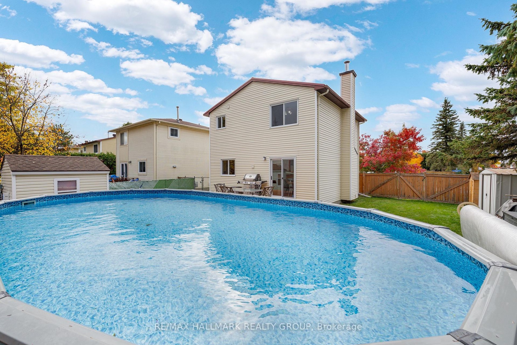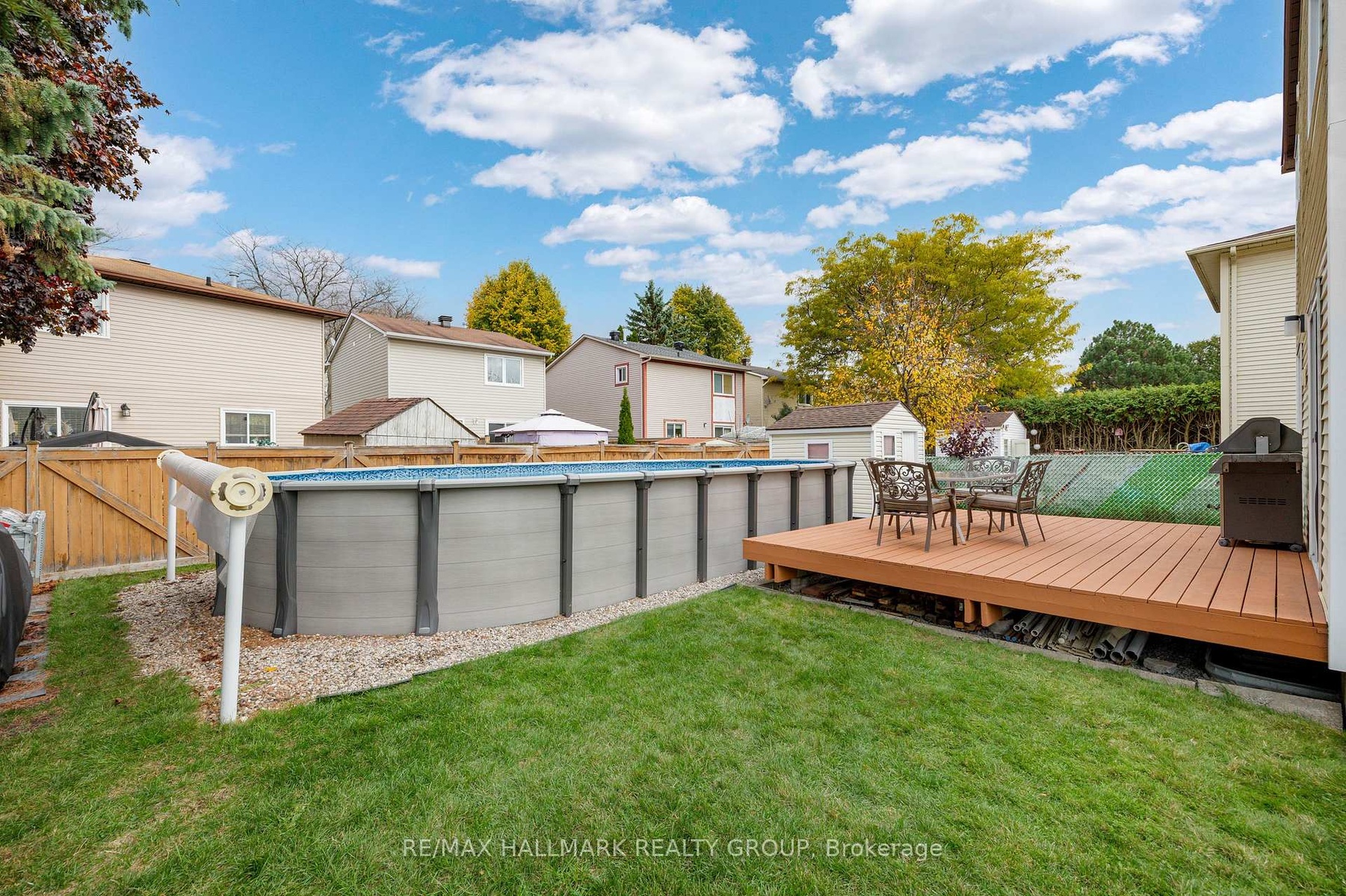 Beautifully maintained 2-storey family home, 3 bedrooms and 3 bathrooms, large corner lot (58.41' front, 69.54' back, 100' deep) ideally located in a family-friendly neighborhood near schools, park, skating rink, soccer and baseball field. Insulated + heated garage, electric car charger, very large backyard with 15'x30' above-ground heated saltwater pool, large 14'x16' deck and 3 sheds. Inside, you'll find beautiful hardwood floors, a bright and functional kitchen, a wood-burning fireplace, fully finished basement, a beautiful wood staircase to the 2nd floor, primary bedroom with cheater ensuite access to the main bathroom, and two good-sized bedrooms - all featuring hardwood floors. The lot is zoned R3 (more building options), and a gated side entrance allows easy access from the street for your ATV, Ski-Doo, trailers, trucks or contractors. This home perfectly combines comfort, functionality, and charm. / Maison deux étages très bien entretenue, 3 chambres et 3 salles de bain, sur un grand terrain de coins (58.41' à l'avant, 69.54' à l'arrière, 100' de profondeur), idéalement située dans un quartier familial à proximité des écoles, parc, patinoire, terrain de soccer et terrain de baseball. Garage isolé et chauffé, borne de recharge pour voiture électrique, vaste cour arrière avec piscine hors-terre au sel chauffée de 15'x30', grand patio de 14'x16' et 3 remises. À l'intérieur, vous trouverez de magnifiques planchers de bois franc, une cuisine lumineuse et fonctionnelle, un foyer au bois et un sous-sol entièrement aménagé. Un bel escalier en bois mène au 2e étage, où se trouvent la chambre principale avec accès direct à la salle de bain, ainsi que deux chambres de bonnes dimensions, toutes dotées de planchers de bois franc. Le terrain est zoné R3 (plus de possibilités de construction) et une porte de clôture permet un accès facile de la rue pour vos VTT, Ski-Doo, les remorques, les camions, ou les entrepreneurs. Cette maison allie confort, fonctionnalité et charme.