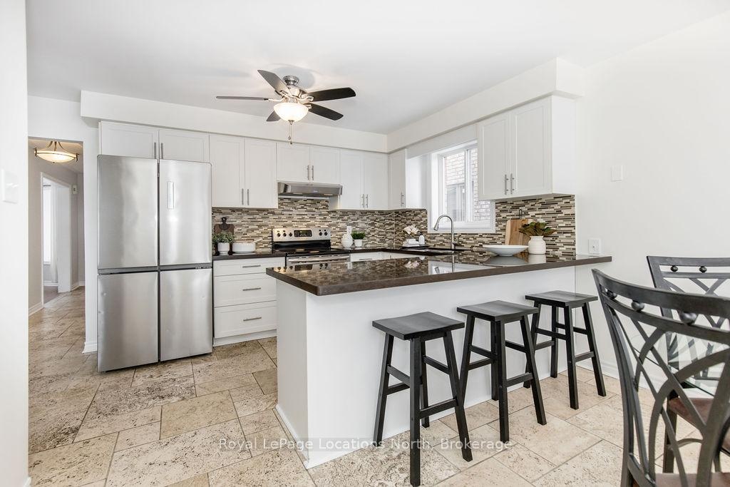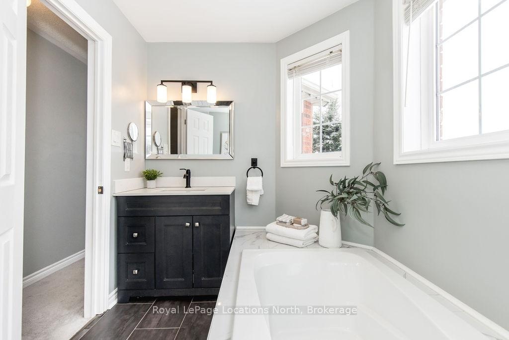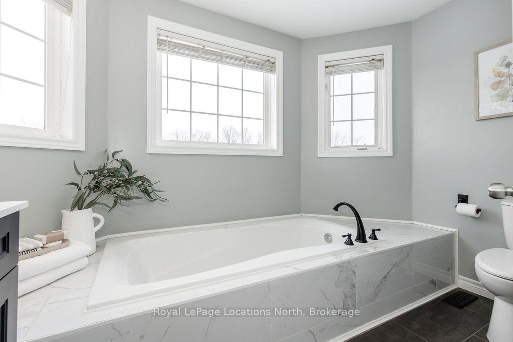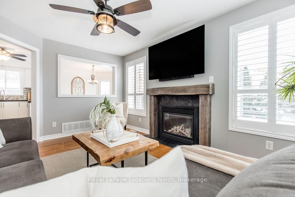 Stunning 4-Bedroom Home in Desirable Holly - Welcome to this beautifully appointed 4-bedroom, 4-bathroom home in the sought-after, family-friendly neighbourhood of Holly. Recent updates include a new furnace (2024), new front & patio doors (2024), freshly paved driveway, newer carpeting (2021), roof (2018) & several updated windows. From the moment you step inside, you'll be greeted by a spacious foyer w/ elegant tumbled marble floors. A wheelchair-accessible main-floor powder room adds convenience & connects to the laundry room. The living room, featuring hardwood floors, offers a picturesque view of the landscaped front yard & newly laid walkway, while the dining room is perfect for hosting family & friends.The tumbled marble continues into the tastefully updated eat-in kitchen, complete w/ modern cabinetry, solid surface countertops, a sleek back splash & custom California shutters. Adjacent to the kitchen, the inviting family room features a fireplace w/ a brand-new wooden mantle & overlooks the backyard, also adorned w/ California shutters.Step outside to the fully fenced backyard, lovely patio & beautiful gardens - an ideal space for relaxing or entertaining. Upstairs, the spacious primary bedroom boasts a walk-in closet & 4PC ensuite w/ a relaxing soaker tub. Three additional bedrooms & a main 4PC bathroom complete the second level.The freshly painted basement offers a versatile space for entertainment or play, featuring a 2PC bathroom w/ a rough-in for a shower. Additional highlights include a 2-car garage w/ inside entry. Ideally located just steps away from an entrance to the Ardagh Bluffs hiking trails, this home offers the perfect blend of nature & convenience. Families will also love being within walking distance to both public and Catholic elementary and secondary schools. With nearby parks, amenities & a welcoming community, this move-in ready home is an exceptional opportunity in one of Barrie's most desirable neighbourhoods.