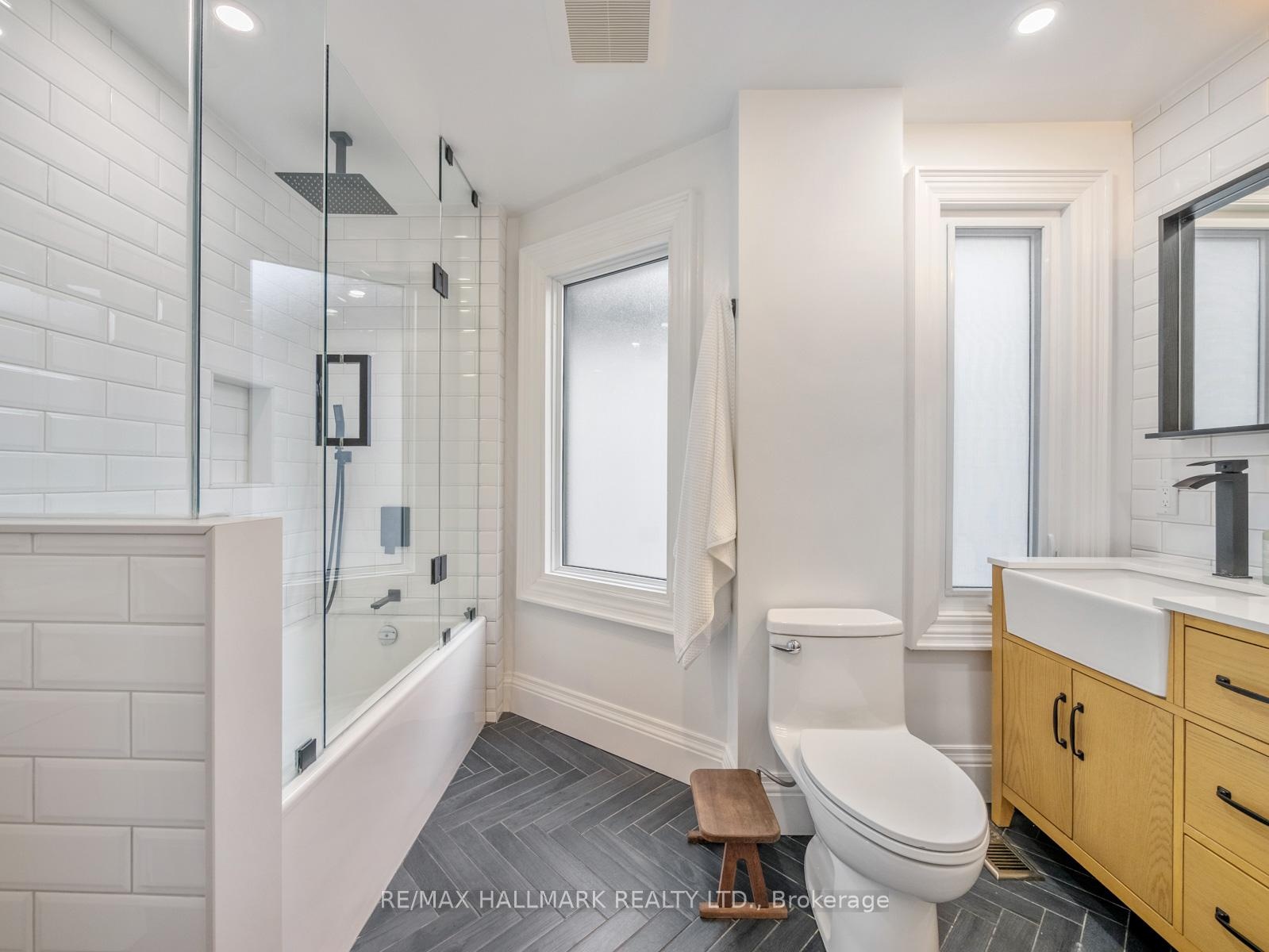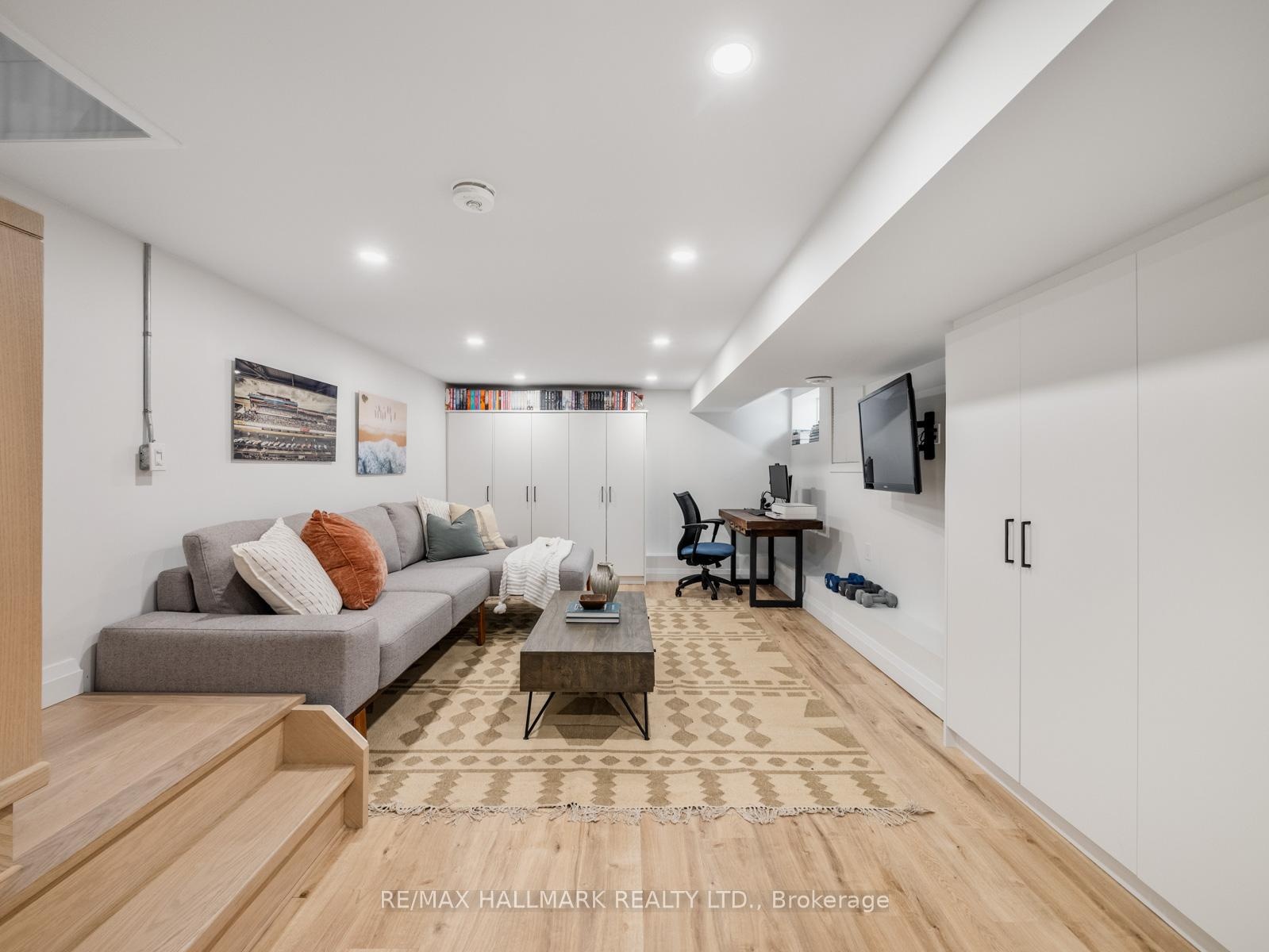 On a quiet, low traffic street, just steps to Leslieville Jr PS, 28 Sproat seamlessly blends modern renovations & amenities with original charm.  A South facing front porch is the perfect place to relax and catch up with the neighbours or watch the kids play on the street with their friends.  As soon as you open the door, you'll know you found your next home!  Soaring ceilings, a gas fireplace to cozy up to, a spacious dining room with frosted floor to ceiling window, a playful main floor powder room and that kitchen!  What party doesn't end up in the kitchen? Anchored by a 10.5ft island that seats 4, this is the perfect place to entertain.  A double farmhouse sink, induction range, quartz counters & backsplash, and tons of storage! Don't forget to check out the accordion back door that opens up to provide a 7ft gateway that effortlessly blends indoor & outdoor living with your low maintenance backyard!  The second floor plays home to 3 of the 4 bedrooms and an oversized bathroom featuring a double vanity and a glass encased tub/shower combo with a ceiling mounted rain showerhead. Upstairs, the primary bedroom (currently used as a family room) is flooded with natural light from the two large skylights and sliding doors that walkout to your rooftop terrace that features no maintenance synthetic deck boards & a built-in bench.  The perfect private retreat to enjoy time under the stars! If you haven't made your mind up yet, the lower level will seal the deal... Professionally lowered, it offers 7ft ceilings and more storage than you could ask for.  The third bathroom is gorgeous and plays double duty to the laundry room while the utility room offers even more storage for oversized items.  Everything you could ask for in a great location.  Riverdale CI just 2 blocks away, Greenwood Park around the corner, a great strip of Gerrard a 2min walk away, Gerrard Square offering all your practical shopping and steps to Jones means easy access around the city at your doorstep.