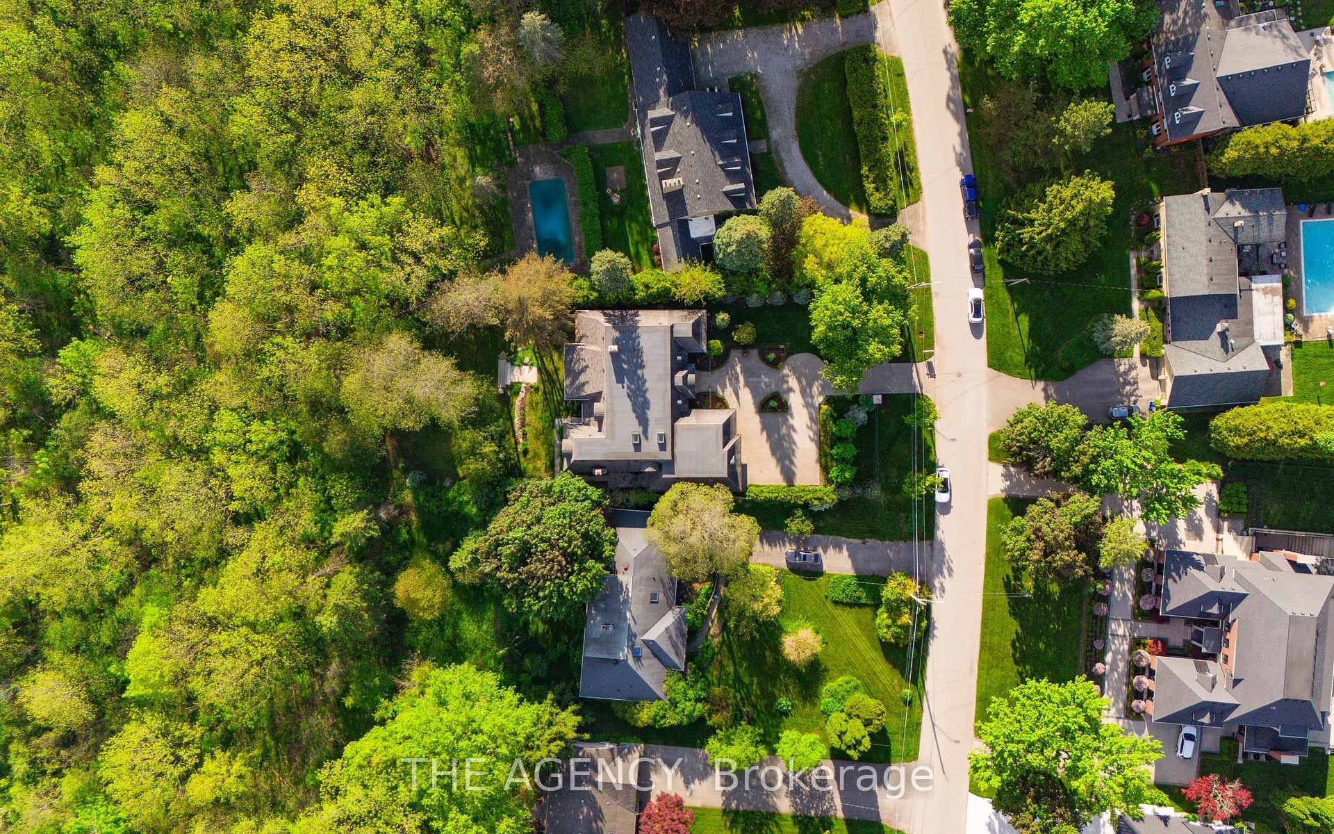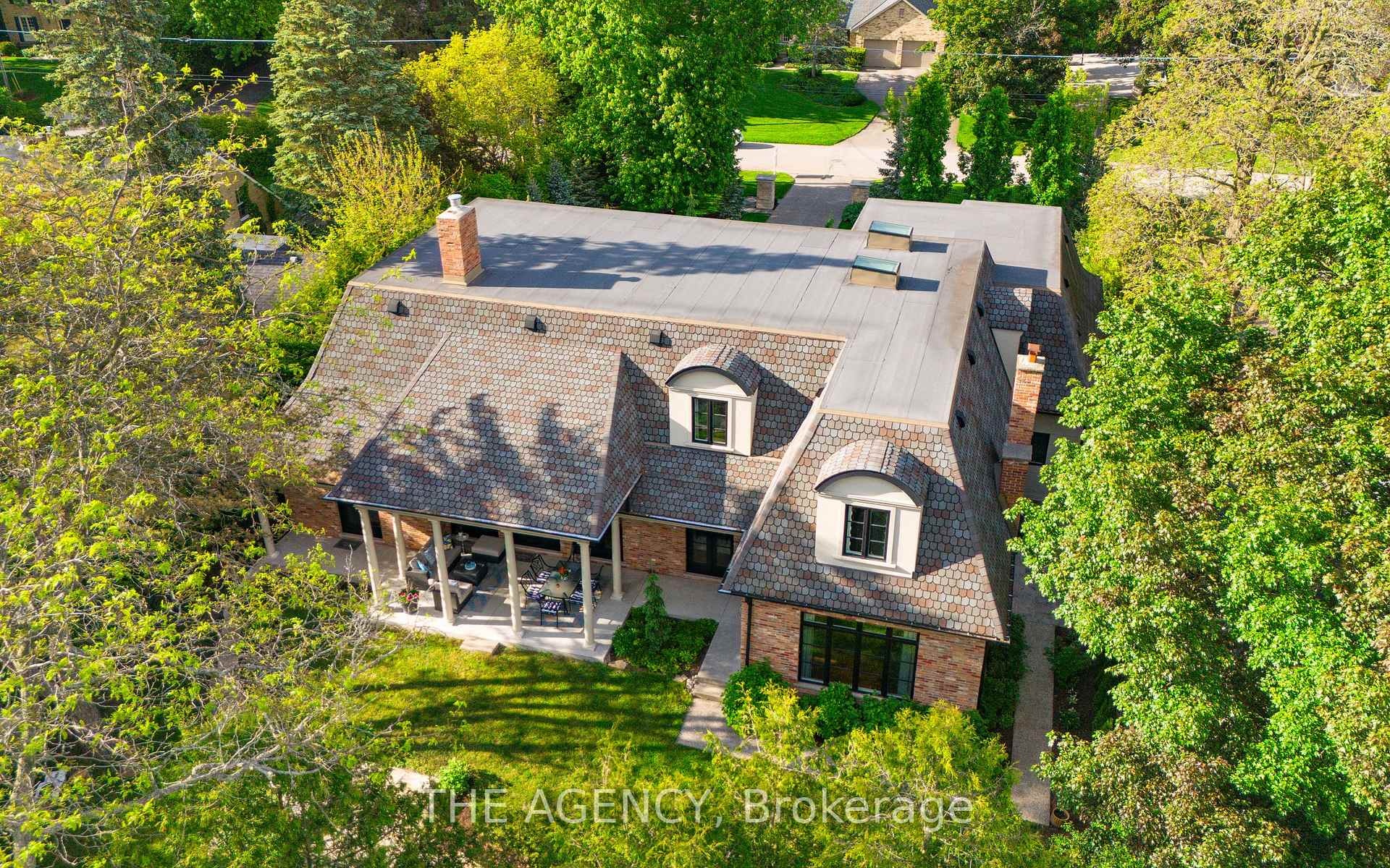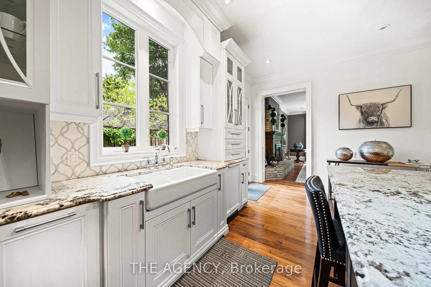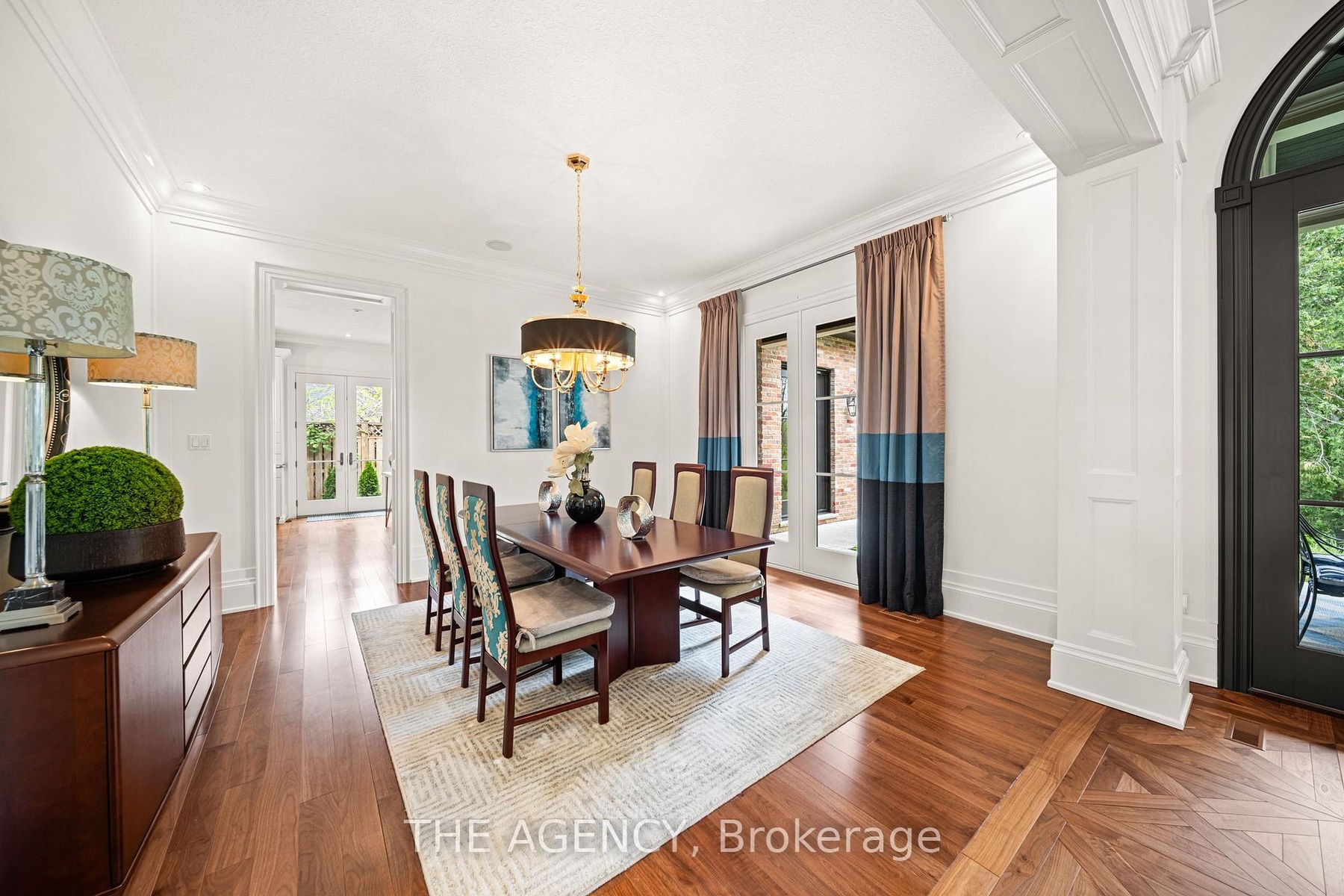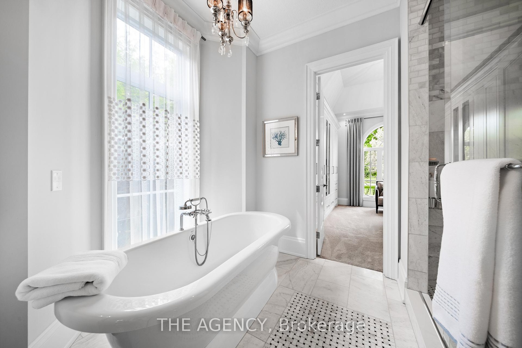 Welcome to this extraordinary bungaloft, nestled on a private, wooded lot and offering the perfect balance of luxury, function, and architectural detail. The main level impresses with 12-foot ceilings, walnut flooring and high-end finishes throughout. Tray ceilings in the formal dining room, coffered ceilings in key living spaces, and solid core doors enhance the sense of quality and scale. Expansive transom windows and high baseboards add architectural charm and natural light throughout. The main floor principal bedroom offers a serene retreat with tray ceilings, garden doors leading to the rear yard, and a stunning ensuite featuring marble tile with inlay, a freestanding tub, a glass-enclosed shower, dual vanities, and a spacious walk-in closet with custom built-ins and dual access. The family room is warmed by a wood-burning fireplace, while the separate living room offers a cozy natural gas fireplace. Two separate mudrooms-one off the front foyer and one off the garage-add everyday practicality to the homes thoughtful layout. The kitchen features premium Wolf appliances, a farmhouse sink, pot filler, and a large island with seating. The adjacent servery includes a fridge, wall oven, microwave, and a secondary sink-ideal for hosting. Upstairs, the loft provides a versatile living area, two generously sized bedrooms, and a beautifully finished main bath with a double vanity, freestanding tub, glass shower, and elegant tile inlay flooring. The lower level adds versatility with two additional bedrooms and rough-in. A walk-up to the triple car garage enhances convenience and supports multi-generational living. Outside, enjoy a private, two-tiered backyard oasis with a covered rear porch, perfect for relaxing or entertaining. The expansive driveway offers parking for up to eight vehicles, in addition to the spacious triple car garage with built-in storage, completing this exceptional property.