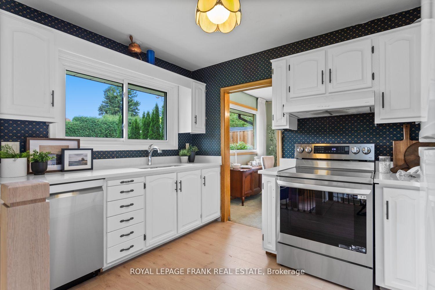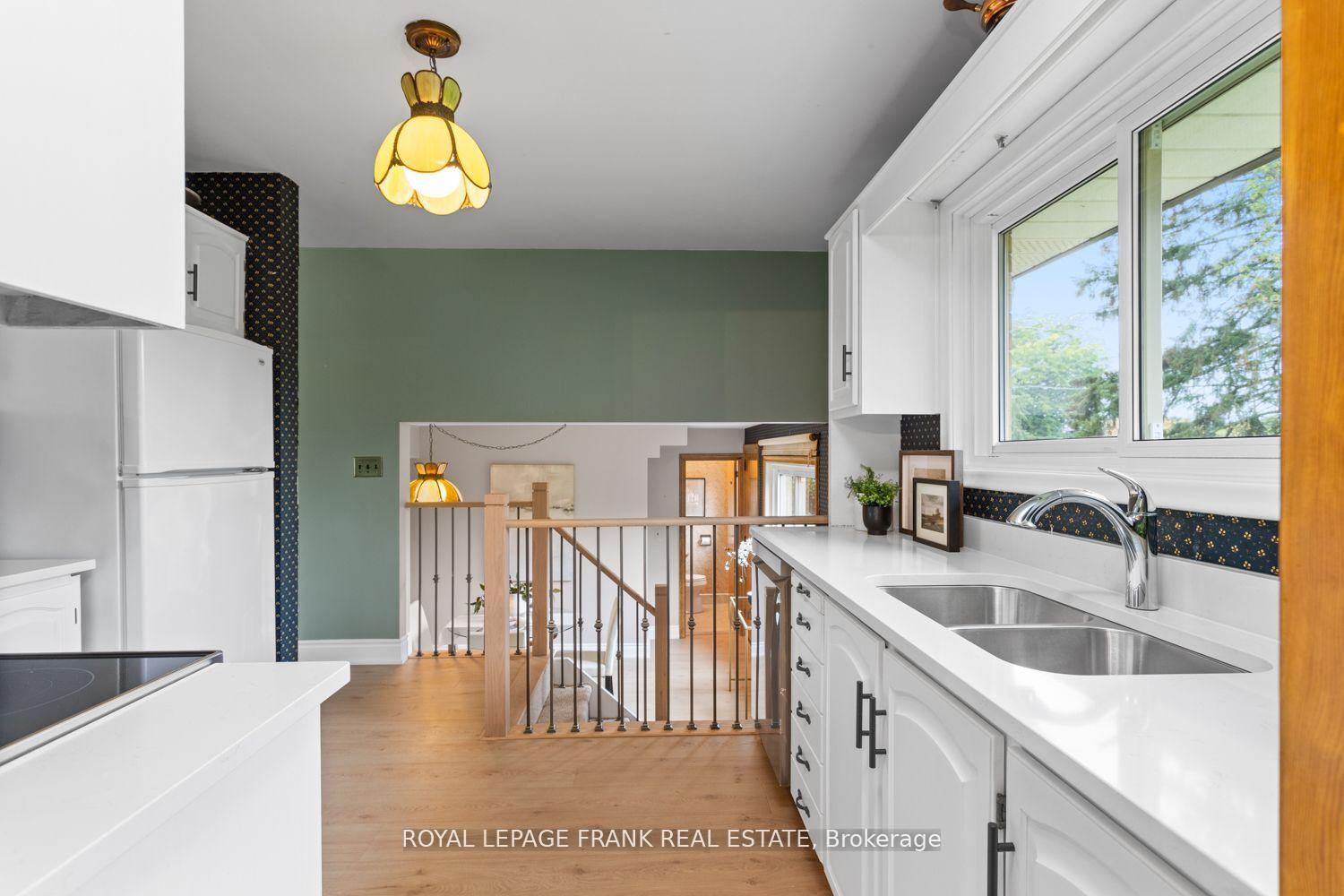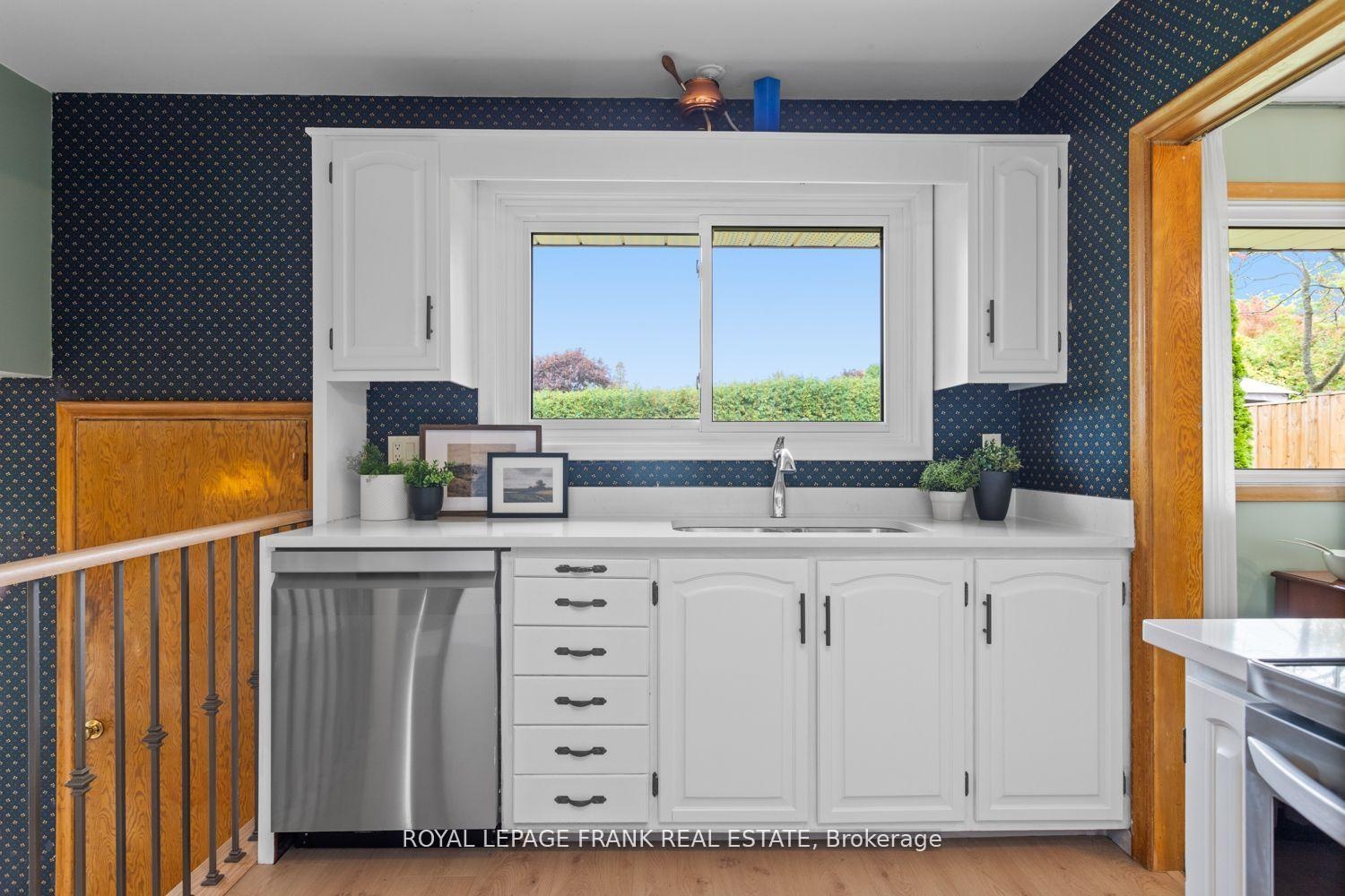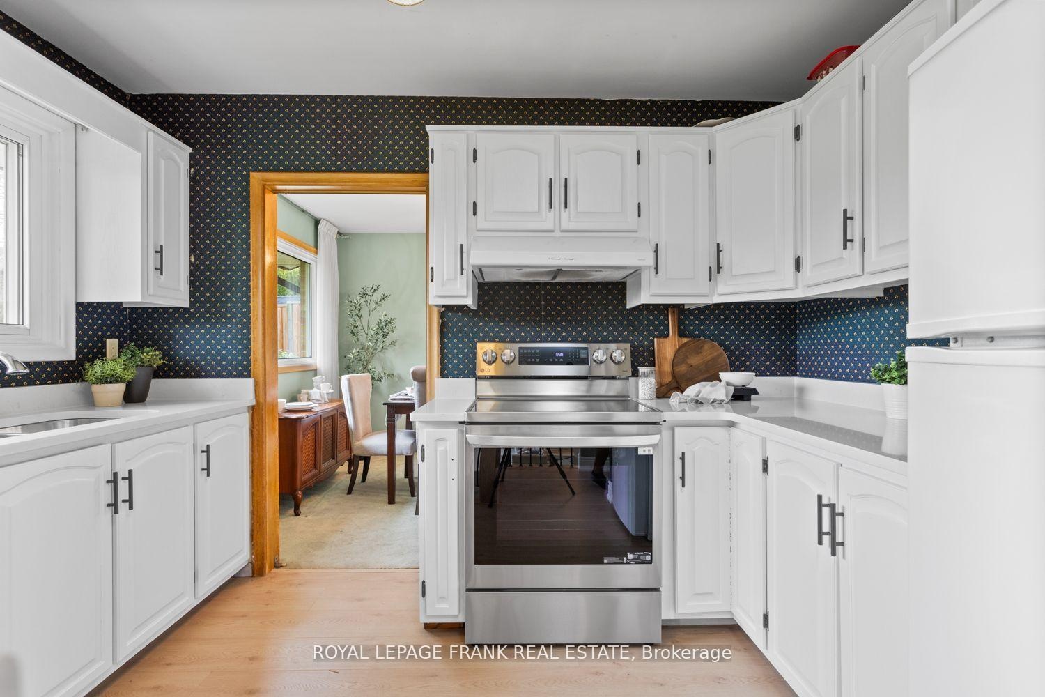 Welcome to this beautifully maintained 3-bedroom, 2-bath side split located in one of Oshawa's most sought-after neighbourhoods. Sitting proudly on a premium 68-foot-wide corner lot that backs onto scenic Keewatin Park, this home offers a rare blend of privacy and green space, perfect for birdwatching right from your backyard. Inside, you'll find an updated kitchen featuring gleaming quartz counters, a spacious foyer with double doors and garage access, and a sun-soaked formal dining room ideal for family gatherings. The bonus second living room walks out to the private backyard, while the finished basement boasts brand new flooring and plenty of storage space. The home also features brand new, high-quality siding and gorgeous hardwood floors hidden beneath the main floor carpet, waiting to shine.