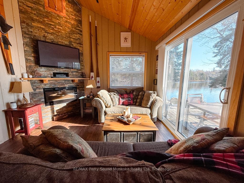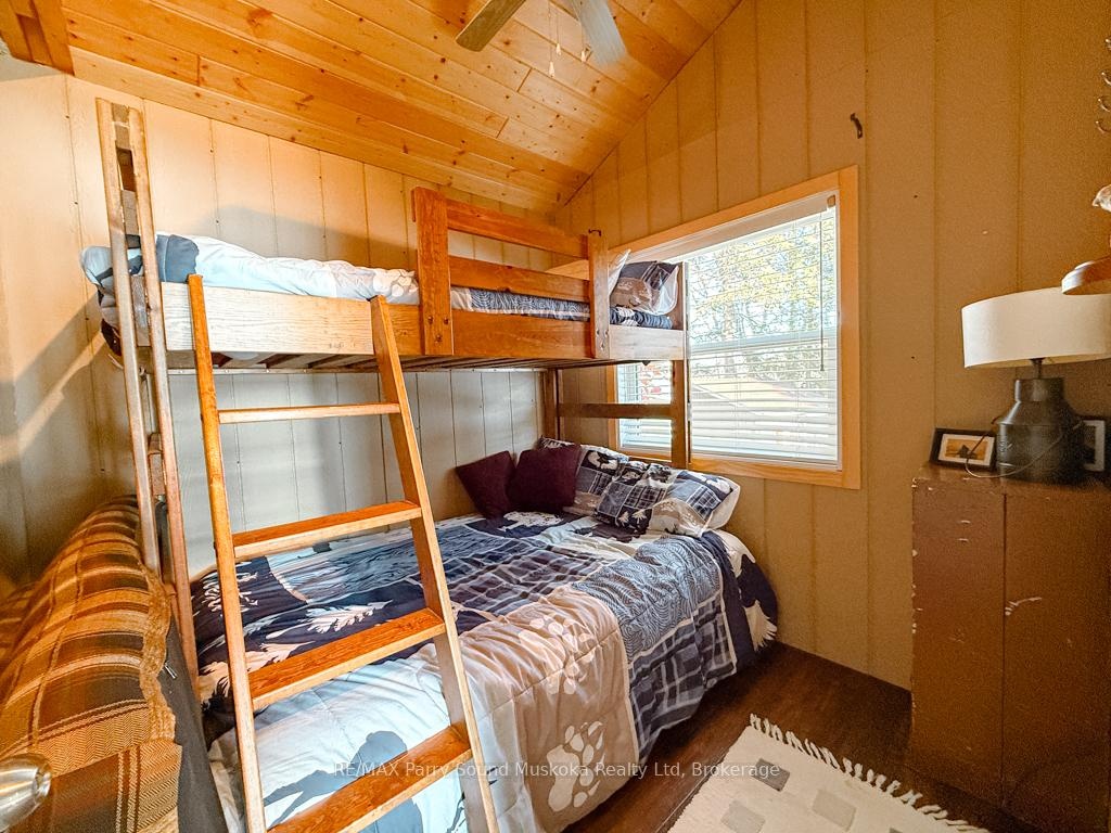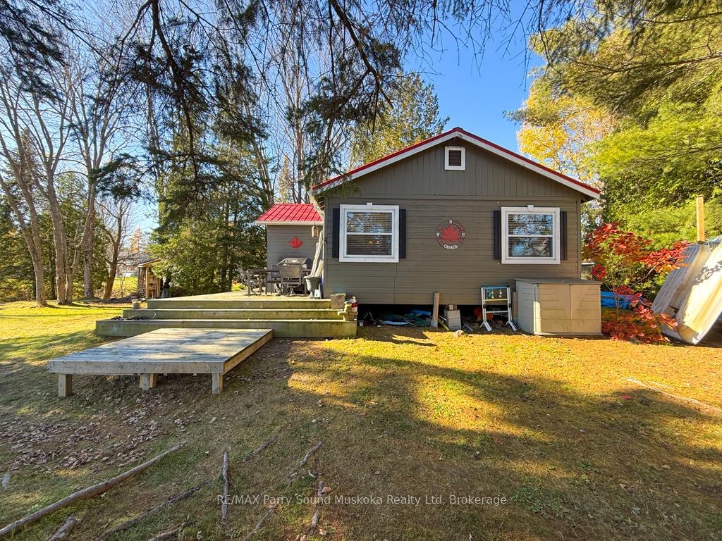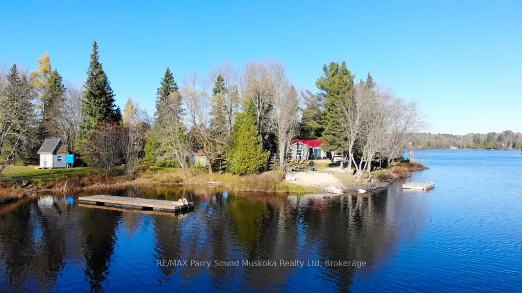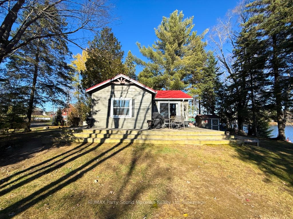 Nestled among mature trees in the heart of Dunchurch, this charming two-bedroom, one-bath cottage offers 210 feet of gorgeous shoreline with a mix of rugged Canadian Shield rock and a sandy beach. The level lot provides easy access to the water and stunning, expansive views that perfectly capture lakeside living. Inside the cottage is charming and tastefully decorated with a thoughtful layout that makes the most of the space. The entrance area doubles as a versatile bonus room, featuring a pull-out futon and sliding door for privacy, ideal for overnight guests. A cozy bunkie offers additional sleeping space for visitors, making this property perfect for families or weekend getaways. Newer upgrades include, septic, PVC plumbing, electrical panel, metal roof, and hot water tank, windows, doors and insulation. Located on a municipally maintained road, this property provides convenient year-round access and is within walking distance to all village amenities, including the LCBO, nursing station, park, community centre, marina, restaurant, and the popular Duck Rock General Store. Enjoy four season recreation right from your doorstep-boating, fishing, and water sports in summer; ATV and walking trails year-round; and groomed snowmobile and snowshoeing trails in winter. Whether you're looking for a peaceful retreat, a family getaway, or a smart investment with rental potential, this Dunchurch gem has it all. Just 30 minutes to Parry Sound or Sundridge. Be sure to check out the video tour!