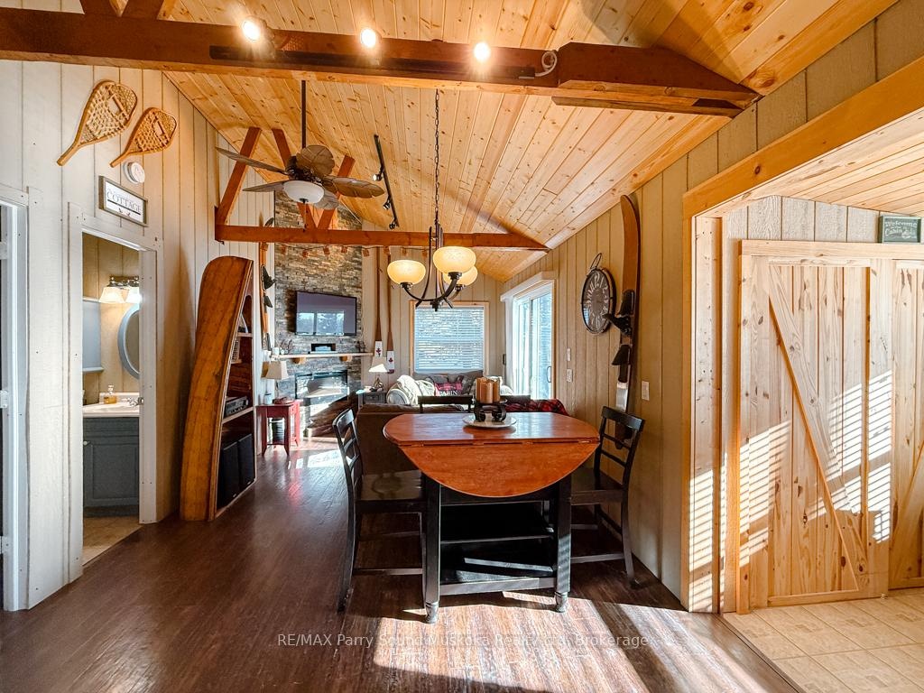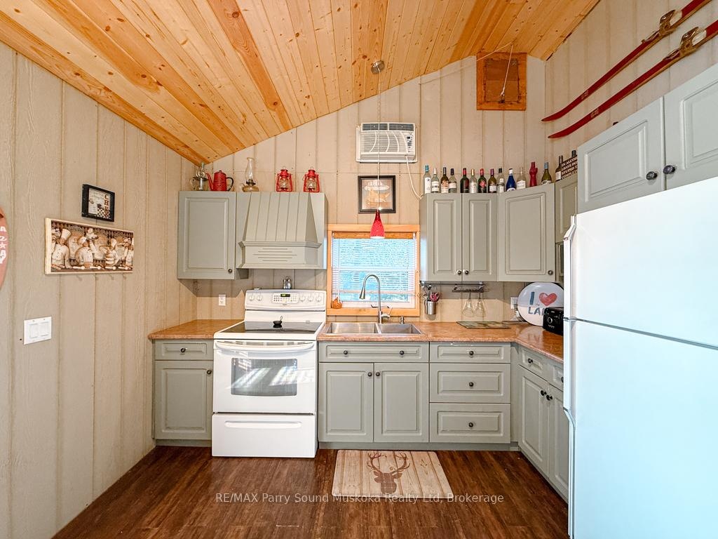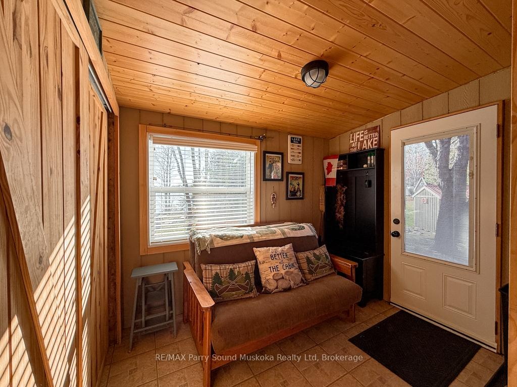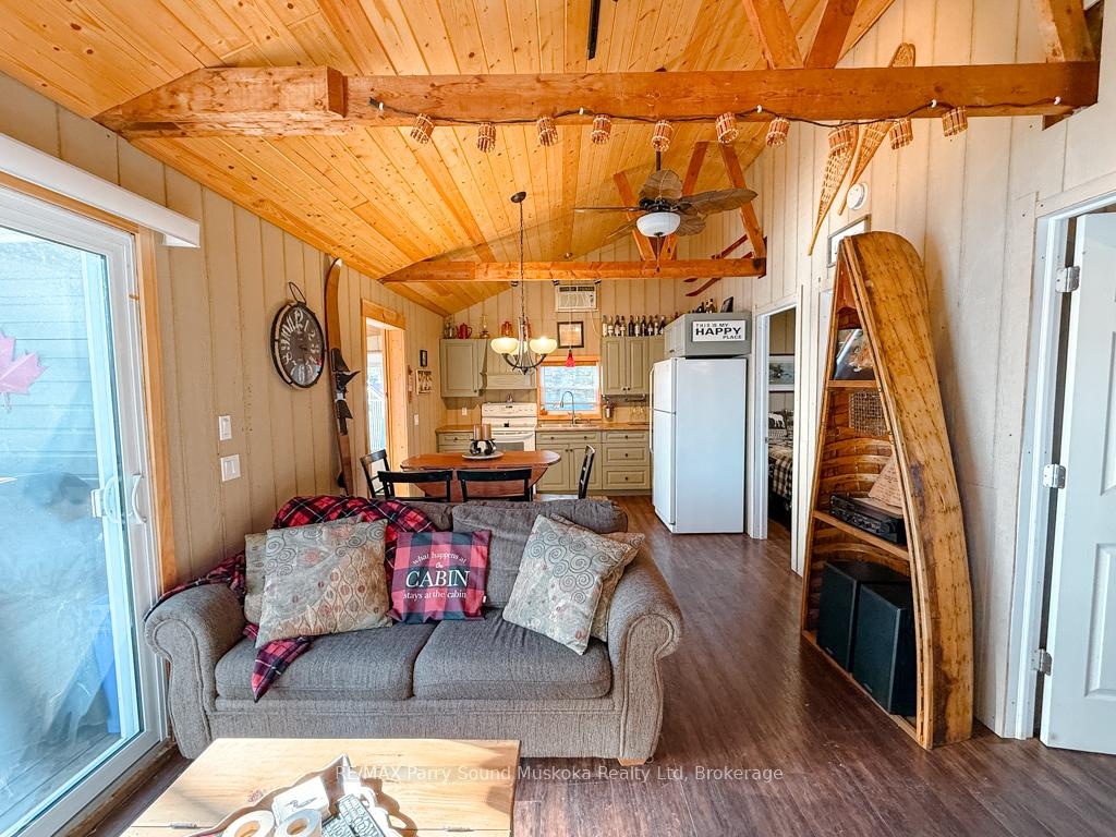 Nestled among mature trees in the heart of Dunchurch, this charming two-bedroom, one-bath cottage offers 210 feet of gorgeous shoreline with a mix of rugged Canadian Shield rock and a sandy beach. The level lot provides easy access to the water and stunning, expansive views that perfectly capture lakeside living. Inside the cottage is charming and tastefully decorated with a thoughtful layout that makes the most of the space. The entrance area doubles as a versatile bonus room, featuring a pull-out futon and sliding door for privacy, ideal for overnight guests. A cozy bunkie offers additional sleeping space for visitors, making this property perfect for families or weekend getaways. Newer upgrades include, septic, PVC plumbing, electrical panel, metal roof, and hot water tank, windows, doors and insulation. Located on a municipally maintained road, this property provides convenient year-round access and is within walking distance to all village amenities, including the LCBO, nursing station, park, community centre, marina, restaurant, and the popular Duck Rock General Store. Enjoy four season recreation right from your doorstep-boating, fishing, and water sports in summer; ATV and walking trails year-round; and groomed snowmobile and snowshoeing trails in winter. Whether you're looking for a peaceful retreat, a family getaway, or a smart investment with rental potential, this Dunchurch gem has it all. Just 30 minutes to Parry Sound or Sundridge. Be sure to check out the video tour!