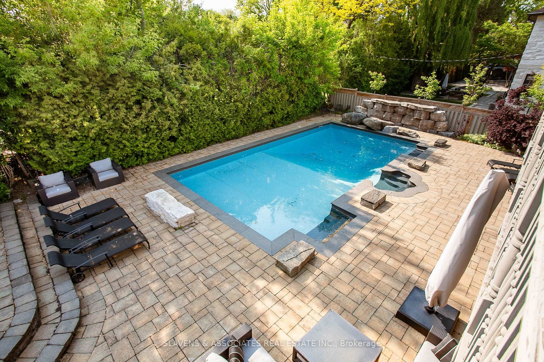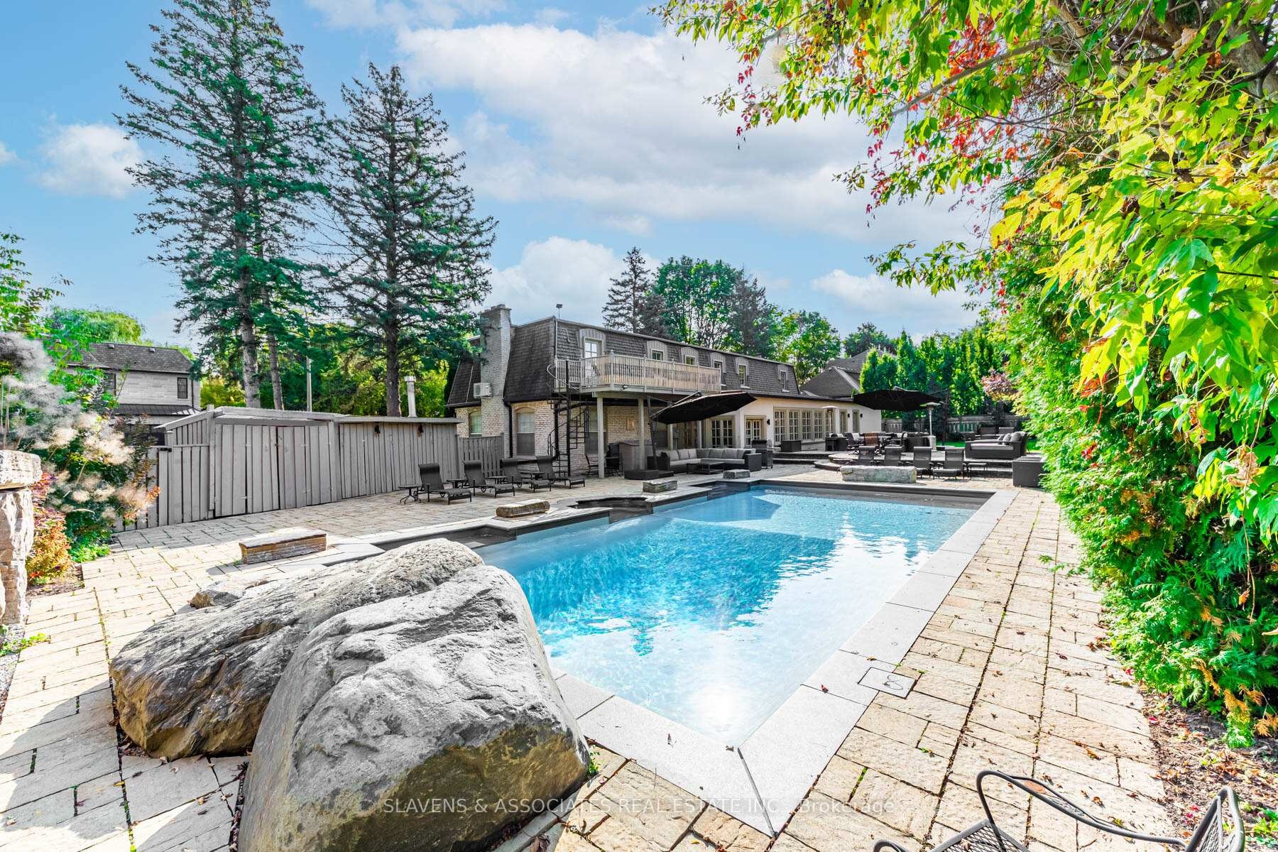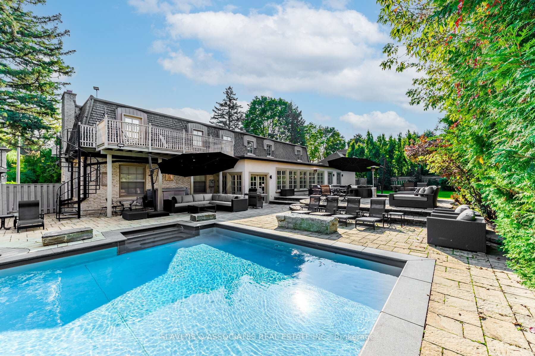Nestled in the prestigious Bayview Glen neighbourhood, this rare gem on a quiet crescent offers the perfect blend of luxury and comfort. Located on a most coveted street in the enclave, this immaculate family home sits on a sprawling 132-foot lot with a spectacular backyard oasis, and has been meticulously maintained. The renovated kitchen features a centre island breakfast bar with granite countertops and breakfast area walkout to the dream backyard, complete with an expansive stone patio. The large principal rooms include a cozy family room with a gas fireplace, perfect for gathering with loved ones. The primary bedroom boasts a walkout to a private deck and rod iron staircase overlooking the stunning 20' x 40' inground pool. With three main floor walkouts, the magnificent backyard is perfect for outdoor living and entertaining. The home spans over 5,600 square feet of living space across three levels, featuring an open concept main floor filled with loads of natural light. The finished lower level offers a spacious recreation room, games room, sitting area, and an additional bedroom currently used as a gym. Ample storage space throughout adds to the home's practicality. Additional highlights include direct garage access to the main floor mud/laundry room with its own walkout, a circular driveway for 10 cars, and a double garage. Walking distance to top-rated schools, parks, public transportation and places of worship, this home is conveniently located near Highways 407, 401 and 404, Bayview Golf and Country Club, Community Centre, shops and restaurants. An extraordinary family home in a private, luxurious setting - this is truly a rare find. Flat Roof 2021;Rest of the Roof May 2025.