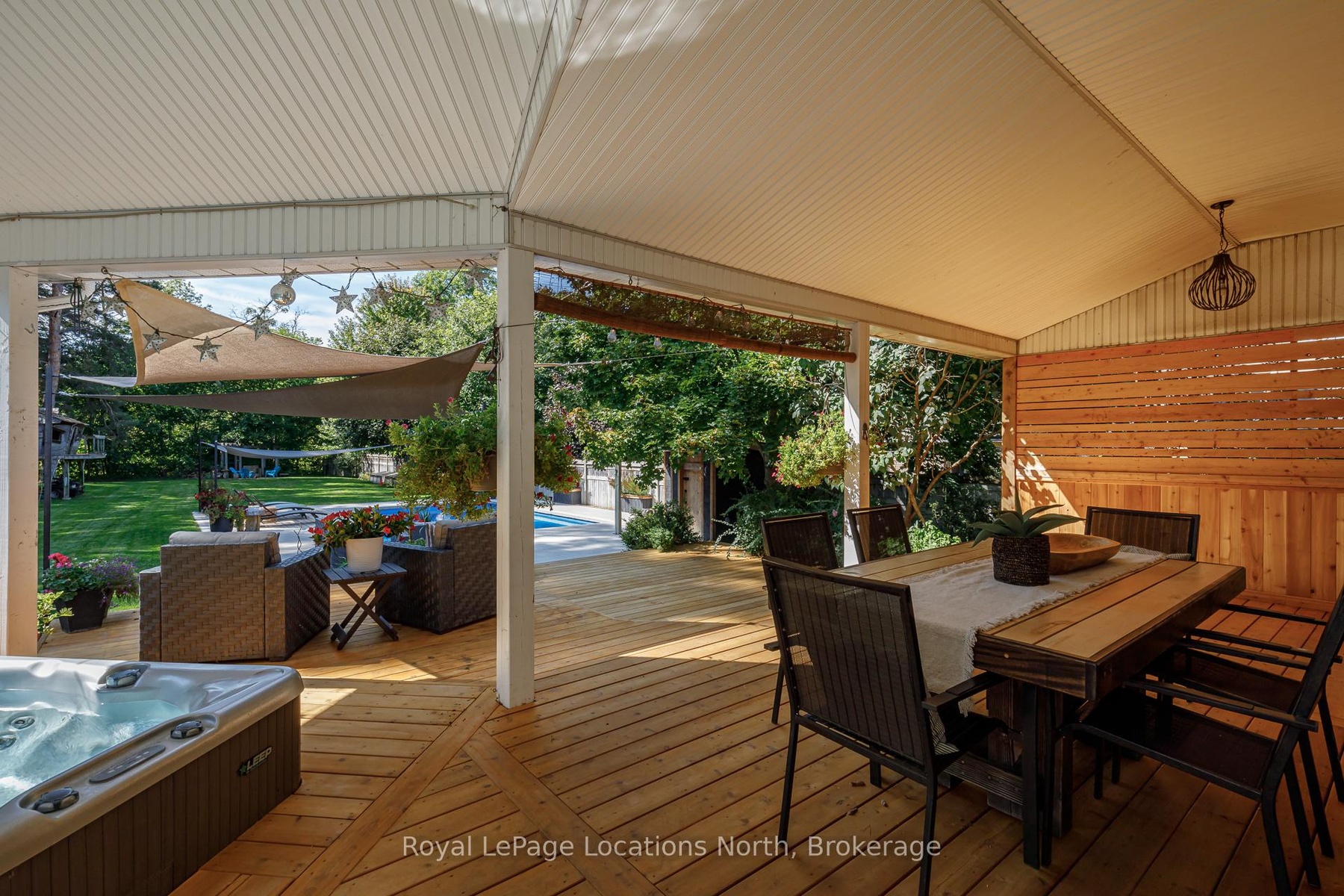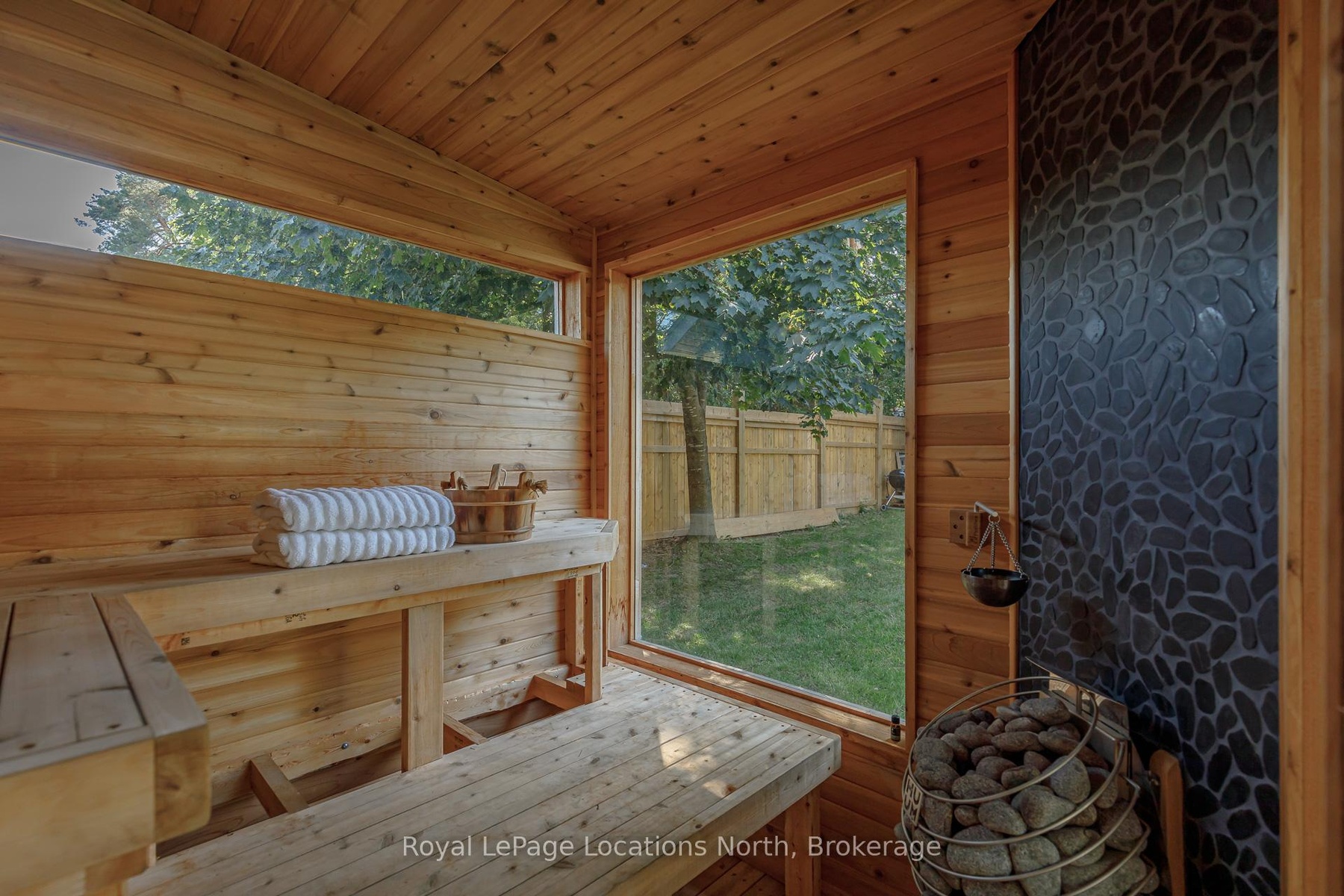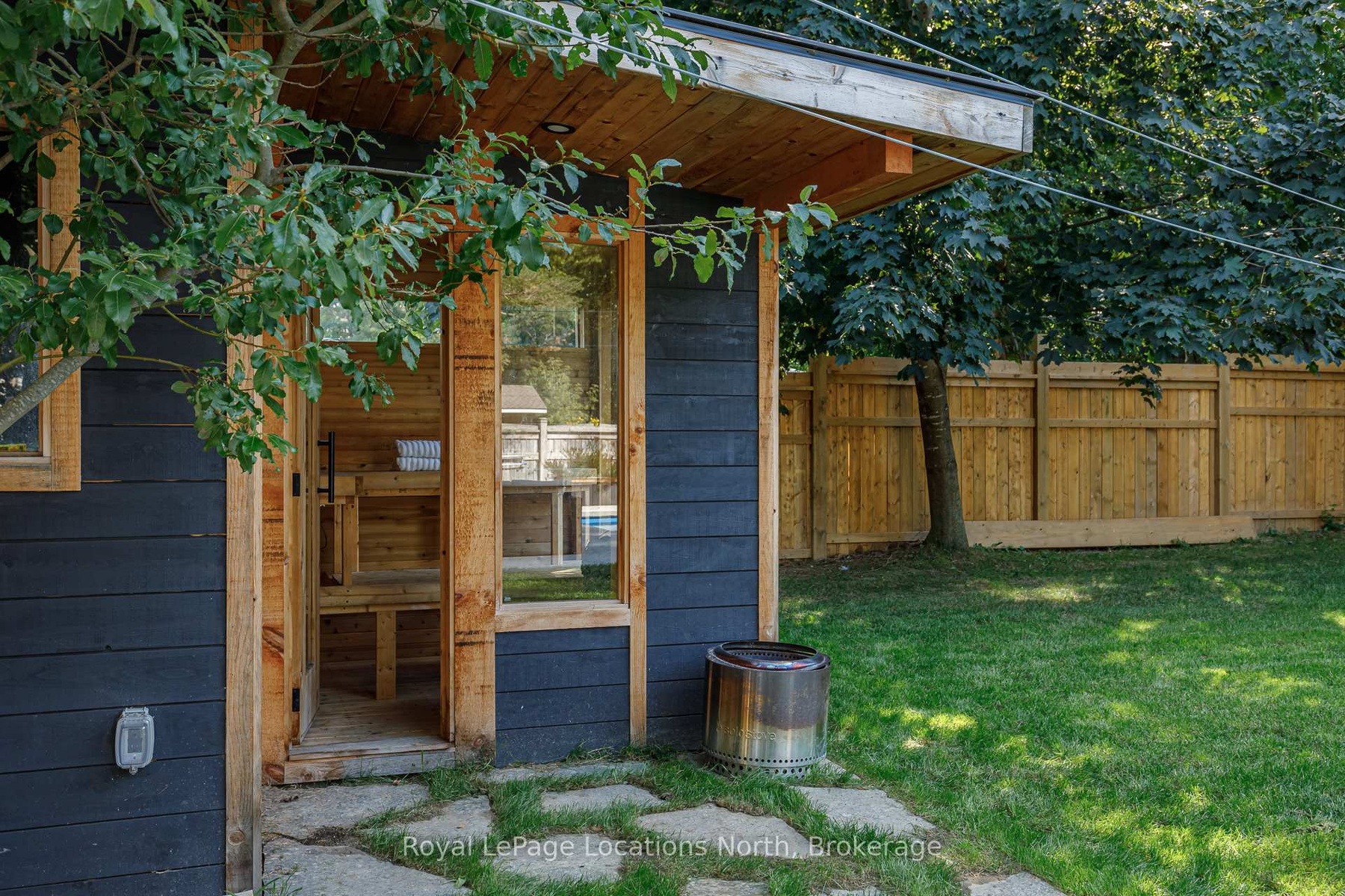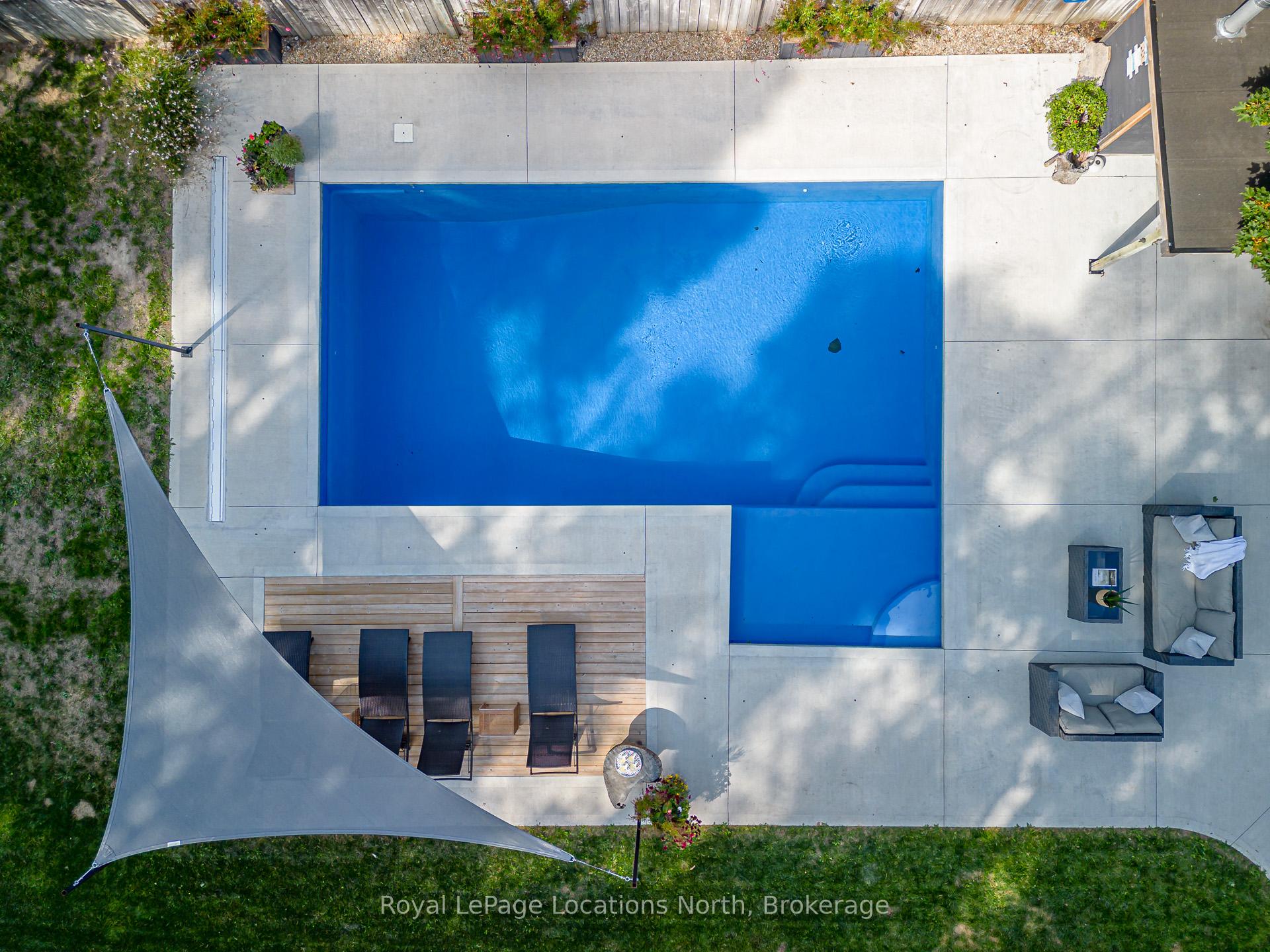 Charming Family Home with Backyard Oasis in the Heart of Nottawa! Set on a quiet street and nestled on a private, beautifully landscaped lot, this charming family home offers the perfect blend of comfort, style and outdoor living. From its inviting front porch and great curb appeal to the backyard oasis beyond, every detail has been designed for relaxation and connection. Step inside to a bright and welcoming living room featuring wood floors, California shutters and a cozy gas fireplace. The open-concept dining area flows seamlessly into a gourmet kitchen complete with stainless steel appliances, a coffee bar and a walkout to your backyard paradise - ideal for entertaining and family gatherings. Outdoors, enjoy resort-style living with an inground pool, hot tub, sauna, spacious deck, and fenced yard - the ultimate setting for summer fun and making lasting memories with friends and loved ones. Upstairs, you'll find three spacious bedrooms plus a lovely primary suite with an ensuite bath and walk-in closet. Convenient second-floor laundry adds everyday ease. The finished lower level offers even more space with a family room perfect for movie nights, a games area, and an exercise zone - providing something for everyone. Additional highlights include an attached garage, large heated workshop, garden shed and a concrete driveway with parking for multiple vehicles. Located steps from Nottawa amenities and just a short drive to Nottawa Elementary School, area golf courses, ski clubs, trails, and Georgian Bay, this home combines small-town charm with easy access to four-season recreation. A truly wonderful place to raise a family and create lasting memories.