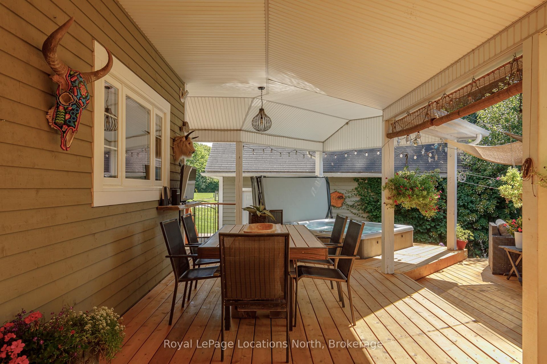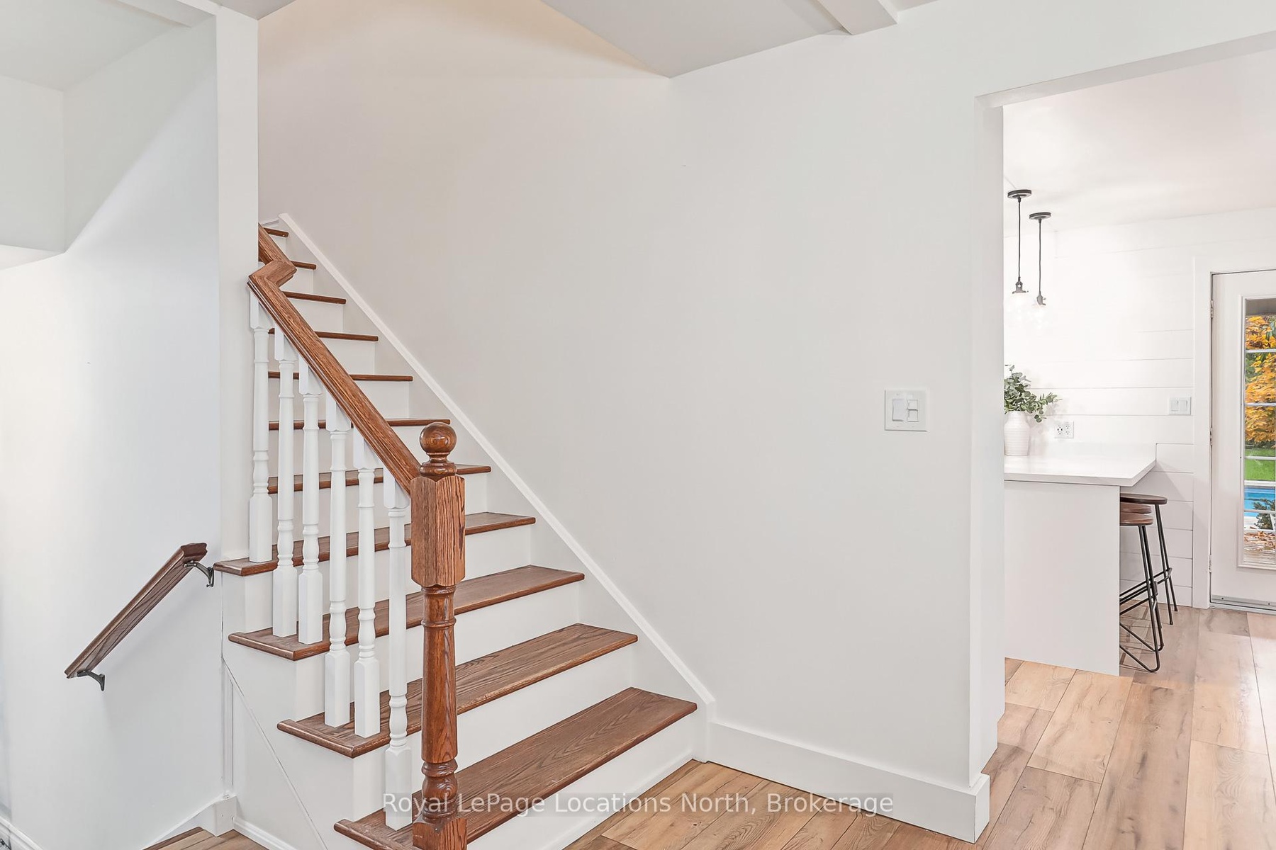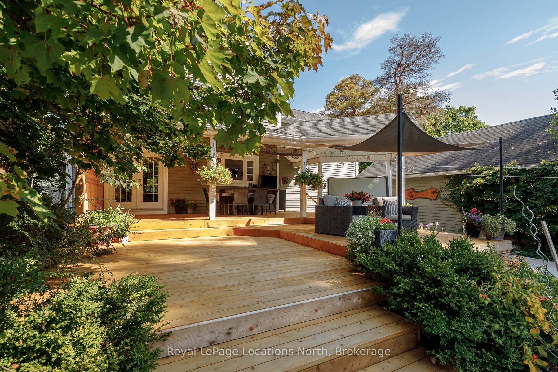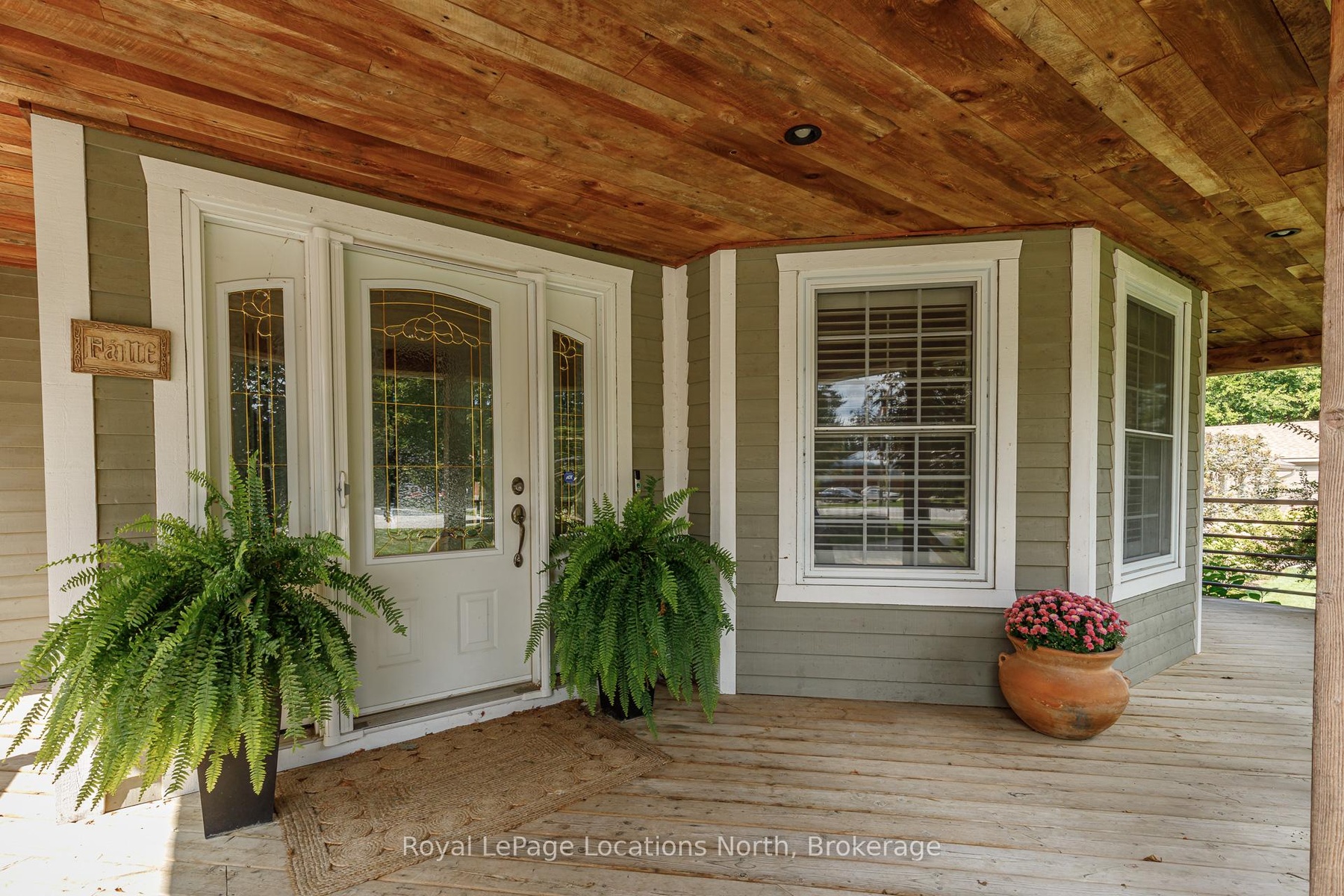 Charming Family Home with Backyard Oasis in the Heart of Nottawa! Set on a quiet street and nestled on a private, beautifully landscaped lot, this charming family home offers the perfect blend of comfort, style and outdoor living. From its inviting front porch and great curb appeal to the backyard oasis beyond, every detail has been designed for relaxation and connection. Step inside to a bright and welcoming living room featuring wood floors, California shutters and a cozy gas fireplace. The open-concept dining area flows seamlessly into a gourmet kitchen complete with stainless steel appliances, a coffee bar and a walkout to your backyard paradise - ideal for entertaining and family gatherings. Outdoors, enjoy resort-style living with an inground pool, hot tub, sauna, spacious deck, and fenced yard - the ultimate setting for summer fun and making lasting memories with friends and loved ones. Upstairs, you'll find three spacious bedrooms plus a lovely primary suite with an ensuite bath and walk-in closet. Convenient second-floor laundry adds everyday ease. The finished lower level offers even more space with a family room perfect for movie nights, a games area, and an exercise zone - providing something for everyone. Additional highlights include an attached garage, large heated workshop, garden shed and a concrete driveway with parking for multiple vehicles. Located steps from Nottawa amenities and just a short drive to Nottawa Elementary School, area golf courses, ski clubs, trails, and Georgian Bay, this home combines small-town charm with easy access to four-season recreation. A truly wonderful place to raise a family and create lasting memories.