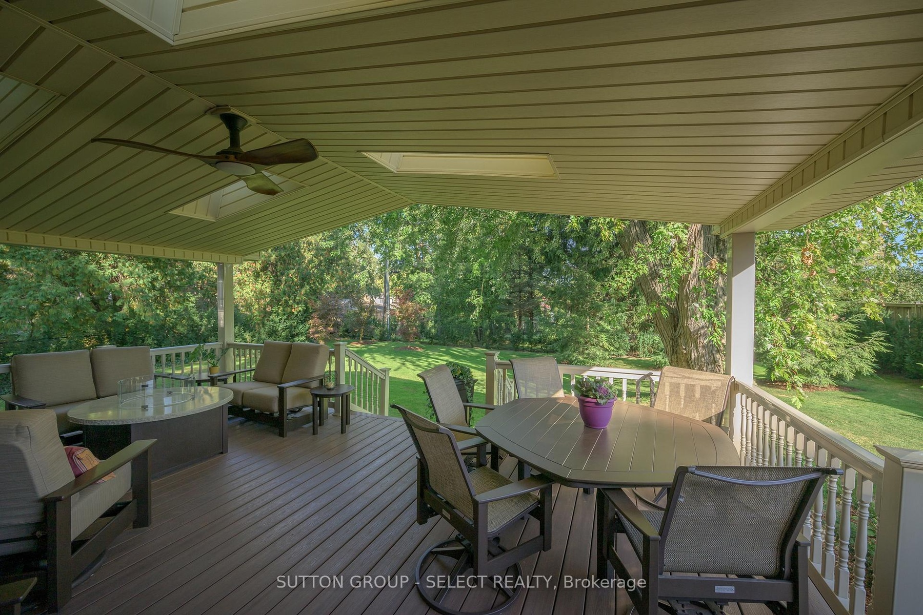 Pride of ownership shines in this beautifully maintained 3-bedroom, 2-bath, 3 fireplace home located across the street from Highland Golf Course, just minutes to Victoria Hospital, Wortley Village, and everyday amenities. Lovingly cared for by the same owner since 1988, this property sits on a large, private lot surrounded by mature trees and lush landscaping, a peaceful retreat right in the city. Inside, you'll find red oak hardwood flooring (Huron Flooring), custom wood California shutters ($12,700), cherrywood kitchen cabinetry and fireplace built-ins (Richwood), and a Puglia cast limestone mantel and hearth ($4,300). Additional built-ins by GCW (2020, $10,000) enhance the warmth and sophistication of the main living space. Outdoor living is exceptional with a covered 24 x 16 PVC deck (2016, $40,000), featuring four skylights, high-end ceiling fan, and a buried hydro line ($7,000). The retaining wall (2023, $30,000) and landscaping; gardens and hedging (2023, $41,000) create a private, park-like setting with landscape up-lighting, Blue Jay irrigation, and LeafFilter eavestroughs.The lower level offers luxury vinyl plank flooring (2024, $7,000) and a custom laundry room with solid wood cabinetry and Corian countertops (2025, $10,000). Mechanical updates include a Carrier Infinity high efficiency furnace & high efficiency 16 SEER A/C (2022, $4,860), new rental water heater, upgraded insulation (R-40/R-20), and a Counterforce monitored security system ($36.17/month). Meticulously maintained and thoughtfully updated. Three fireplaces: two on main floor & another in lower. Truly a timeless home offering high quality, comfort, and detailed care at every turn. Walking distance to Wortley village. Excellent and very desirable elementary school zones: Mountsfield Elementary School. Lot Size: 93.34 ft x 151.34 ft x 68.34 ft x 149.06 ft