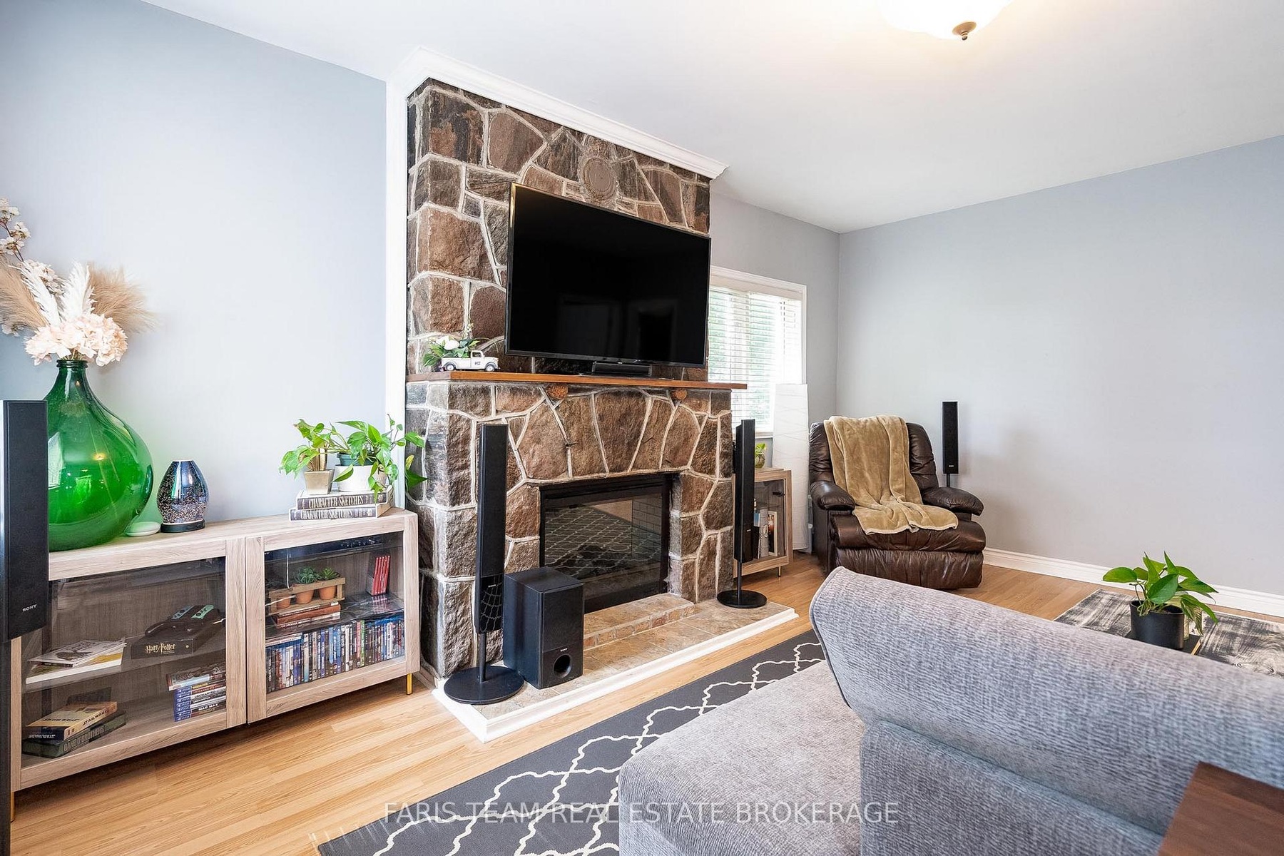 Top 5 Reasons You Will Love This Home: 1) Charming detached bungalow on a spacious lot in the village of Stroud, delivering comfort and convenience for first-time buyers or those seeking a cozy retirement property 2) Lovely curb appeal with soft grey-blue siding, a welcoming front entrance, mature trees, and a detached garage/shop that adds both charm and function 3) Bright and inviting interior filled with natural light, highlighted by a front vestibule and a living room centered around a stunning stone fireplace with an electric insert, ideal for crisp fall evenings or chilly winter days 4) Functional layout featuring a good-sized kitchen and breakfast area with a walkout to a wraparound side porch and large back deck, a spacious primary bedroom with mirrored closets, a second bedroom currently used as an office, a well-appointed 4-piece bathroom with updated cabinetry, and the convenience of main level laundry/mudroom with backyard access 5) The extra-deep detached garage is a true bonus, with two compartments, loft-style overhead storage, a wood stove, and additional heating, making it not only perfect for vehicles but also an excellent workshop for hobbyists or mechanics. 968 sq.ft.