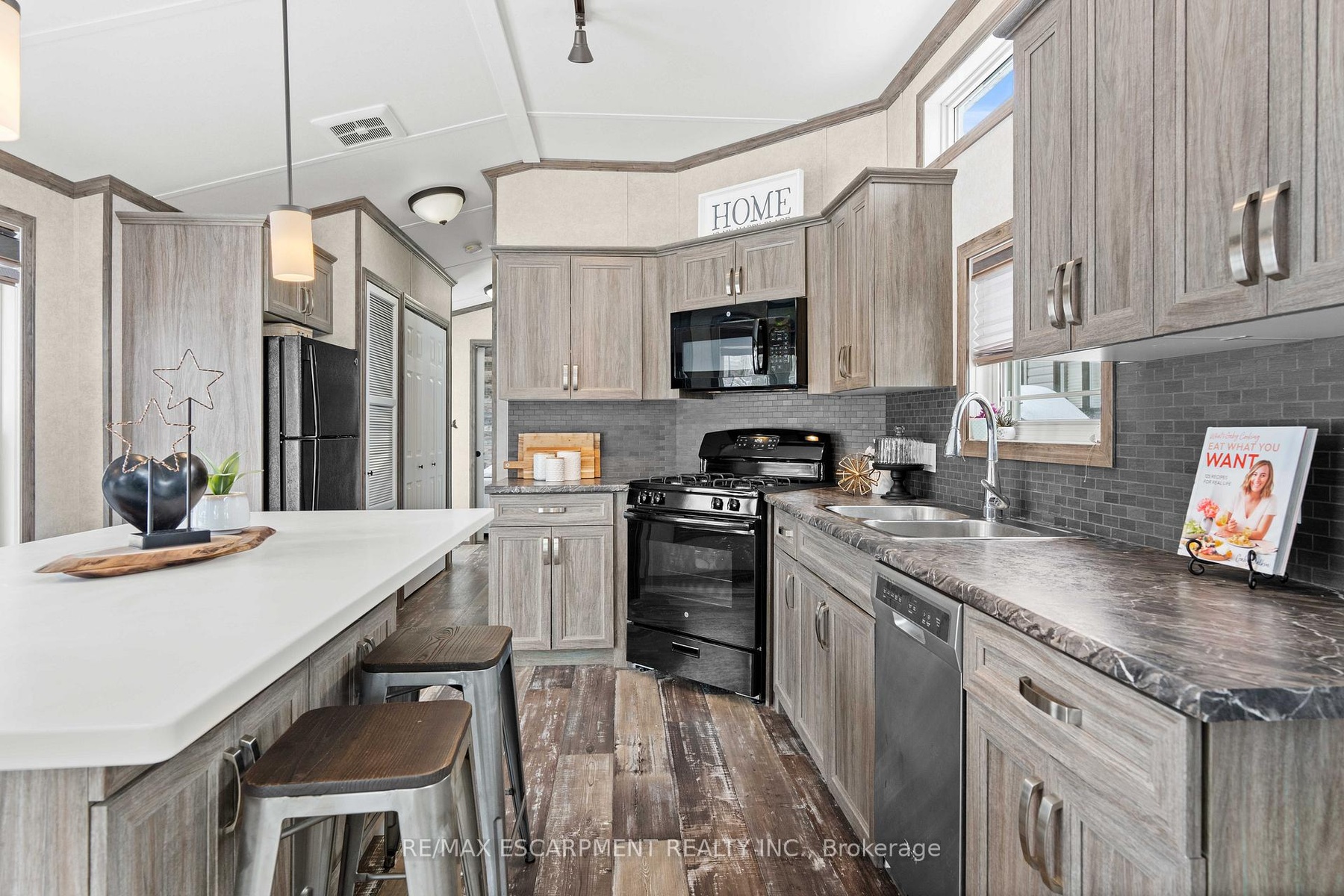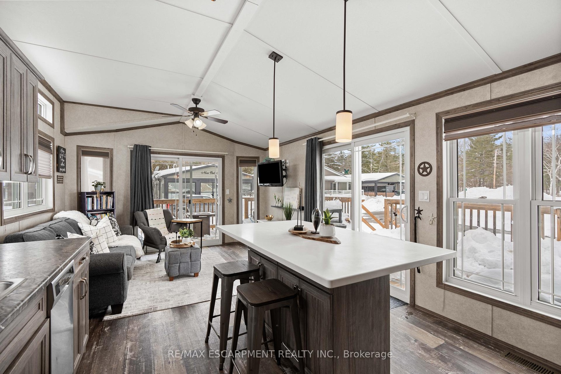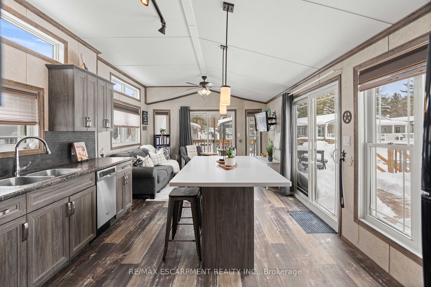 Welcome to this meticulously maintained custom modular home nestled within the sought-after Lost Forest Park Gated Community. Immerse yourself in the conveniences of this year-round community, which boasts a community centre, an in-ground pool, picturesque walking trails, and other amenities.This home features a charming wrap-around deck equipped with retractable screens, providing privacy and relaxation. The open-concept interior is adorned with 'driftwood' laminate flooring and double-hung windows, ensuring effortless cleaning. The kitchen features grey cabinets, a spacious centre island with Corian countertop that will comfortably accommodate family and friends, plus a convenient walkout to the deck.The great room exudes a bright and inviting ambiance and additional access to the deck. Conveniently located in the hallway is your in-suite laundry, HVAC system, and double closet for storage. The primary bedroom boasts a double closet with custom-built-ins, while the den provides an ideal space for a home office or creative pursuits. The Community Centre has something for everyone, including Dart Boards, TV w/Firestick & WiFi, Ping Pong Table, Games & Puzzles, Book Exchange plus large fridge and coffee maker. This is the perfect place to engage in a vibrant, active lifestyle. Secure this exceptional opportunity and experience the unparalleled comfort and convenience of this custom built modular home complete with metal roof. Minutes away from shopping, parks, golf, trails, Highways and all that the quaint Village of Waterdown has to offer.