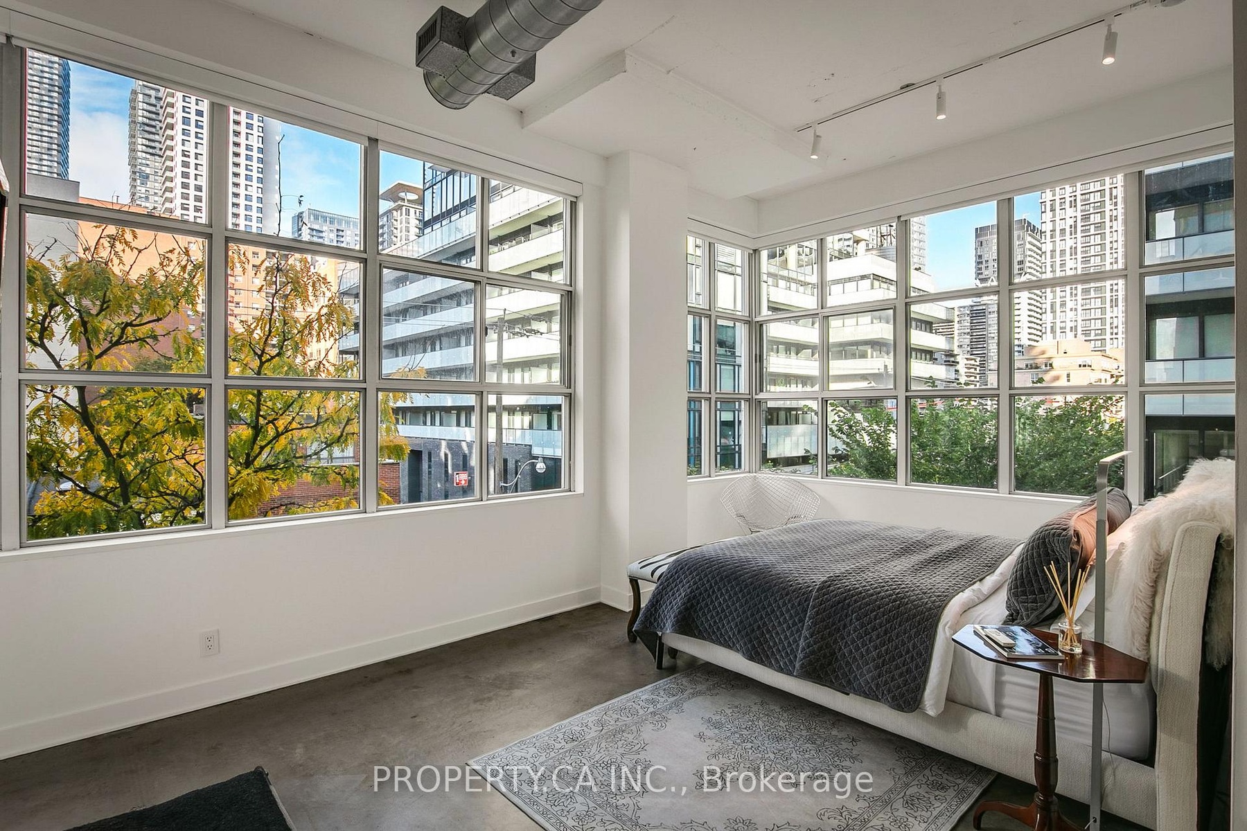BEST VALUE @ YONGE/EG! Rare Reno'd loft conversion! 1032 SF of cool, w/fully enclosed 2nd bed, alcove kitchen, wall to wall windows, 11' ceilings, polished concrete flrs, sliding industrial doors. New quartz counters/splashes, sinks/faucets/toilets, appliances, under counter light, magazine worthy pendants, walk-in master & entry built-in closets, spectacular rooftop rec/party/sundeck, bbq, gym. Steps to Yonge Eg, LRT, everything!
