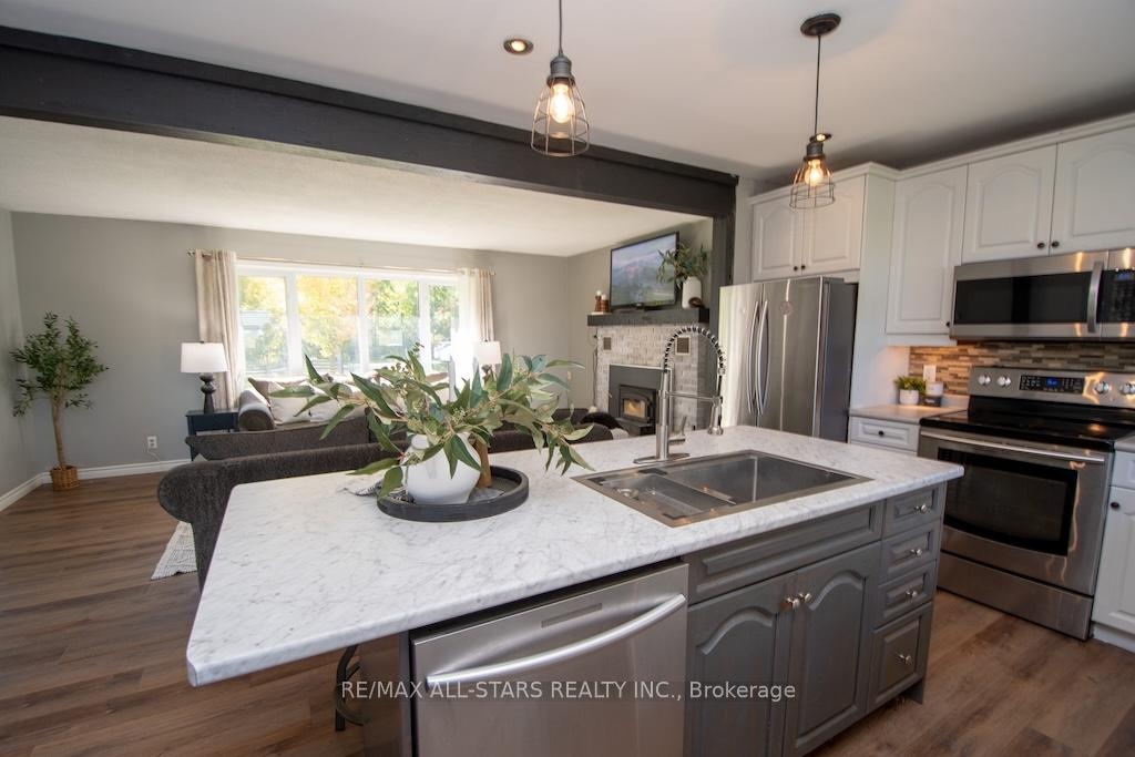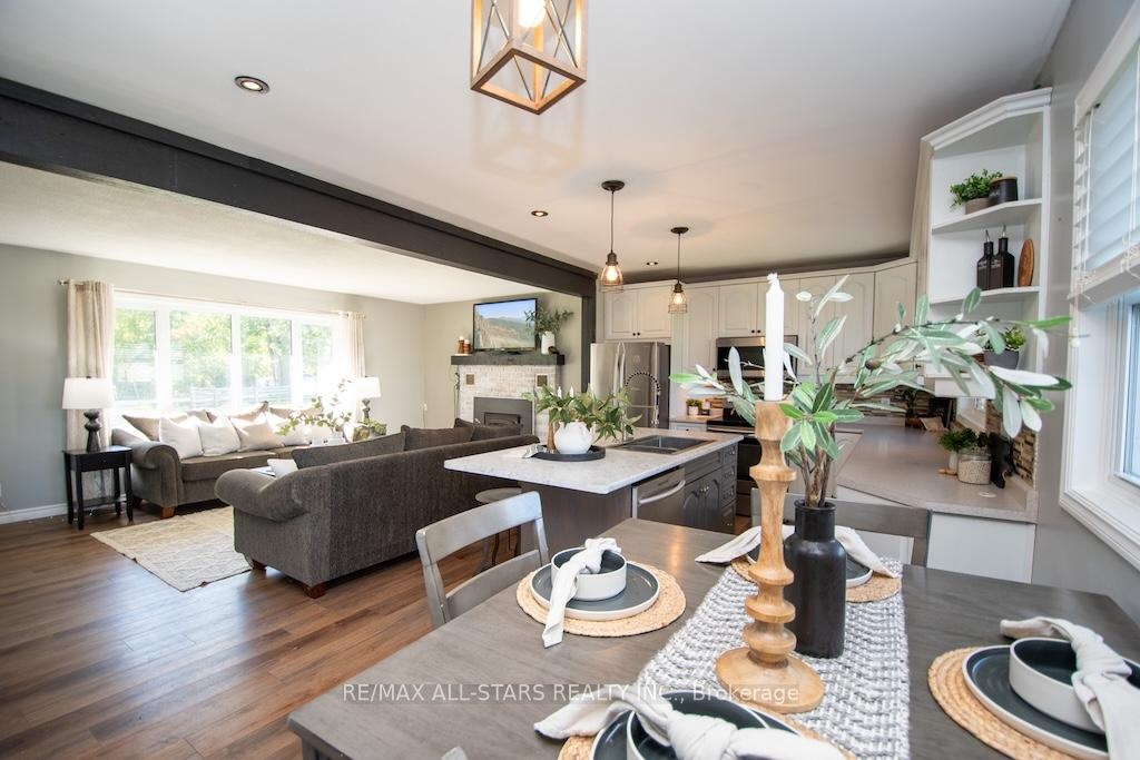 Discover country living with convenience in this charming 3-bedroom, 1.5-bath home set on a picturesque one-acre lot. Tucked into a peaceful rural landscape yet only minutes to Highway 7, this property offers the perfect balance of tranquility and accessibility. Commuters will appreciate being just 45 minutes to Durham College in Oshawa, under an hour to Newmarket, Markham, or North York, and only 20 minutes to Lindsay. Inside, enjoy recent updates including newer laminate flooring, interior and patio doors, modern light and plumbing fixtures, and a refreshed open concept eat in kitchen with stainless steel appliances, farm house sink, faucet, and backsplash and a large centre island. Powder room on the main floor. Upstairs is 3 good sized bedrooms with ample closet space and a 4 pc. bath.Your finished rec. room is cozy with above grade windows . . .PLUS a full lower level ideal for work out space or for storage. A newer deck, above ground pool and fenced yard provide safe and comfortable outdoor living complete with a fire pit to gather and view the Northern Lights. Hobbyists and tradespeople will love the 20 x 45 garage/workshop, perfect for year-round projects.This move-in ready home offers the quiet lifestyle you've been searching for!