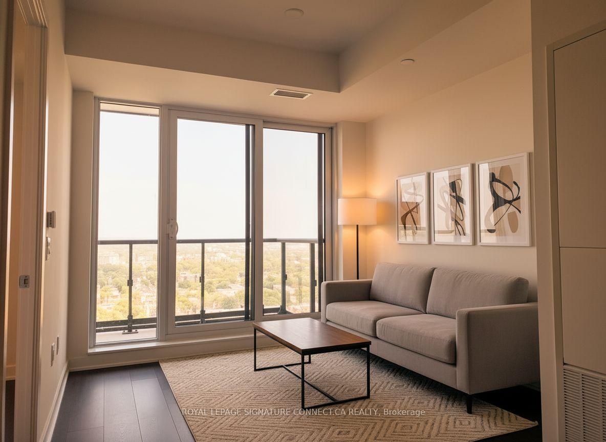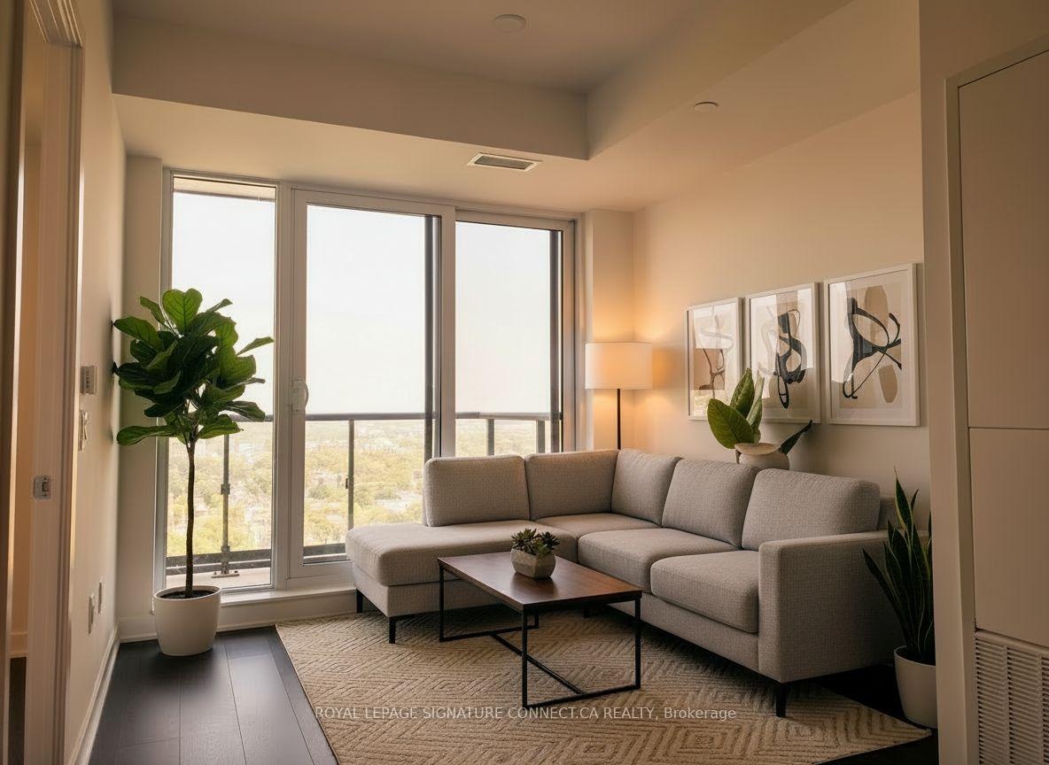 Spacious 1 bedroom suite available at the new Artworks Tower by Daniel's - enjoy expansive Eastern City & Park Views from the 27th floor balcony; 9' smooth finished ceilings & laminate hardwood flooring (Briar Oak) throughout; bright, open concept living with tall windows/lots of natural light; Kitchen features Quartz countertops, Custom Taupe Ceramic Backsplash, Built in appliances & versatile Centre Island! Custom ceramic backsplash in the bathroom, mirrored closet & tall window in the main bedroom. Not to be missed, welcome home!