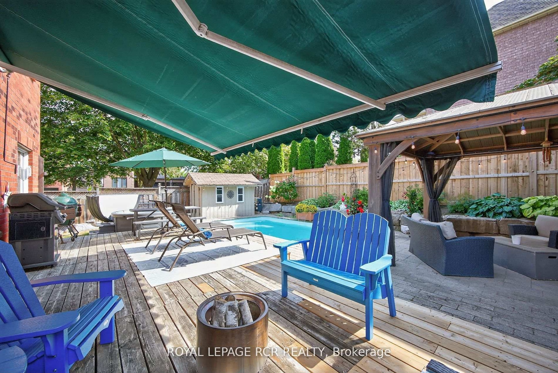 Welcome to this nicely appointed 4 bedroom home located in sought after Aurora Highlands, this beautiful home has been well maintained , has striking curb appeal with exterior soffit lighting and extensive landscaping. The home offers a functional spacious floor plan with the main floor featuring a generous sized living room, formal dining room & a cozy family room with fireplace overlooked by a modern updated kitchen, that steps out to a completely private backyard oasis with salt water pool & waterfall, hot tub, oversized gazebo, large deck with retractable awning perfect for summer fun or evening relaxation. Rich dark laminate floors run thru-out the main level, smooth ceiling's ,dimmable pot lights ,thru-out main & 2nd floor. The oversized primary bedroom offers double closets & a new 3 piece ensuite complimented by a skylight, while all 3 secondary bedrooms are generously sized. The fully finished basement is open concept offering a theater /games room with dimmable pot lights, B/I speakers & a cozy fireplace . For the car/motorcycle enthusiast there is the 2 car garage with ample storage & a separate workshop with steel roof, 2 opening skylights, hydro, rough in for woodstove & front & rear doors . This home truly has it all , close to public & catholic schools, parks , walking trails, shopping & easy access to hwy 400 & 404 .