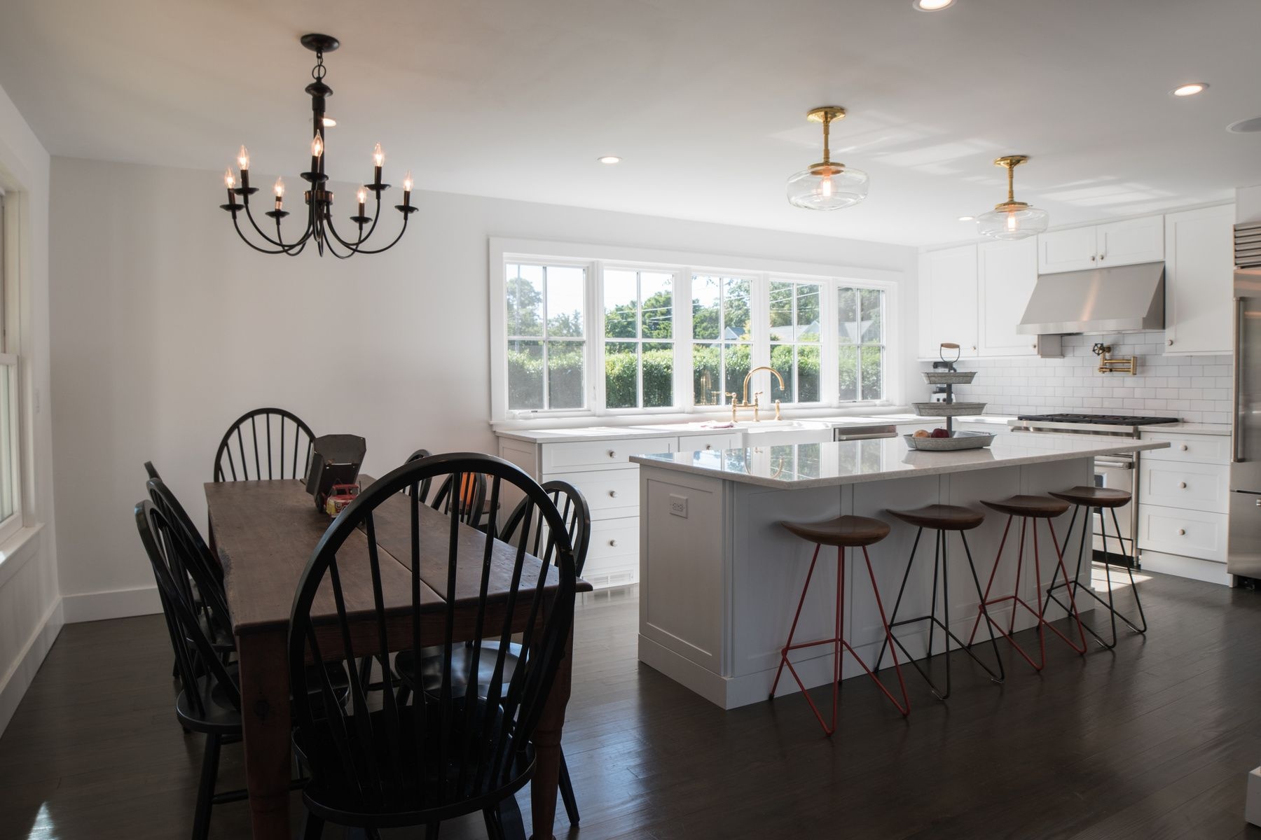 The first floor has an open concept design with incredible site lines. The home has its original oversized fireplace and 105-year-old restored hardwood floors that add a classic element and cozy character throughout. The open windowed kitchen, living and dining room all merge and act as one entertaining area. Nineteen oversized "Marvin Ultimate" windows downstairs allow for an incredibly bright experience throughout the day.