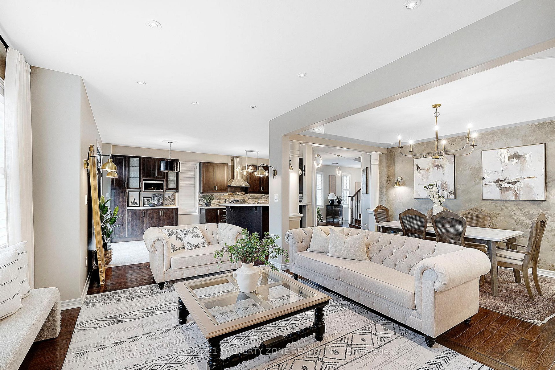 Welcome to this stunning corner-lot detached home in one of Milton's most desirable neighborhoods. This beautiful residence sits proudly on a premium corner lot and features a double car garage, a bright and spacious floor plan, and countless upgrades throughout. As you enter, you're greeted by a welcoming foyer that opens to a separate family room and a large, sun-filled living area, both designed to create the perfect atmosphere for everyday living and entertaining. The formal dining area offers ample space for family dinners and gatherings, while the upgraded extended kitchen stands out with its sleek modern finishes, quartz countertops, stainless steel appliances, and plenty of cabinetry for extra storage. Upstairs, the home continues to impress with a second living area on the 1.5-level floor, ideal as a media room, study space, or cozy retreat. The entire home features California shutters, providing a clean and contemporary touch while maintaining privacy and light control. The upper level hosts four spacious bedrooms, each with custom-designed closets offering thoughtful organization and generous storage. The loft area adds flexibility, perfect for a home office or play area. The fully finished basement expands the living space even further with a modern kitchen, a full bathroom, and an open-concept recreation area - an excellent setup for in-laws, extended family, or guests. Step outside to enjoy the beautifully landscaped backyard, complete with an oversized deck that's perfect for summer barbecues, family gatherings, or simply relaxing outdoors. Ideally located close to top-rated schools, scenic parks, shopping, restaurants, the Milton GO Station, Highway 401, and the upcoming university campus, this home truly offers living with convenience. Recent Upgrades Include : Roof (2024), Furnace & A/C (2023), Updated Carpet (2024), New backyard door, Custom closets, Coffered ceilings.