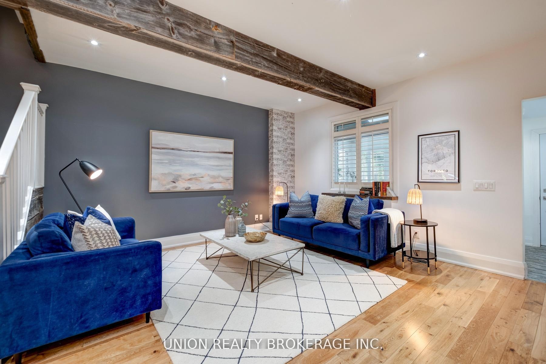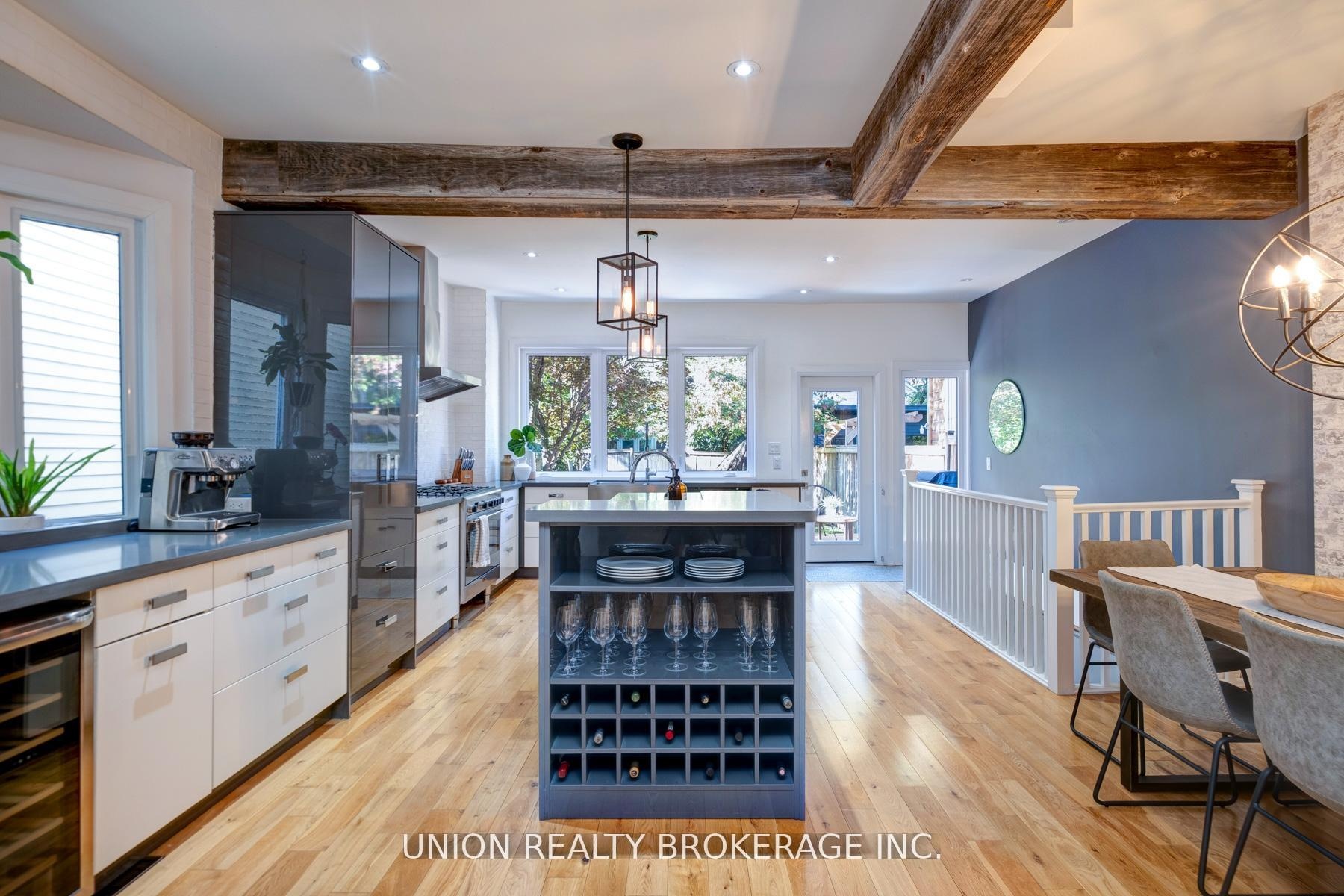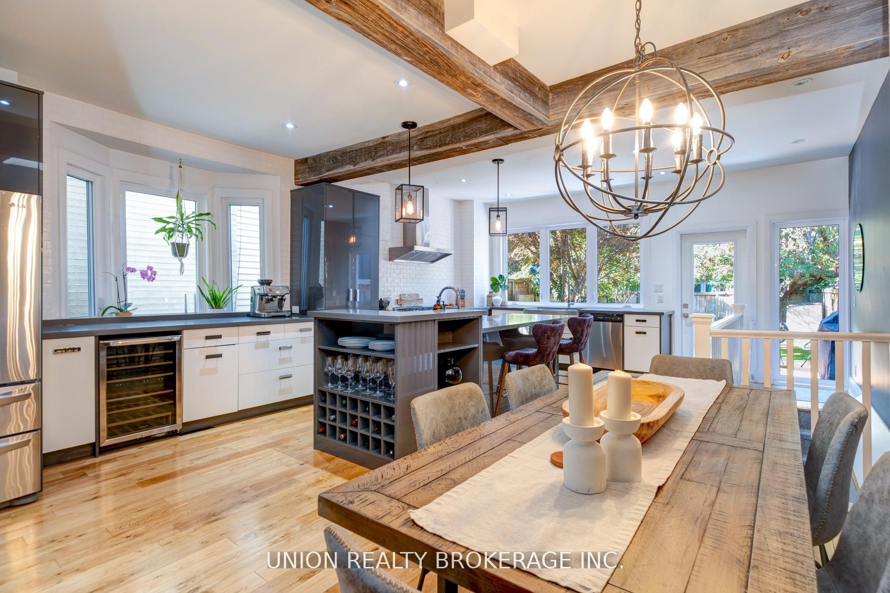 A rare find in the Beach! This large, detached 3-storey home offers exceptional space with 4+1 bedrooms, 4 bathrooms, a sunroom and a perfect blend of timeless character and modern luxury throughout. Light oak floors, reclaimed wood beams, and custom trim bring warmth and style throughout. The open-concept main floor features a chef's kitchen with stainless steel appliances, wine fridge, and a 10.5-ft island with built-in wine rack, plus a walkout to a brand-new deck overlooking a sunny, private west-facing yard, perfect for entertaining. The lower level impresses with 7.5-ft ceilings, a flexible layout ideal for a gym, media room, or guest suite, and a large, beautifully organized storage area (a rare find in the Beach) easily converted back to a bedroom or office. Upstairs offers 3 generous bedrooms and a full laundry room for everyday convenience, while the third-floor retreat is drenched in natural light, featuring skylights, an oversized walk-in closet, and a 5-piece ensuite with a soaker tub and serene views that make you feel miles from the city. Set in the heart of the Beach, this welcoming home is just steps to Queen Street, Kew Beach PS, parks & transit. City approval for front pad parking - homes of this size and quality rarely come up in the Beach, so don't wait to see it!