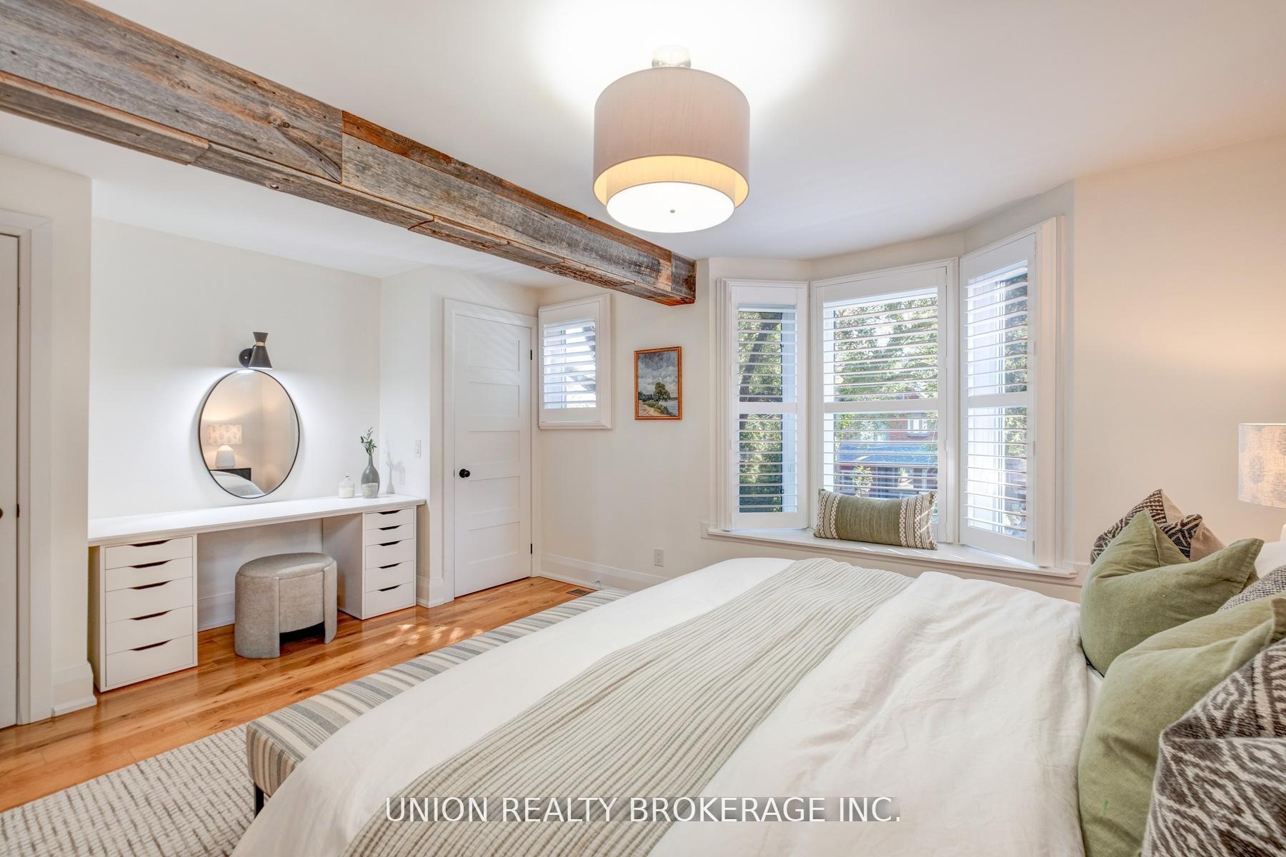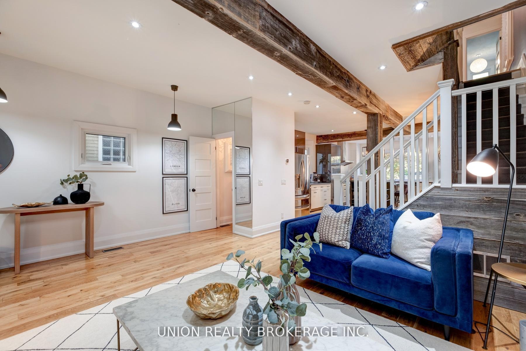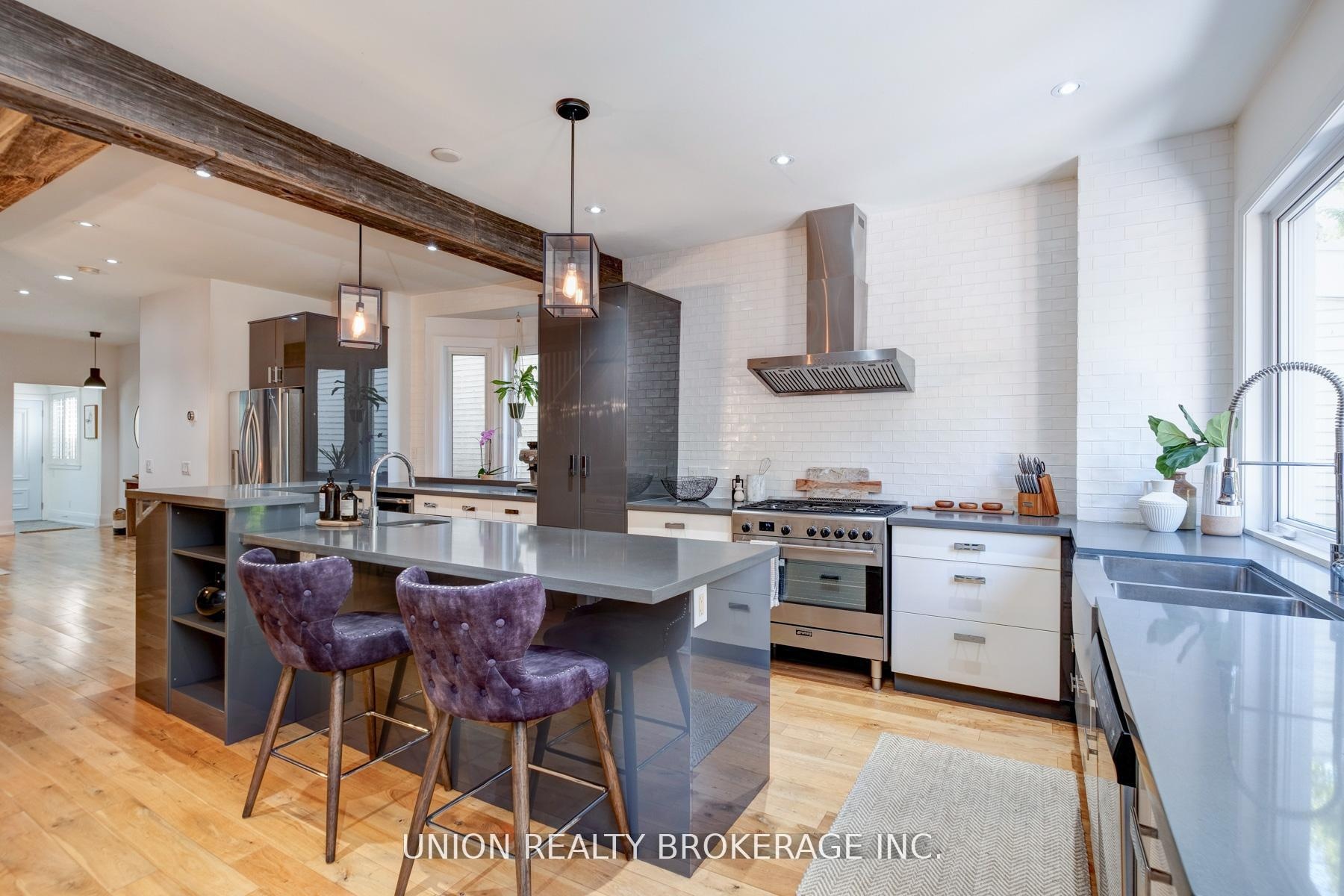 A rare find in the Beach! This large, detached 3-storey home offers exceptional space with 4+1 bedrooms, 4 bathrooms, a sunroom and a perfect blend of timeless character and modern luxury throughout. Light oak floors, reclaimed wood beams, and custom trim bring warmth and style throughout. The open-concept main floor features a chef's kitchen with stainless steel appliances, wine fridge, and a 10.5-ft island with built-in wine rack, plus a walkout to a brand-new deck overlooking a sunny, private west-facing yard, perfect for entertaining. The lower level impresses with 7.5-ft ceilings, a flexible layout ideal for a gym, media room, or guest suite, and a large, beautifully organized storage area (a rare find in the Beach) easily converted back to a bedroom or office. Upstairs offers 3 generous bedrooms and a full laundry room for everyday convenience, while the third-floor retreat is drenched in natural light, featuring skylights, an oversized walk-in closet, and a 5-piece ensuite with a soaker tub and serene views that make you feel miles from the city. Set in the heart of the Beach, this welcoming home is just steps to Queen Street, Kew Beach PS, parks & transit. City approval for front pad parking - homes of this size and quality rarely come up in the Beach, so don't wait to see it!