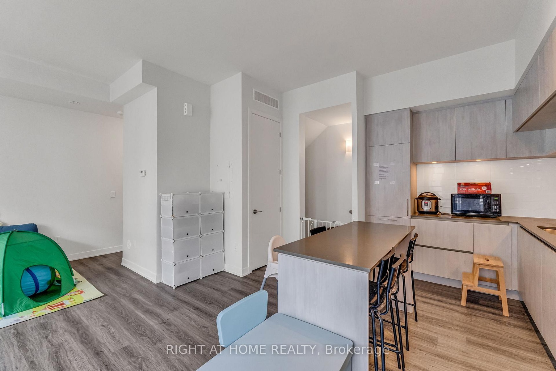 Bright & Spacious Upper-level Townhouse in high-demand Richmond Hill location! 1268sqft interior plus 364sqft private roof terrace. Contemporary Design with Huge Windows. 10' Ceiling on main and 9' on Bedroom Level, Laminate flooring throughout. Modern kitchen with Extended Cabinet, Valance Lighting, and Pantry. Quartz Countertop w/ Backsplash & Built-in Appliances, Large Centre Island with Breakfast. Large Master w/3 Pcs Ensuite. Elevator access to the parking lot at the doorstep.