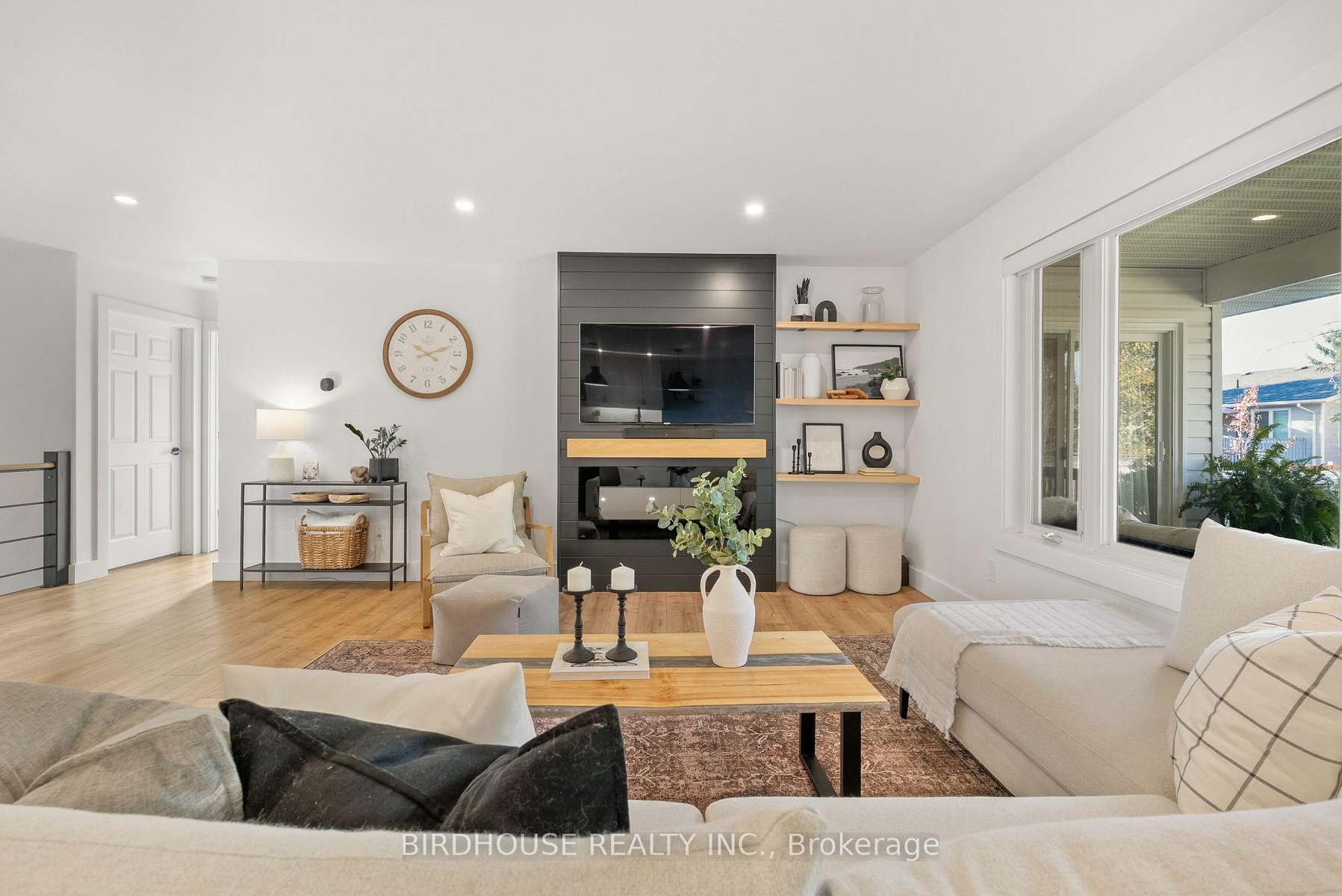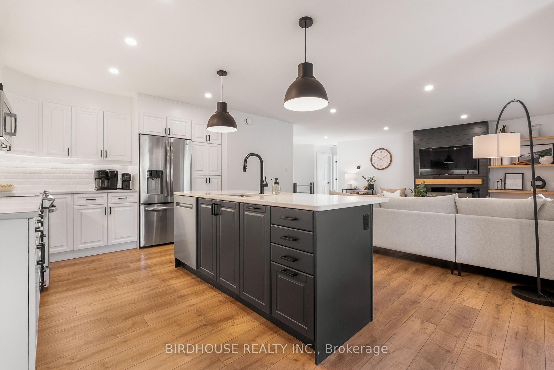 STUNNING 4 bedroom 3 bathroom bungalow in lovely Bobcaygeon! While only built in 2006, this home has been EXTENSIVELY RENOVATED from top to bottom with gorgeous finishes throughout including luxury vinyl plank, quartz countertops, new bathroom fixtures, custom light fixtures & iron entryway banister. The master bedroom features a walk-out to a covered deck plus a beautiful ensuite complete with dual sinks & glass tiled shower. Convenient main floor laundry room and bonus 2pc guest bathroom.The FULLY FINISHED BASEMENT features a second living room, 3rd bathroom, two additional bedrooms & spacious workout area with rubber flooring (possible 5th bedroom). The attached double car garage is HUGE with incredible ceiling height & entrance directly into the home. Updates include: HWT (2024), Shingles (2020) & AC (2018).