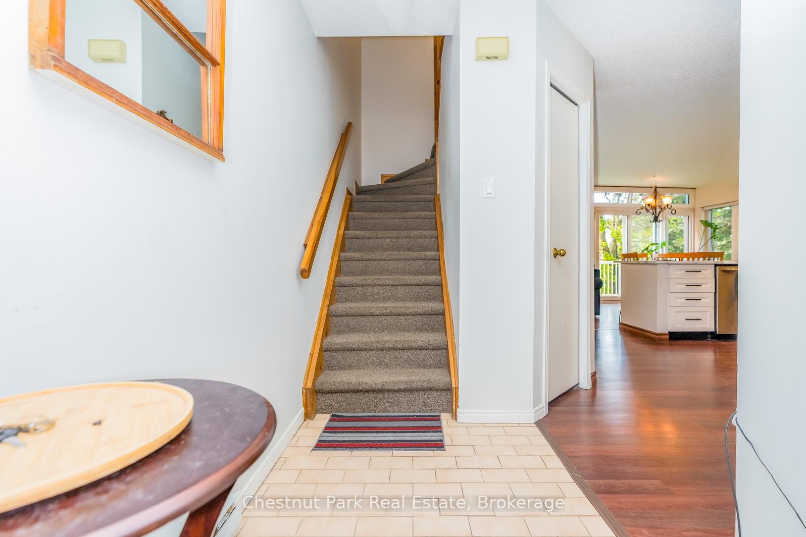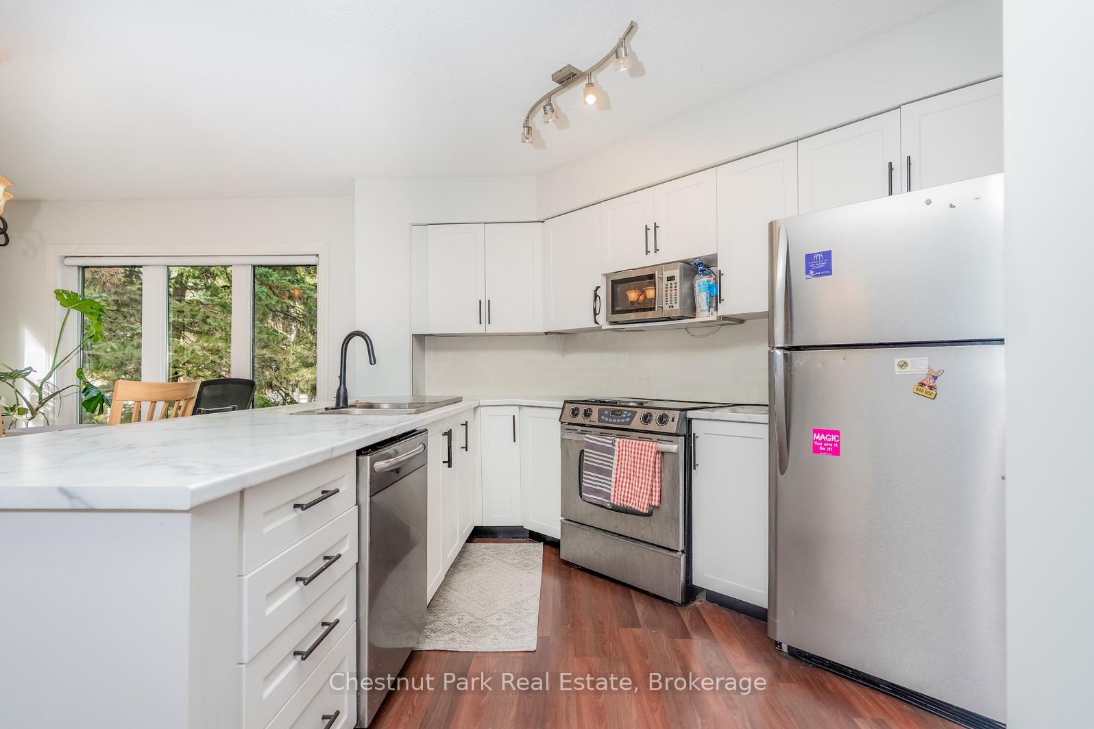 Welcome to Briarwood II in the gated waterfront community of Ruperts Landing in Collingwood. This development is the perfect match for those seeking the active lifestyle in a community that has so much to offer. Tennis, pickleball, a playground for the kids, a recreation centre with a community room for entertaining, pool table, indoor pool, exercise room and squash/basketball court and private marina on Georgian Bay. This bright and spacious 3 bedroom 2.5 bath condo has plenty of room for family and visiting friends/relatives. The main floor open floor plan features a 2 pc powder room, living room with gas fireplace, updated kitchen and dining room with walk-out to a large deck with gas hookup for bbq for entertaining family and friends. The second floor features the 3 bedrooms with 3 pc ensuite for the primary and a separate 4 pc bath for the guest bedrooms. Perfect for a full time home or weekend getaway with the family to enjoy all our four-season area has to offer. Ruperts Landing is a sought after waterfront community with a private marina (fee for use of the boat slips) where you can put paddle boards and kayaks in the water and store them there as well. Just a short drive to downtown Collingwood boutique shops, amazing restaurants, markets, art galleries and so much more. A 10 - 15 minute drive to Blue Mountain Village, local private ski clubs and a variety of golf courses. Condo fees include water and sewer charges. This amazing development is waiting for you to engage and make it your home getaway.