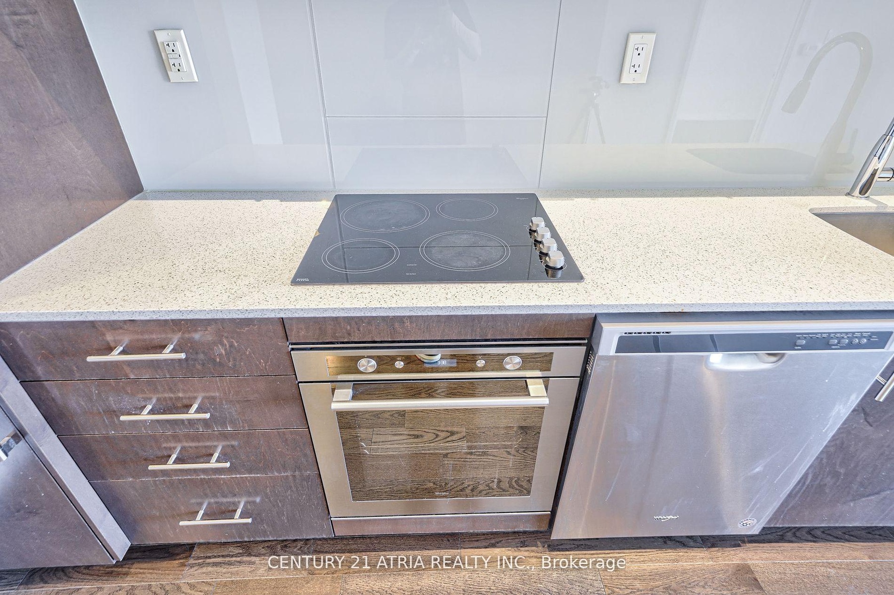 Welcome to Axiom Condo! This stunning corner suite features one bedroom plus a den, complete with parking and a locker for added convenience. Boasting 10' ceilings and elegant hardwood floors throughout, the residence exudes sophistication and style. The Euro-style kitchen is equipped with quartz countertops and a sleek backsplash, perfect for culinary enthusiasts. The grand living room opens to a spacious balcony, ideal for relaxing or entertaining. The generously sized den offers flexibility as a home office or even a second bedroom. Residents enjoy 24-hour concierge service and unparalleled access to the best of downtown living. Just steps from St. Lawrence Market, TTC, Ryerson University, George Brown College, shopping, Sugar Beach, and a variety of cafes and restaurants, this location combines convenience with vibrant city life. With an exceptional walk score and transit score of 99, this is urban living at its finest.