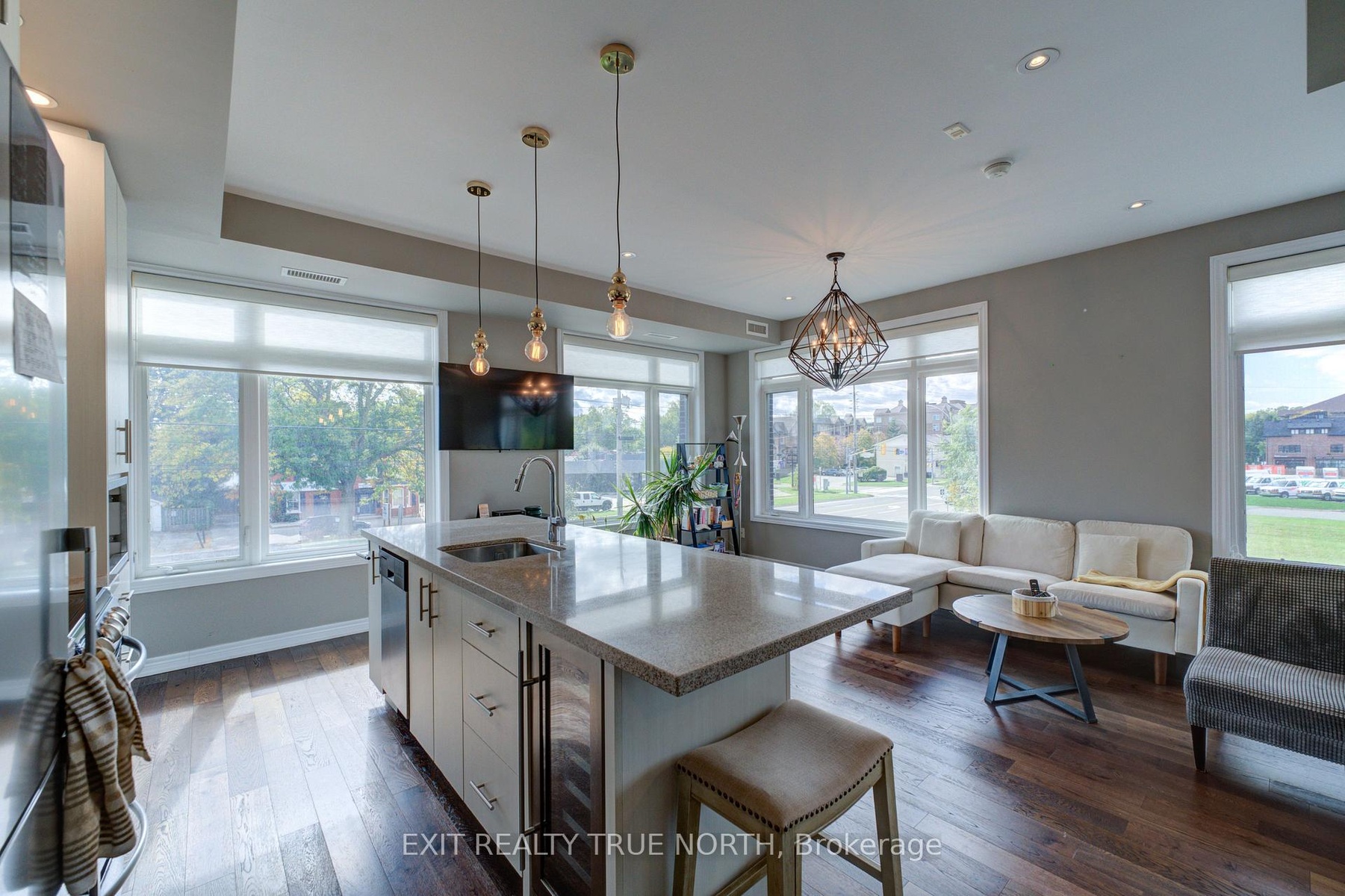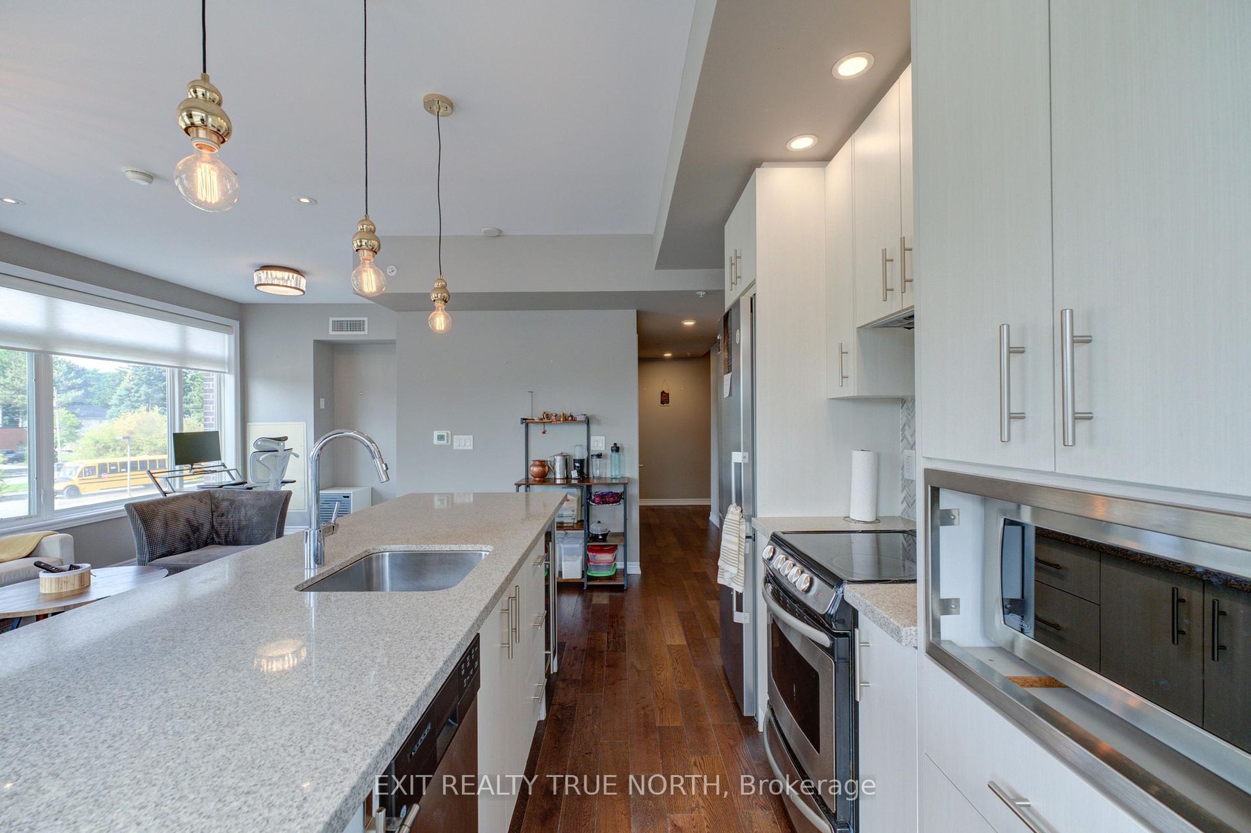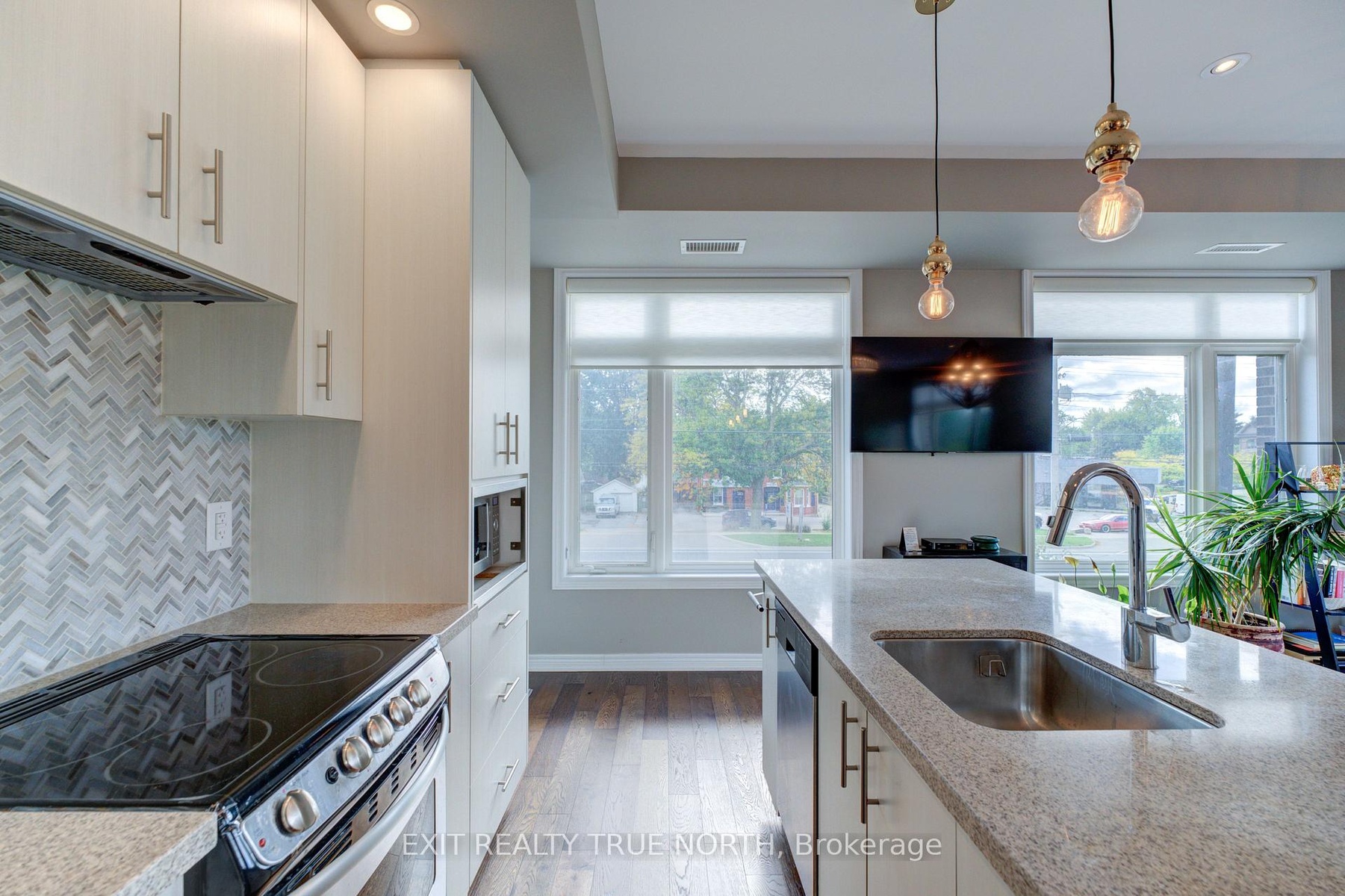 Welcome to Jazz Condos in Burlington's vibrant Aldershot neighbourhood! This sun-soaked corner suite offers modern style with a bright, open-concept layout and soaring 9' ceilings. Wraparound windows flood the space with natural light, while the sleek kitchen boasts stainless steel appliances, wine fridge, undermount sink, and a striking 8' island perfect for gatherings. The primary bedroom features a walk-in closet, ensuite bath, and private balcony, while the second bedroom also enjoys its own balcony access for a unique retreat. Two underground parking spots, a storage locker, and in-suite laundry add everyday convenience. At Jazz, you'll also enjoy premium amenities including a fitness centre, party room, games room, and outdoor BBQ area, ideal for both entertaining and unwinding. This stylish suite combines comfort, functionality, and lifestyle in one of Burlington's most sought-after communities.