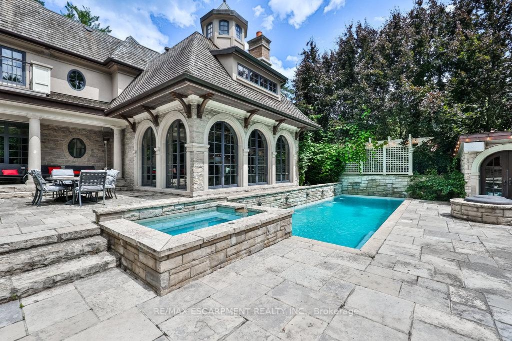 This stunning estate, situated on an expansive 105 x 348 ft lot, offers over 8,200 sq. ft. of luxurious living space. With 5 bedrooms and 6 bathrooms, this home is perfect for those seeking both opulence and practicality. The grand entrance, featuring solid wood double doors, leads to a formal foyer with heated travertine marble floors and soaring vaulted ceilings. The gourmet kitchen is a culinary masterpiece, equipped with top-tier appliances, heated marble floors, and coffered ceilings ideal for both everyday meals and elegant entertaining. The primary suite is a private retreat with heated hardwood floors, a cozy fireplace, and large windows offering breathtaking views of the landscaped backyard. The spa-inspired ensuite features a Jacuzzi tub, steam shower, and beautiful granite finishes, providing a true oasis. Step outside to your private sanctuary, where an inground pool, hot tub, and built-in BBQ area await. Surrounded by lush landscaping and scenic ravine views, this outdoor space is perfect for relaxation or hosting gatherings.1476 Carmen Drive offers a unique blend of luxury, privacy, and unparalleled craftsmanship, your opportunity to experience a lifestyle of comfort and sophistication. Luxury Certified.