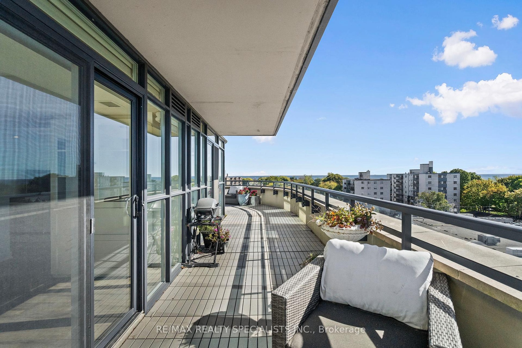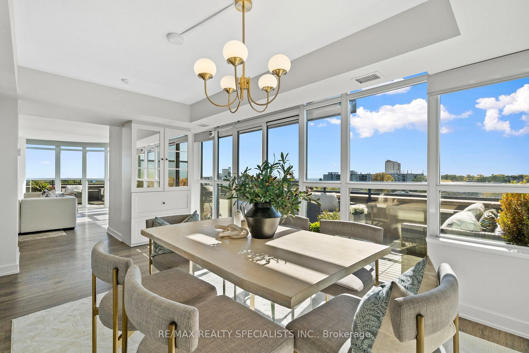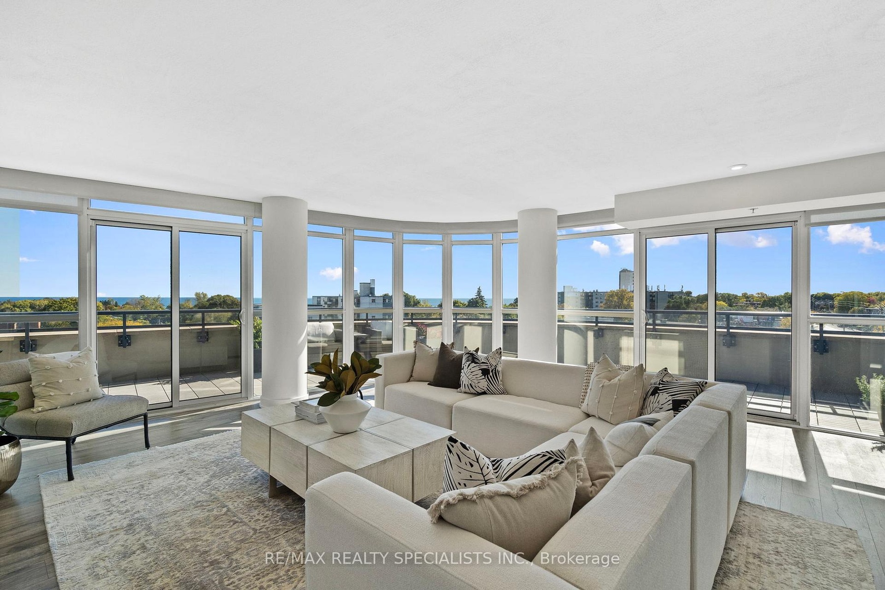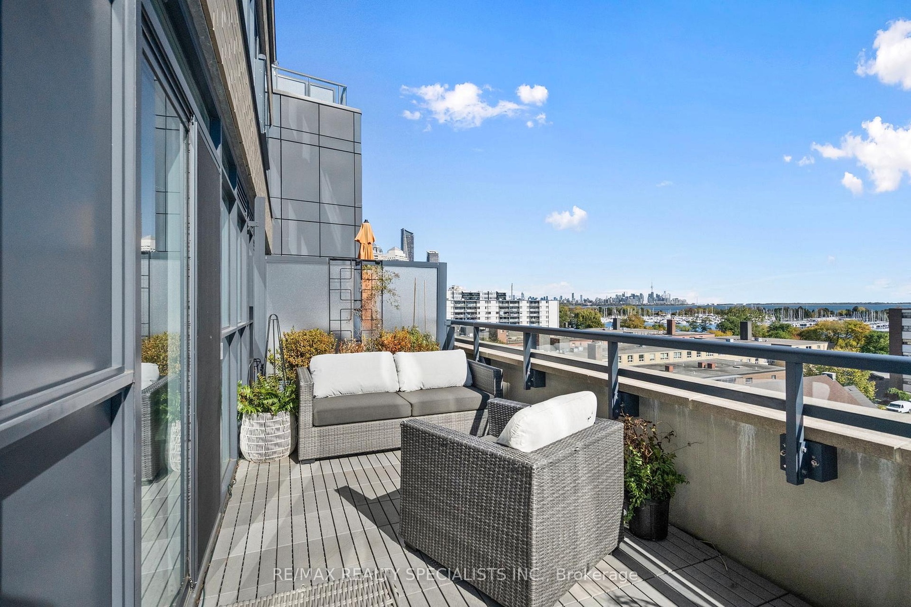 Stretching across the full width of this double unit, this modern home is anchored by one of the largest private terraces at 11 Superior - a wraparound sanctuary with panoramic views of the lake, yacht club, and Toronto skyline. Equally suited for lively family gatherings or lazy mornings with coffee and pancakes, this Penthouse-like seventh-floor suite redefines luxury living in Mimico with a rare sense of warmth, comfort, and connection. Custom designed as a double-unit master statement, this 2+1 bedroom, 2-bath residence with 2 parking spaces and 2 lockers strikes a perfect balance between sophistication and practicality. The grand salon, the heart of the home, is framed by floor-to-ceiling glass and a curved architectural wall-ideal for entertaining, family moments, or even an impromptu piano performance.The full-sized kitchen flows effortlessly into an open dining area large enough to host holiday dinners. The primary suite is a true retreat with terrace access, a walk-in closet, custom cabinetry, and a spa-inspired ensuite that invites relaxation. 2nd bed bring loft like feel with barn door and built-ins. The +1 bed/den offers versatility-perfect for guests, work, or creative projects-while also performing as a formal den and mudroom, adding huge practicality with built-ins and a dedicated laundry station. Convenience meets function with two side-by-side parking spaces and two lockers-an exceptionally rare find in boutique condominium living. Beyond its walls, 11 Superior remains one of Mimico's most celebrated addresses, offering unmatched access to the waterfront, parks, trails, shops and restaurants, TTC, and the Mimico GO Station. This is more than a condo-it's a home in a village that welcomes gathering, celebrates design, and captures the essence of refined, connected living by the lake.