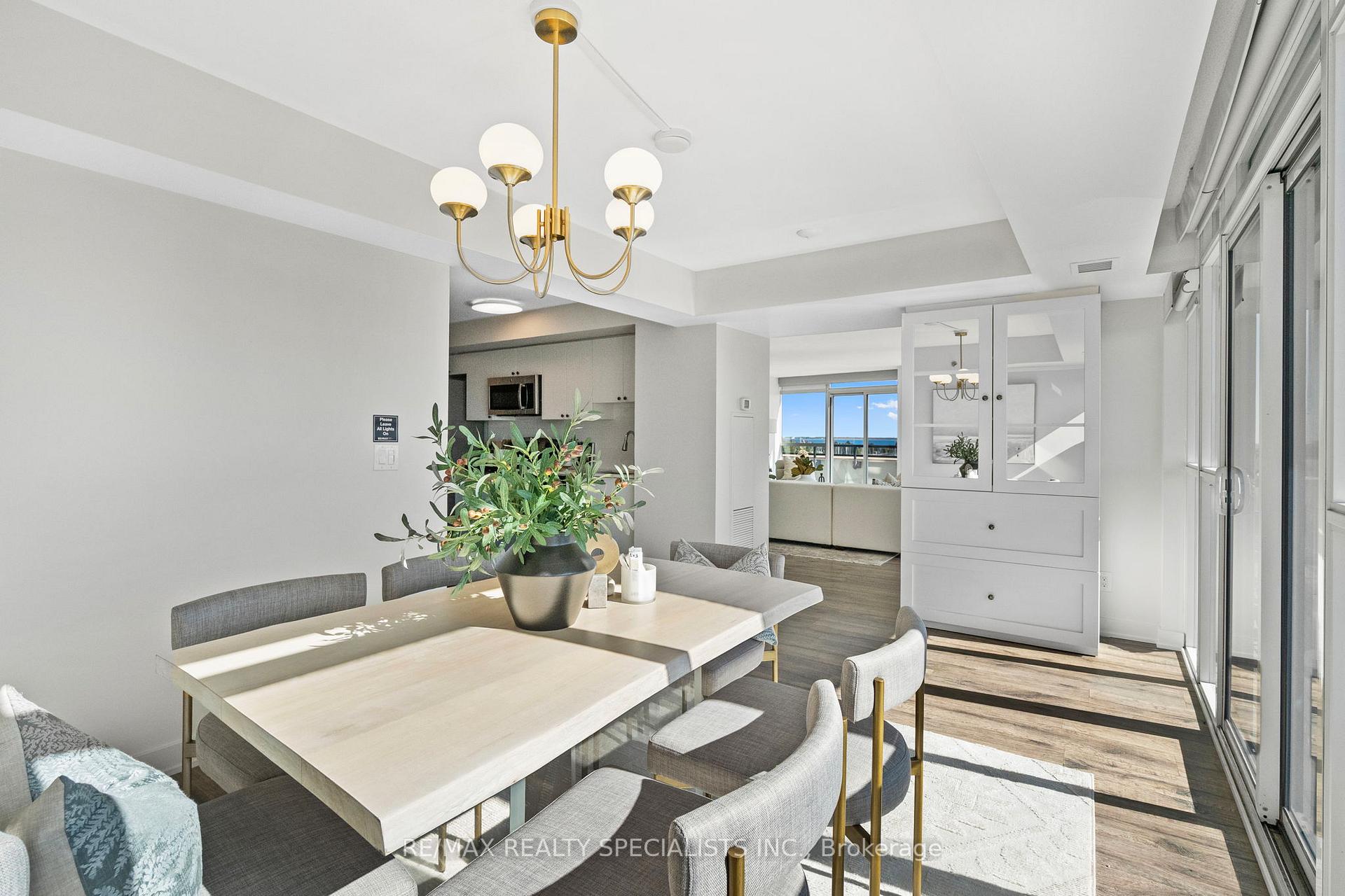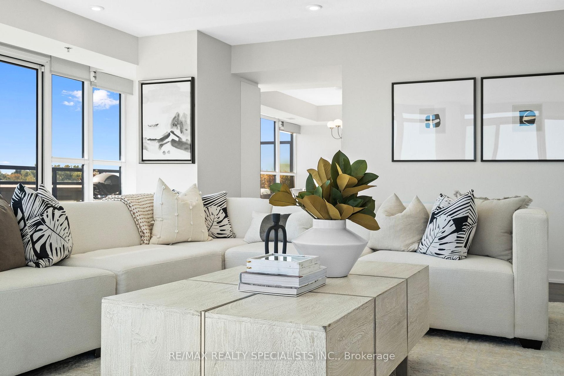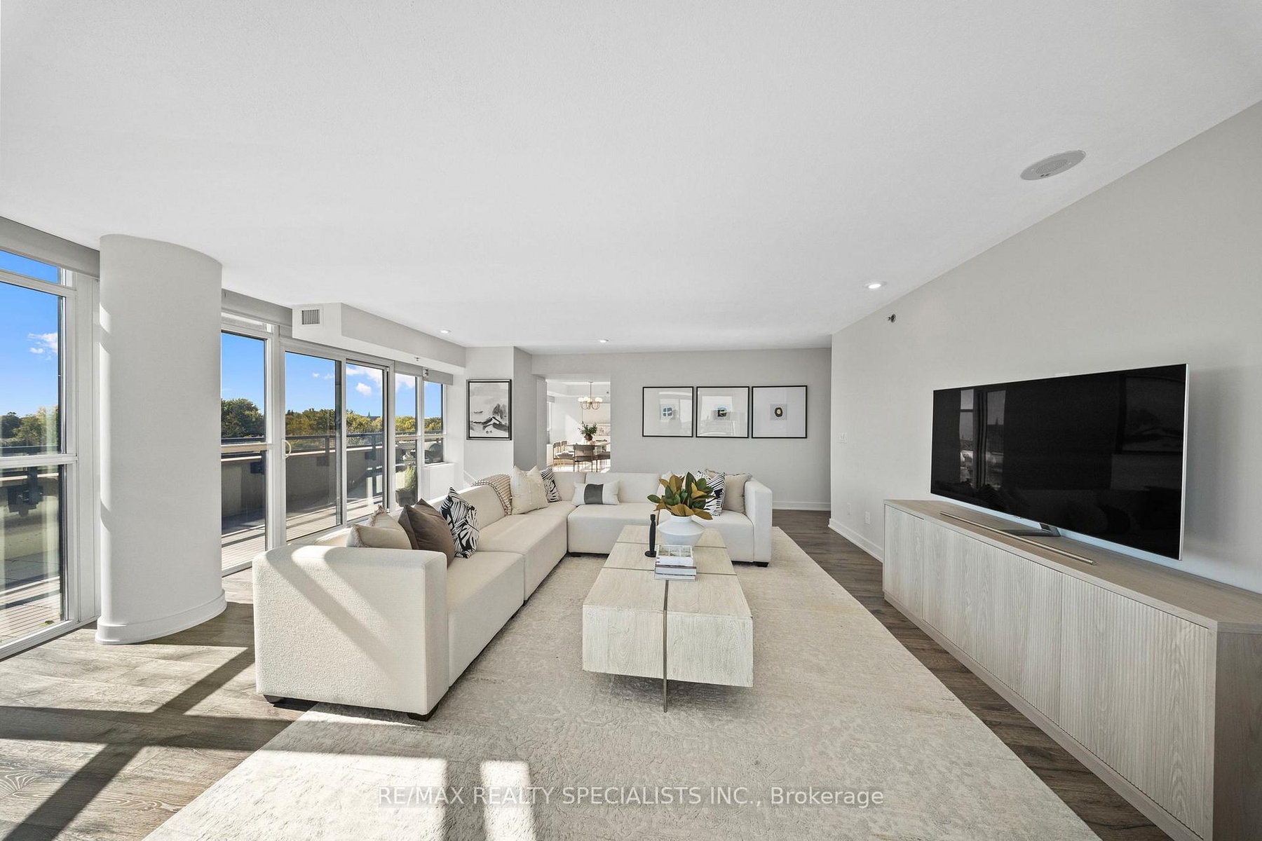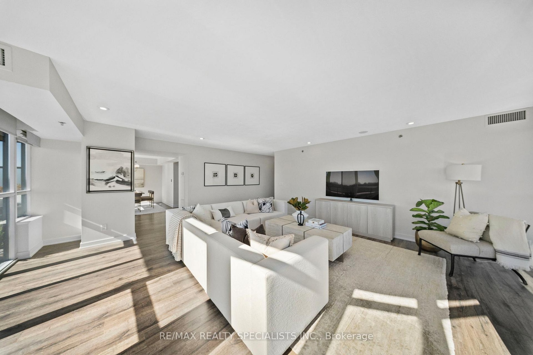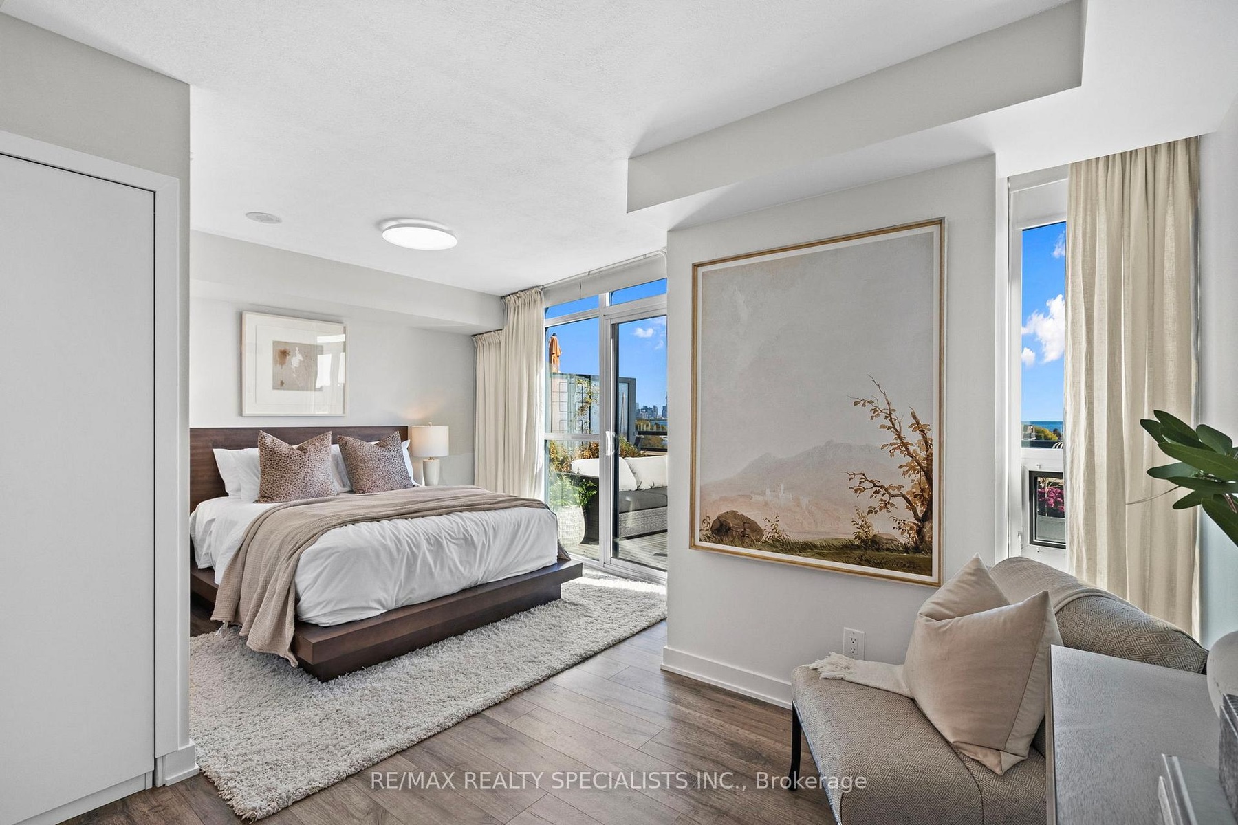 Stretching across the full width of this double unit, this modern home is anchored by one of the largest private terraces at 11 Superior - a wraparound sanctuary with panoramic views of the lake, yacht club, and Toronto skyline. Equally suited for lively family gatherings or lazy mornings with coffee and pancakes, this Penthouse-like seventh-floor suite redefines luxury living in Mimico with a rare sense of warmth, comfort, and connection. Custom designed as a double-unit master statement, this 2+1 bedroom, 2-bath residence with 2 parking spaces and 2 lockers strikes a perfect balance between sophistication and practicality. The grand salon, the heart of the home, is framed by floor-to-ceiling glass and a curved architectural wall-ideal for entertaining, family moments, or even an impromptu piano performance.The full-sized kitchen flows effortlessly into an open dining area large enough to host holiday dinners. The primary suite is a true retreat with terrace access, a walk-in closet, custom cabinetry, and a spa-inspired ensuite that invites relaxation. 2nd bed bring loft like feel with barn door and built-ins. The +1 bed/den offers versatility-perfect for guests, work, or creative projects-while also performing as a formal den and mudroom, adding huge practicality with built-ins and a dedicated laundry station. Convenience meets function with two side-by-side parking spaces and two lockers-an exceptionally rare find in boutique condominium living. Beyond its walls, 11 Superior remains one of Mimico's most celebrated addresses, offering unmatched access to the waterfront, parks, trails, shops and restaurants, TTC, and the Mimico GO Station. This is more than a condo-it's a home in a village that welcomes gathering, celebrates design, and captures the essence of refined, connected living by the lake.
