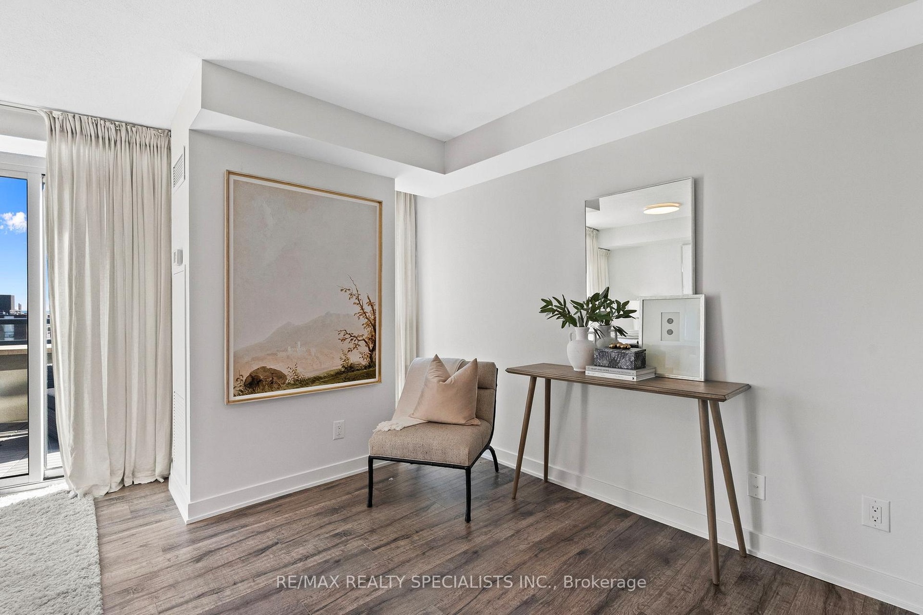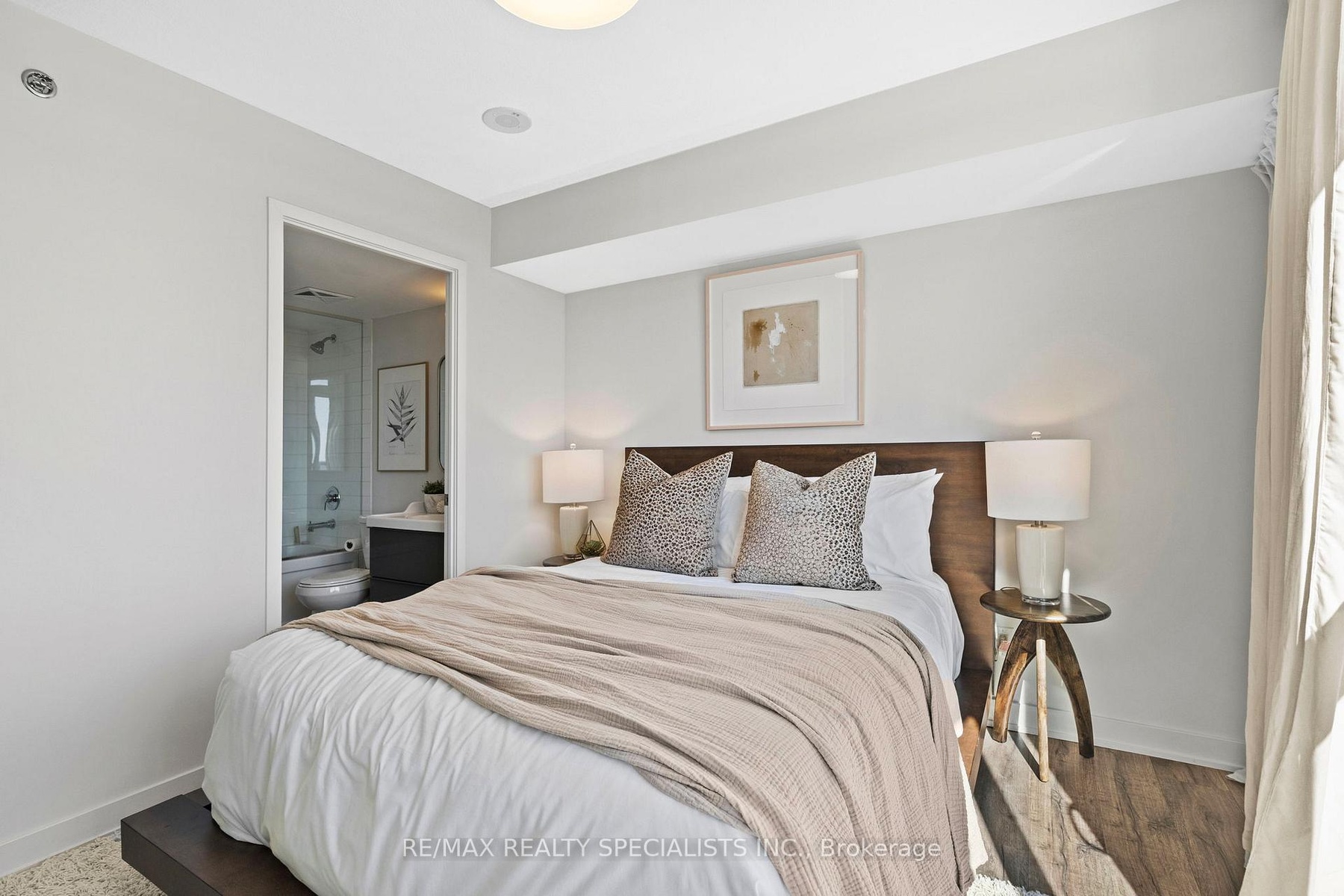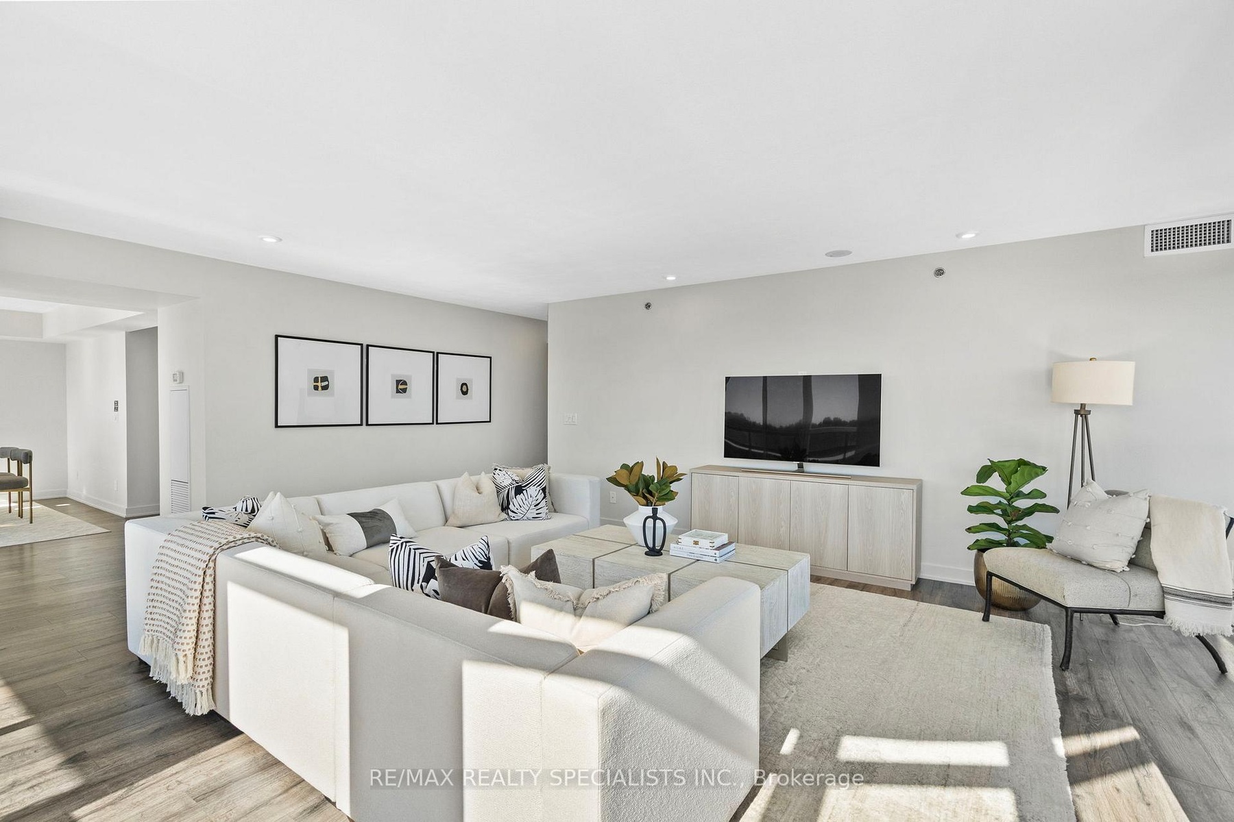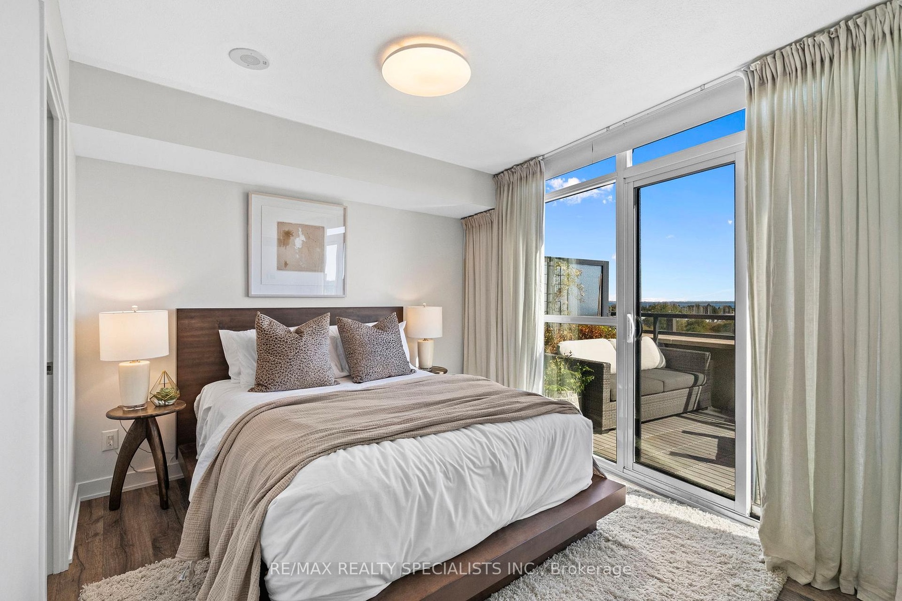 Stretching across the full width of this double unit, this modern home is anchored by one of the largest private terraces at 11 Superior - a wraparound sanctuary with panoramic views of the lake, yacht club, and Toronto skyline. Equally suited for lively family gatherings or lazy mornings with coffee and pancakes, this Penthouse-like seventh-floor suite redefines luxury living in Mimico with a rare sense of warmth, comfort, and connection. Custom designed as a double-unit master statement, this 2+1 bedroom, 2-bath residence with 2 parking spaces and 2 lockers strikes a perfect balance between sophistication and practicality. The grand salon, the heart of the home, is framed by floor-to-ceiling glass and a curved architectural wall-ideal for entertaining, family moments, or even an impromptu piano performance.The full-sized kitchen flows effortlessly into an open dining area large enough to host holiday dinners. The primary suite is a true retreat with terrace access, a walk-in closet, custom cabinetry, and a spa-inspired ensuite that invites relaxation. 2nd bed bring loft like feel with barn door and built-ins. The +1 bed/den offers versatility-perfect for guests, work, or creative projects-while also performing as a formal den and mudroom, adding huge practicality with built-ins and a dedicated laundry station. Convenience meets function with two side-by-side parking spaces and two lockers-an exceptionally rare find in boutique condominium living. Beyond its walls, 11 Superior remains one of Mimico's most celebrated addresses, offering unmatched access to the waterfront, parks, trails, shops and restaurants, TTC, and the Mimico GO Station. This is more than a condo-it's a home in a village that welcomes gathering, celebrates design, and captures the essence of refined, connected living by the lake.