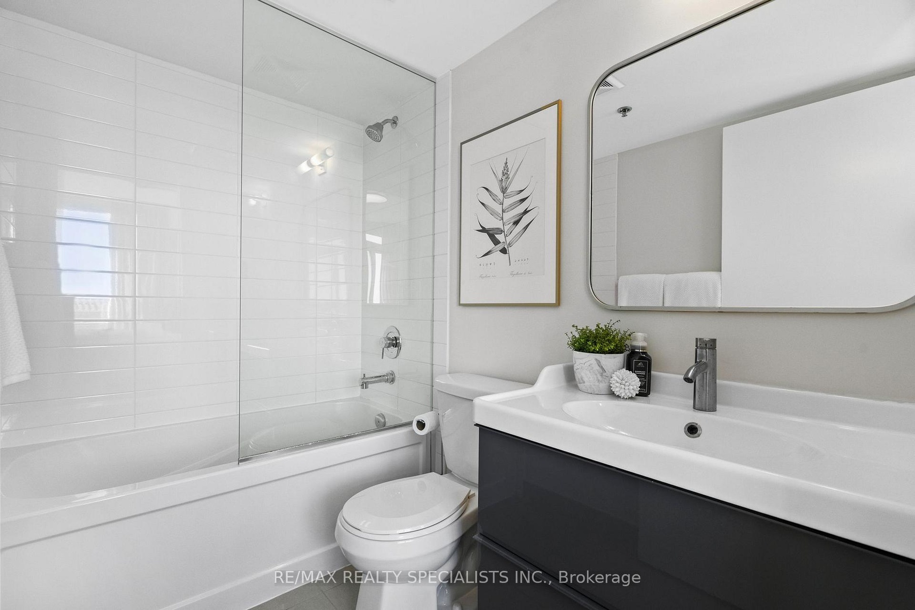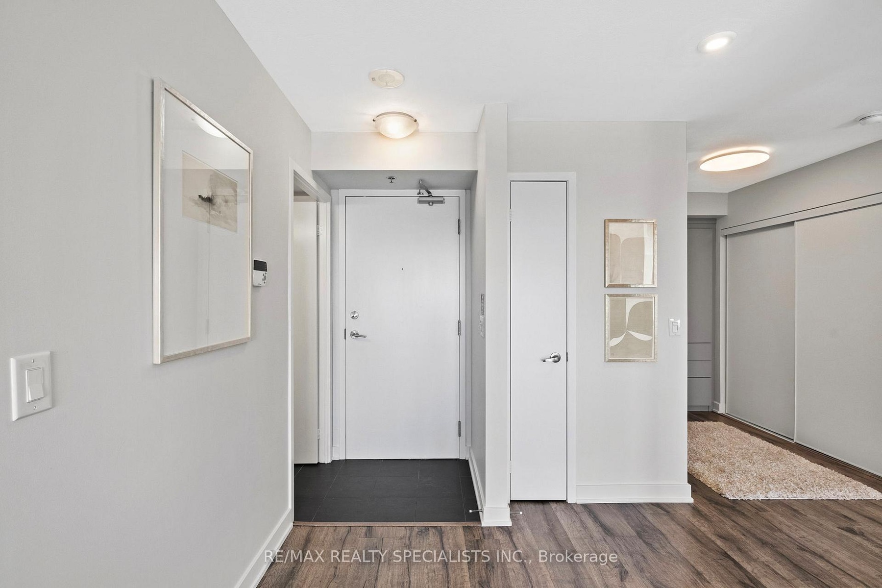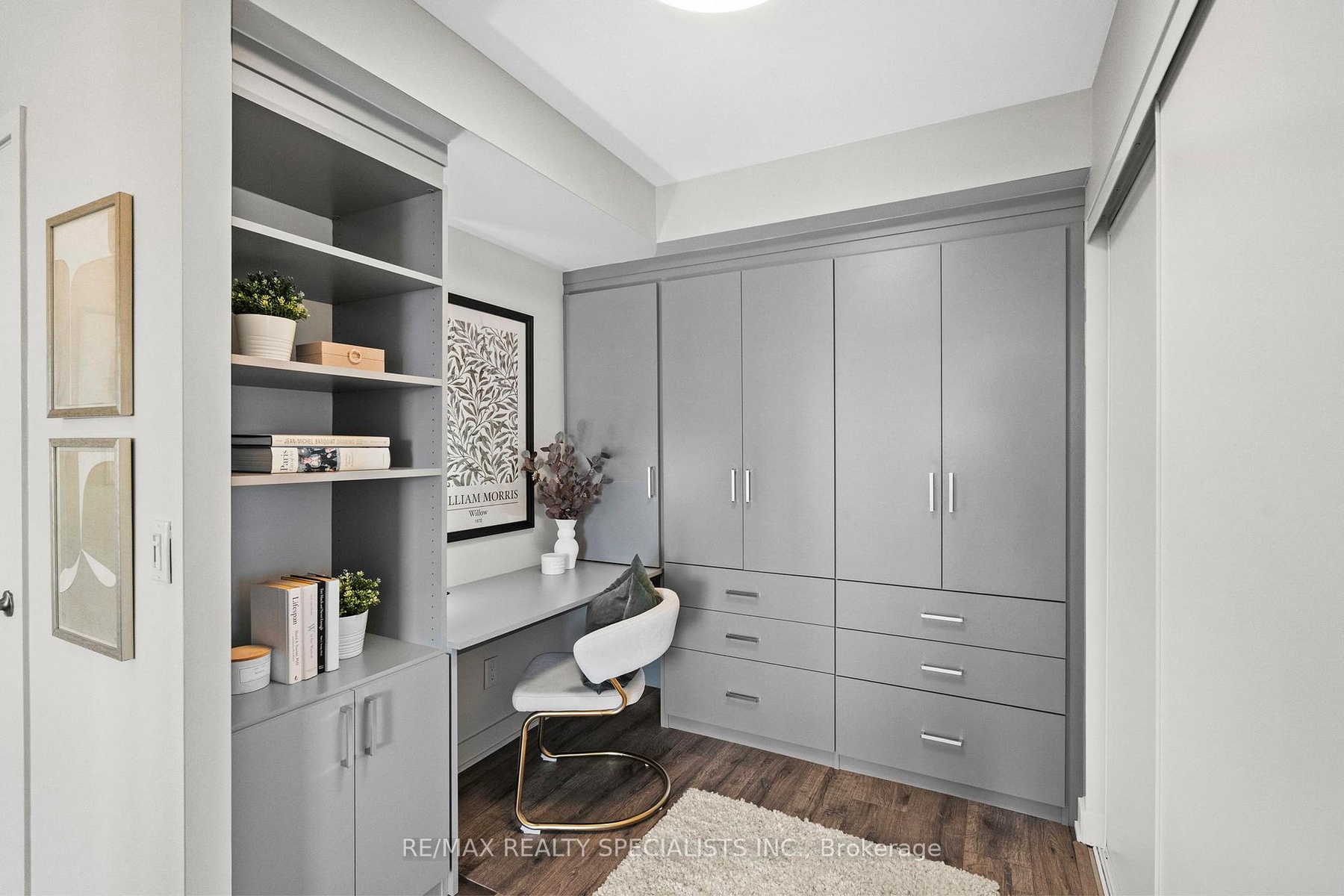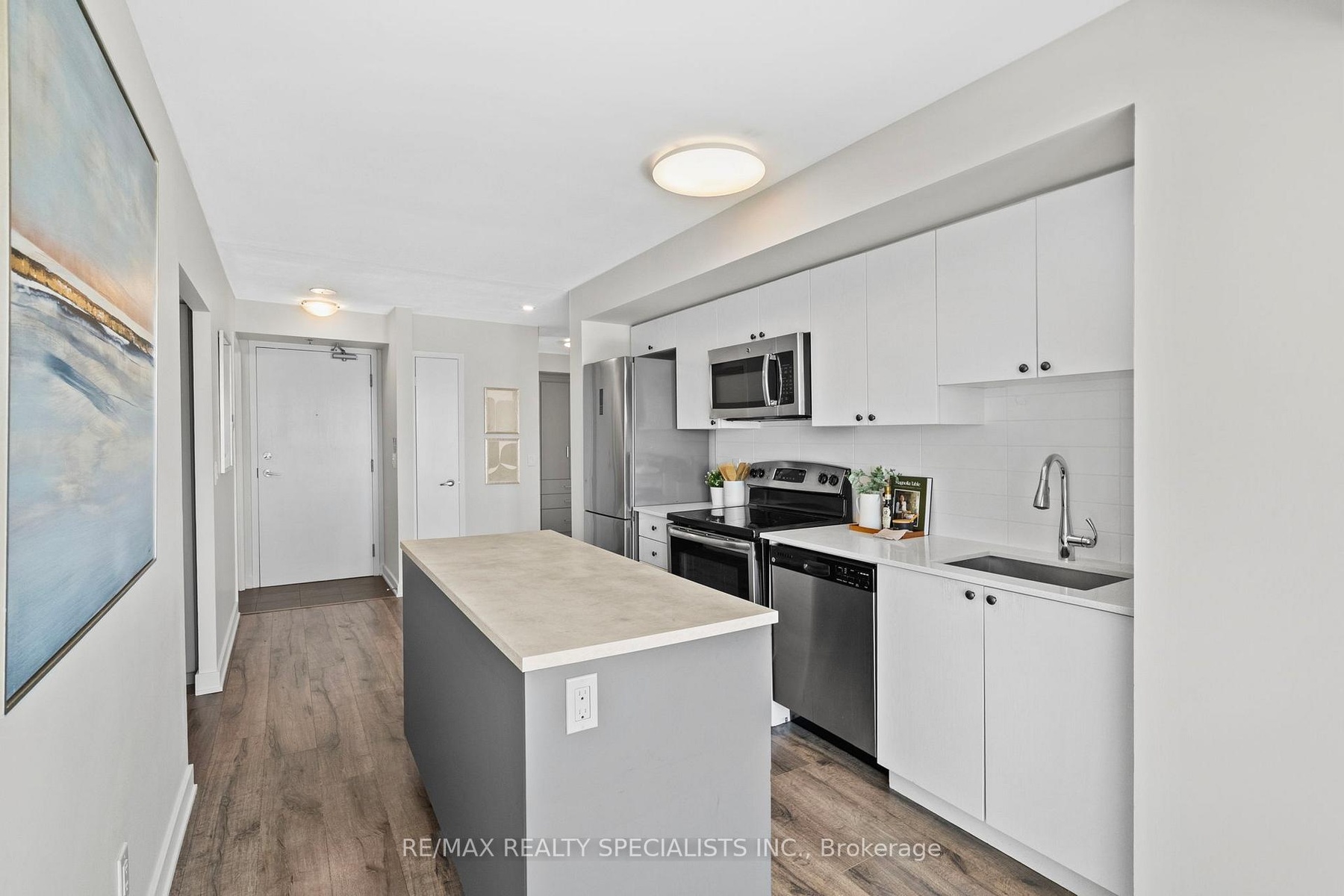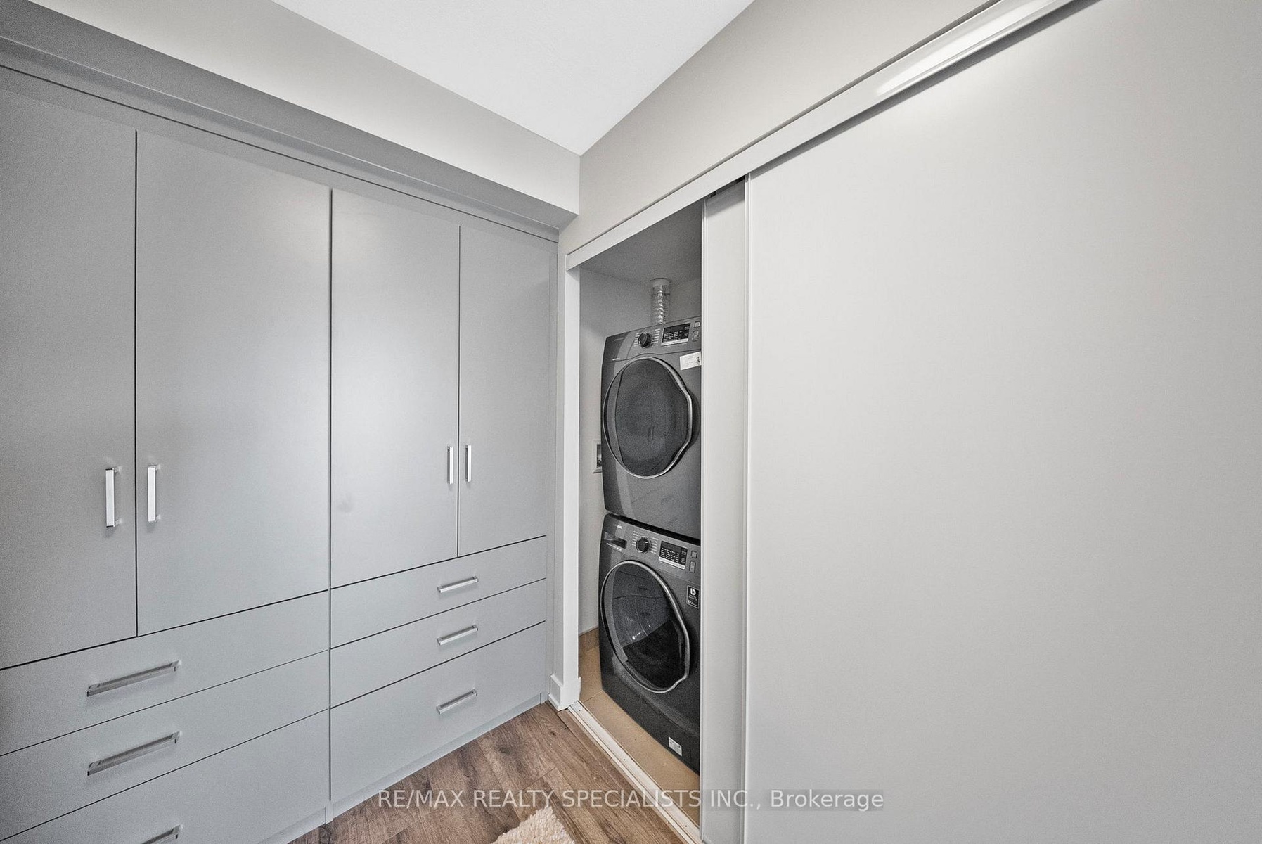 Stretching across the full width of this double unit, this modern home is anchored by one of the largest private terraces at 11 Superior - a wraparound sanctuary with panoramic views of the lake, yacht club, and Toronto skyline. Equally suited for lively family gatherings or lazy mornings with coffee and pancakes, this Penthouse-like seventh-floor suite redefines luxury living in Mimico with a rare sense of warmth, comfort, and connection. Custom designed as a double-unit master statement, this 2+1 bedroom, 2-bath residence with 2 parking spaces and 2 lockers strikes a perfect balance between sophistication and practicality. The grand salon, the heart of the home, is framed by floor-to-ceiling glass and a curved architectural wall-ideal for entertaining, family moments, or even an impromptu piano performance.The full-sized kitchen flows effortlessly into an open dining area large enough to host holiday dinners. The primary suite is a true retreat with terrace access, a walk-in closet, custom cabinetry, and a spa-inspired ensuite that invites relaxation. 2nd bed bring loft like feel with barn door and built-ins. The +1 bed/den offers versatility-perfect for guests, work, or creative projects-while also performing as a formal den and mudroom, adding huge practicality with built-ins and a dedicated laundry station. Convenience meets function with two side-by-side parking spaces and two lockers-an exceptionally rare find in boutique condominium living. Beyond its walls, 11 Superior remains one of Mimico's most celebrated addresses, offering unmatched access to the waterfront, parks, trails, shops and restaurants, TTC, and the Mimico GO Station. This is more than a condo-it's a home in a village that welcomes gathering, celebrates design, and captures the essence of refined, connected living by the lake.