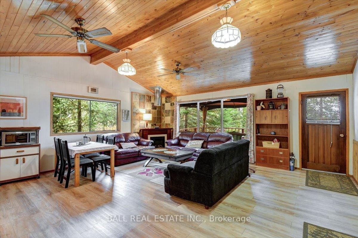 40 South Jordan Lake Road - Turnkey Waterfront Cottage with 101 feet of clean shoreline - 13 feet deep off the end of the dock. Tucked back in a quiet bay, this fully furnished cottage offers the perfect blend of comfort, privacy and value. The open concept living area showcases stunning tongue and groove vaulted ceilings, expansive windows, and lake views that fill the space with natural light. The inviting layout is ideal for entertaining or relaxing with family, and comes move-in ready with all appliances and most furnishings included. With two bedrooms and a spacious four-piece bathroom featuring a Jacuzzi tub and multi-jet shower, this cottage provides all the essentials for lakeside fun! Main floor laundry adds convenience - large laundry space could convert to a third bedroom, while a drilled well, full septic system, cell service, and high-speed internet ensure you enjoy modern comforts in a peaceful setting. Step outside to the front deck area and a large level front yard leading to the stone path walkway down to the dock - perfect for swimming, boating, or simply soaking in the sun and the view. The property's mature trees offer excellent privacy, while the township maintained road ensure easy, four season access. Currently heated with plug-in electric units, this cottage can easily be converted to four season - just insulate the floors and install a heating system to enjoy year round use. Offered at a fantastic price, this is an exceptional opportunity to get into the waterfront market and start making memories by the May long weekend. New water heater in 2025. Shingles were replaced in 2020, and the septic was pumped in 2021. Available for immediate possession!
