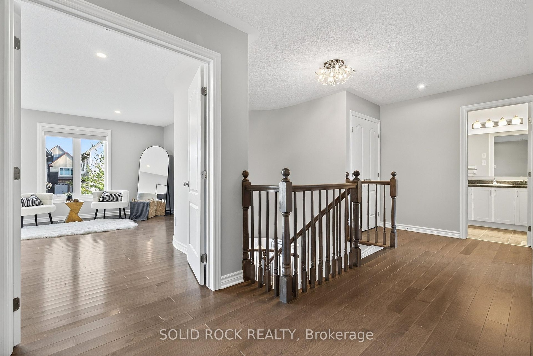 Nestled between two LUSH GREEN spaces, Highbury Woods and the Capital Pathway, this single-family home offers exceptional PRIVACY and scenic NATURAL BEAUTY. With over 3,000 sqf of ABOVE-GROUND living space, this ENERGY STAR CERTIFIED home was built by Tartan. It features 4 bedrooms, 5 bathrooms, and a main-floor multipurpose room that can easily be converted into an additional bedroom. The second-floor loft provides even more flexibility. The owner has THOUGHTFULLY DESIGNED and UPGRADED the home with hardwood floors and stairs, pot lights throughout, extended kitchen cabinets, AAA granite countertops paired with ceramic backsplash, and hard wired ceiling speaker and pre-wired for audio system in family room and basement. The roof was constructed to be SOLAR-PANEL READY. Long list of upgrades! Upstairs, the primary suite impresses with LUXURIOUS SIZE, EXPANSIVE WINDOWS, and GEORGIOUS 5-piece ensuite. Two additional bedrooms are connected by a Jack & Jill bathroom, while a generous L-shaped den can easily be divided into two separate spaces. The well-located second-floor laundry room also has plenty of organized space. 4th bedroom and 1 main bath are on the other side of wide upper hall. The finished basement has been completed with meticulous attention to detail, offering delightful surprises and versatile spaces for family activities or entertaining. Stepping outside to discover a stunning front and backyard, where interlock, stepping stone, mature tree roots, and a layered landscape design create a harmonious blend of natural charm and thoughtful planning. The current owner has masterfully combined High QUALITY, EASY MAINTENANCE, CONSISTENT STYLISH LOOK, and FORWARD-THINKING design prepared for the future. All of this is within short walking distance to commercial plazas, trails, public transit, clinics, pharmacies, top-rated schools, and the super Ken Ross Park. It's truly a show stopper!