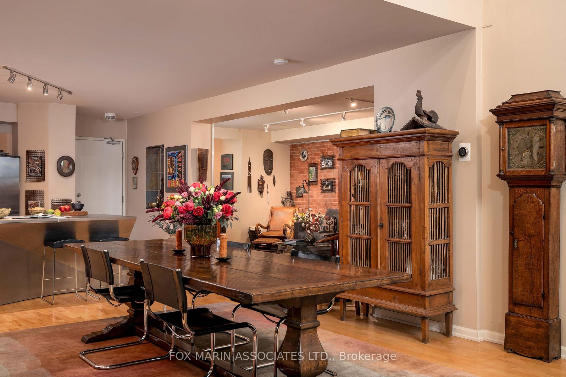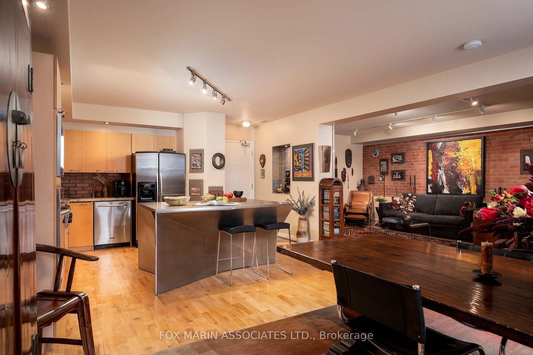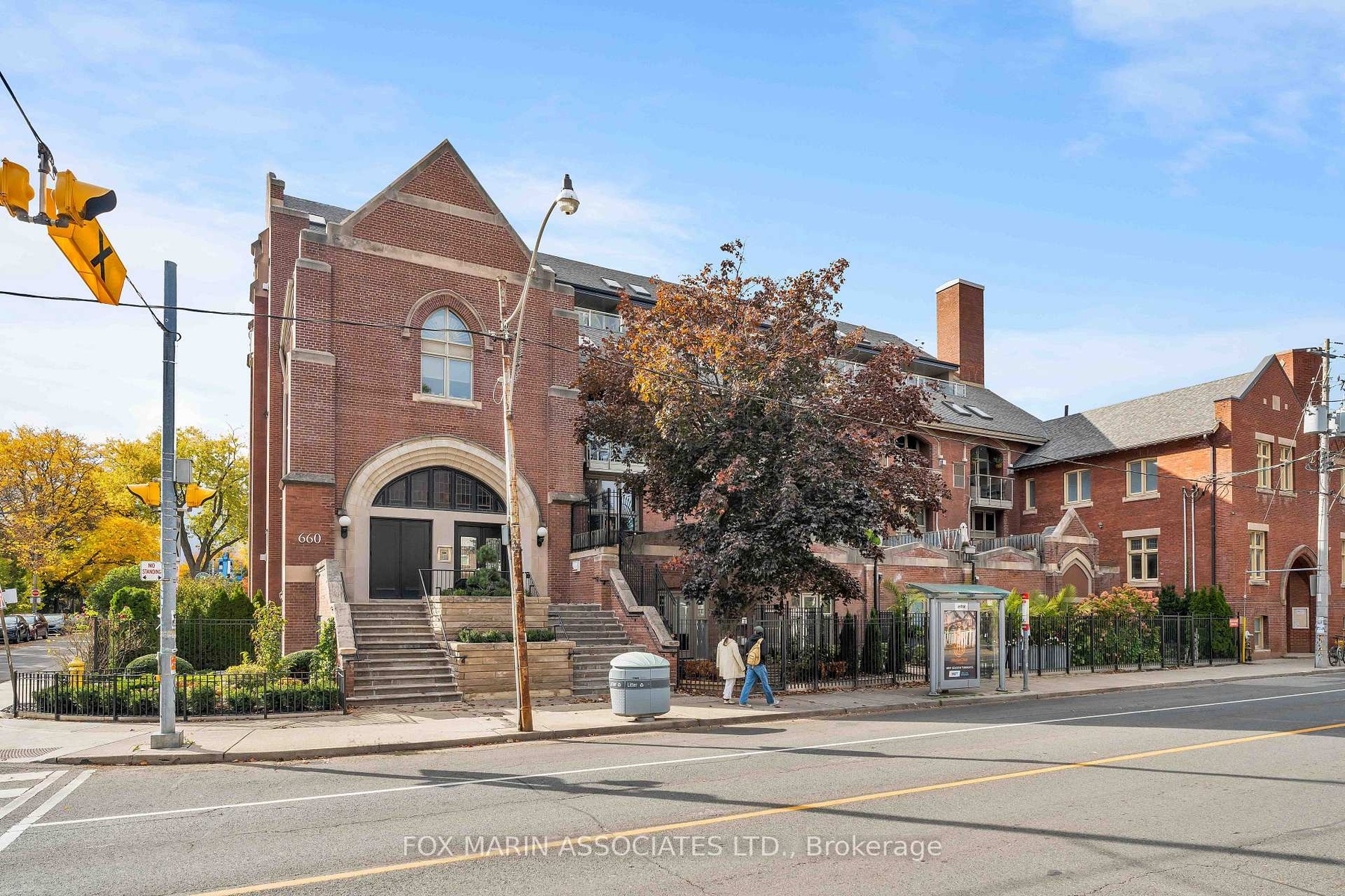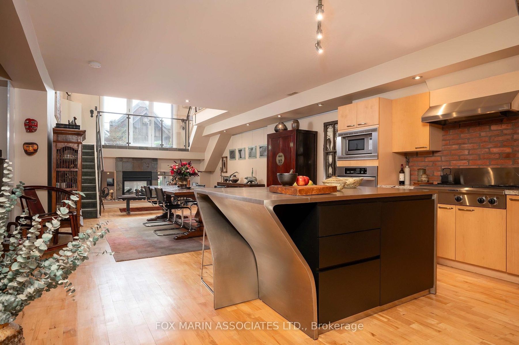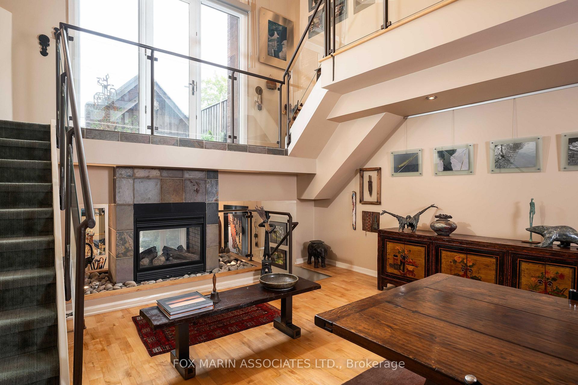 In a city filled with repetition, Loft 112 stands quietly apart. There's no question that there's nothing quite like it. Full stop. Once the Riverdale Presbyterian Church, this remarkable 2004 Bob Mitchell conversion remains a study in adaptive reuse & timeless artistry. Inside, texture tells the story: exposed brick walls, sculptural staircases, warm hardwood flooring & stainless-steel accents anchor its generous rooms & cozy alcoves. Sunlight washes through floor-to-ceiling windows from the upper & lower outdoor spaces, catching the patina of vintage woods, curated bookshelves & collected art throughout. Spanning 2,250+ sq. ft. inside & another 492 sq. ft. outdoors, this multi-level residence unfolds with intention. The open kitchen, outfitted with marble counters, a geometric island & bar seating for two, flows into a dramatic dining area framed by 17 ft ceilings, exposed brick walls & soft track lighting, while a dual-sided gas fireplace hums with quiet elegance. Upstairs, the 800+ sq. ft. primary suite feels like a private atelier with a 4- pc ensuite, walk-in closet, open-air office & stunning east-facing terrace walk-out. Each level reveals new layers of design & purpose, balancing grandeur with function. The main floor's 2nd bedroom, enclosed by sliding doors with a 3-pc ensuite & laundry nearby, offers flexibility for guests, creative pursuits or a private screening room. A bonus living area provides a versatile extension of the home's main space, ideal for relaxing, entertaining or creating a dedicated media or listening lounge. Below grade, an unexpected brick-walled wine cellar provides an atmospheric retreat, easily reimagined as a reading room or home gym. As the largest suite in the building, bar none & unseen on the market since 2006, Loft 112 remains a singular expression of Toronto's architectural evolution. In this residence, history, art & modern life move in effortless cadence, impossible to replicate (& never to duplicate).