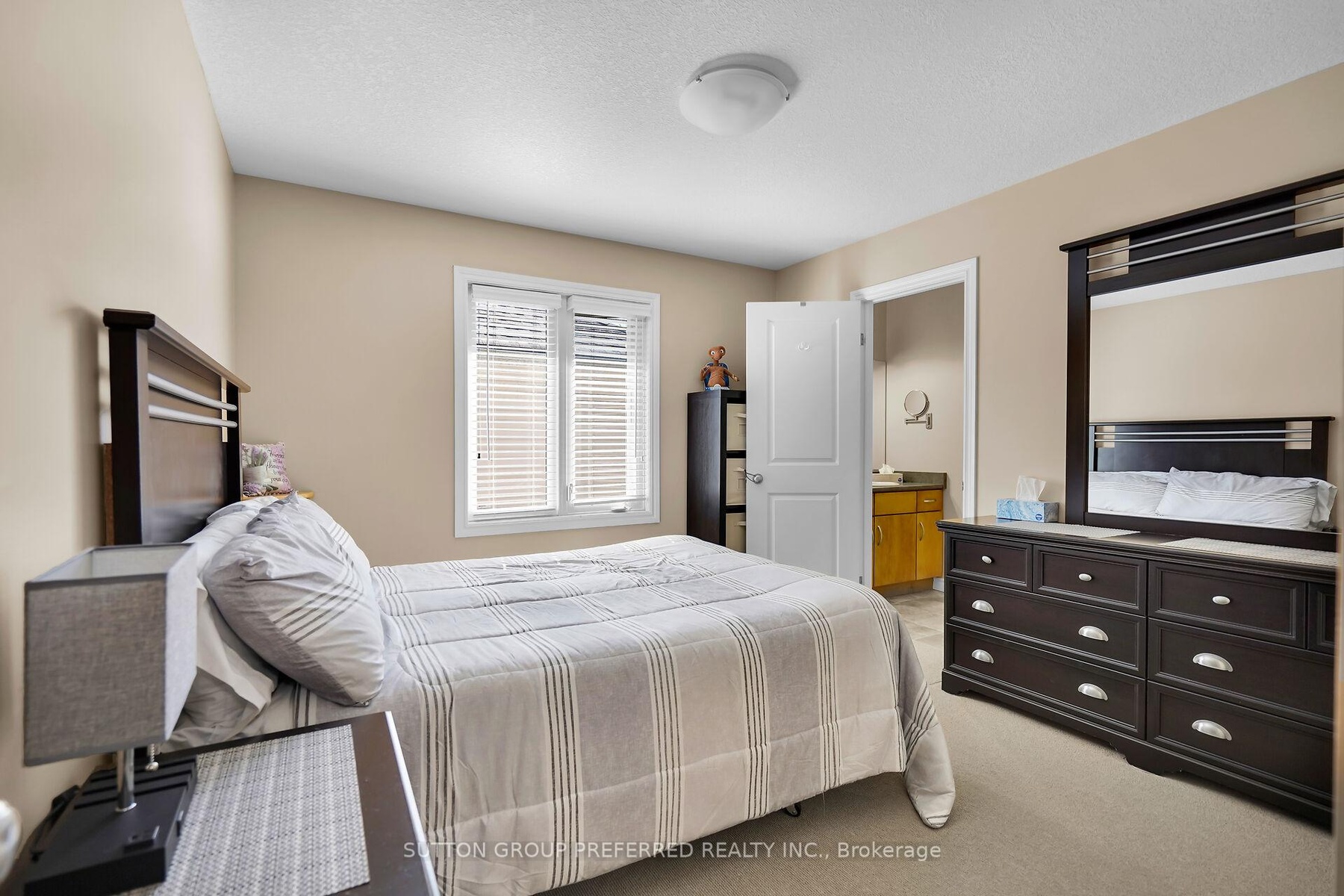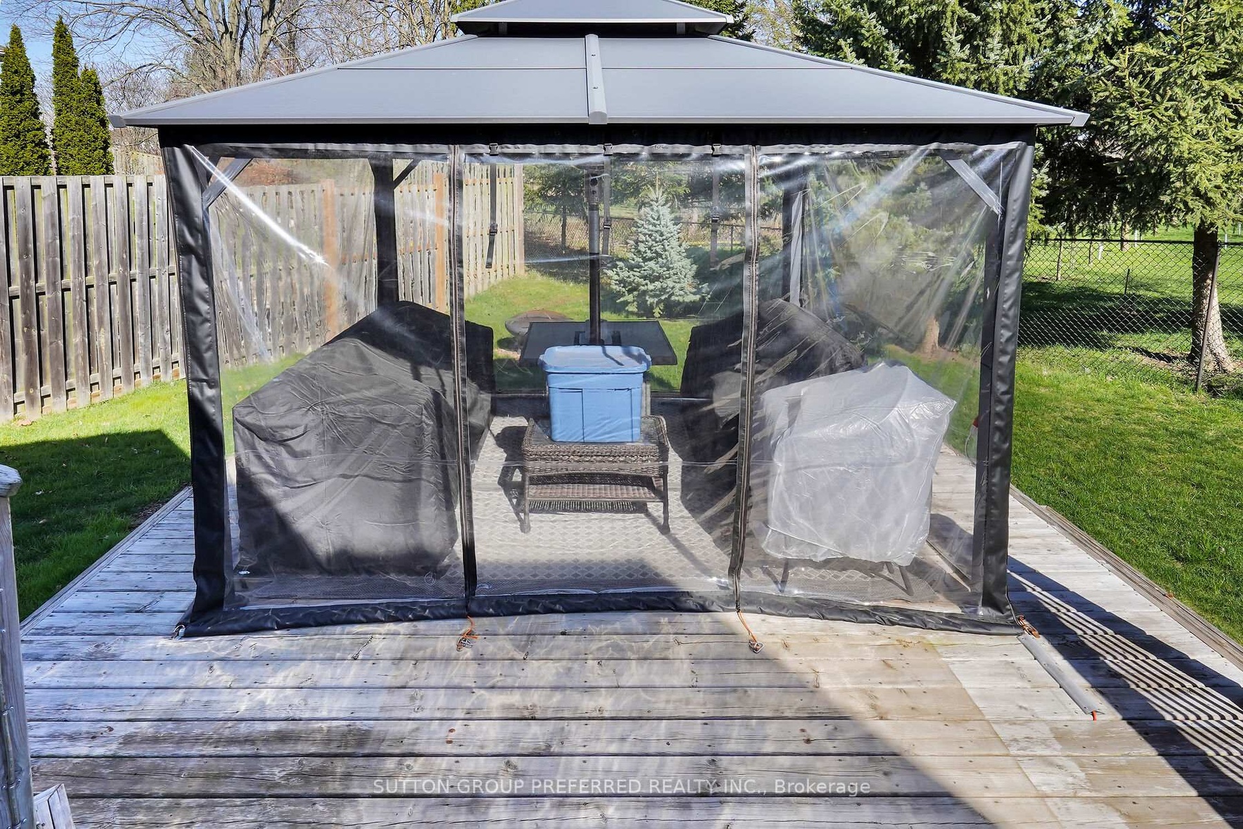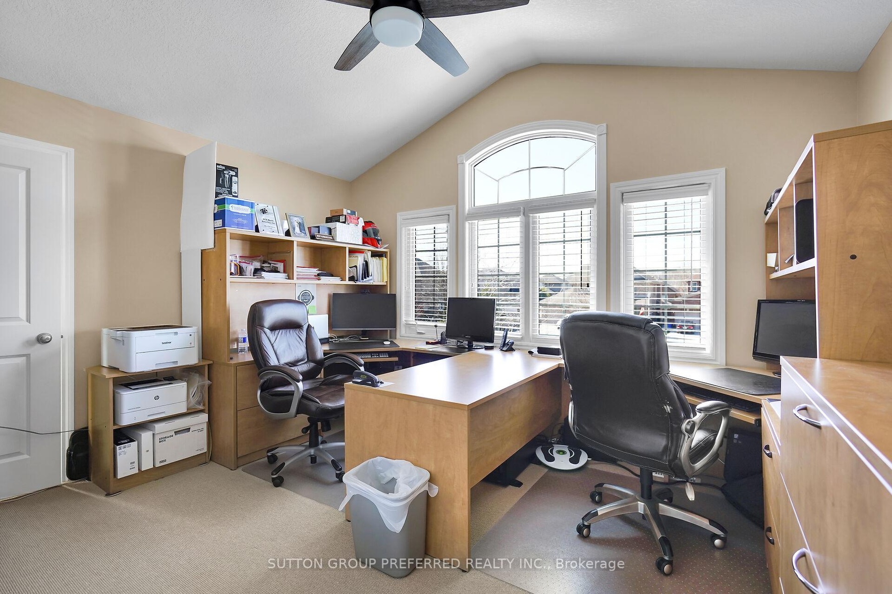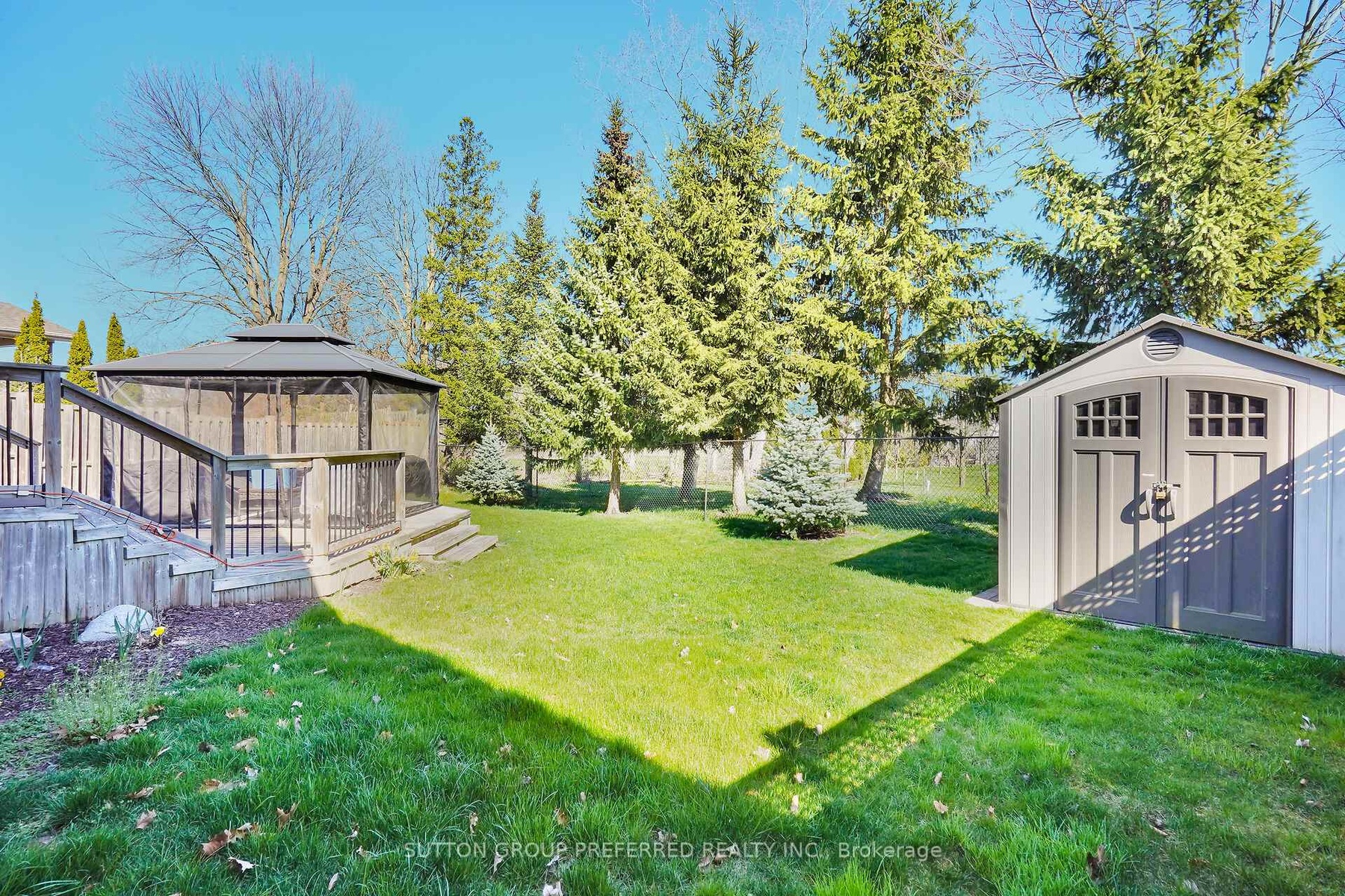 Spectacular Lambeth Court location with pie lot. Stunning curb appeal. This former Artisan model home comes fully finished. Gracious Open foyer welcomes you inside, Enjoy the 9ft ceilings throughout main, main floor laundry, custom kitchen with granite counters overlooking family room with gas fireplace, dining room, and eating area with terrace doors to 2-tiered deck with gazebo. Fully fenced yard, very private. 3 large bedrooms upstairs with primary bedroom with walk-in closet and private 5-piece ensuite bath, also Jack & Jill 4-piece bath between the 2 other bedrooms. Lower-level games room and rec-room, plus bedroom and 4-piece bath, wired for 5.1 surround sound. All standing cabinets included in basement hallway. Wrought iron railings, transom windows.