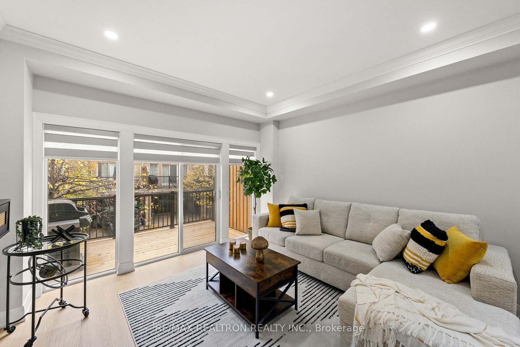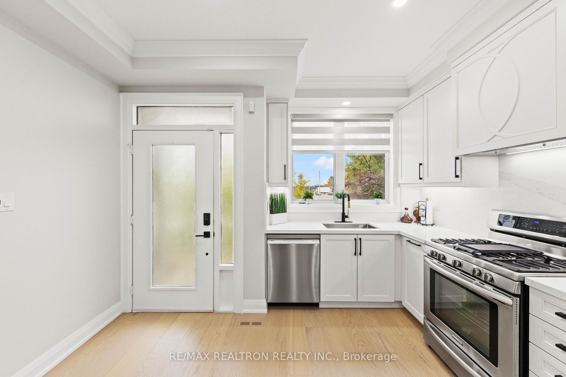 Welcome to 12 Market Garden Mews - Luxury Living in Stonegate-Queensway. Nestled along the scenic Humber River and minutes from the shores of Lake Ontario, Stonegate-Queensway is one of Etobicoke's most desirable neighbourhoods - a perfect blend of charm, convenience, and community spirit. Experience sophisticated, turn-key living in this beautifully upgraded freehold townhome, designed with style and comfort in mind. This stunning residence showcases wide-plank hardwood floors, elegant crown moulding, motorized blackout zebra blinds throughout, pot lights, and wrought-iron stair railings. A smart doorbell system connects seamlessly across all floors for modern convenience. The chef-inspired kitchen features a stainless steel single bowl undermount sink, stainless steel appliances, and a custom stainless steel hood fan, offering both beauty and function. The primary bedroom boasts large windows, a walk-in closet, and a Jack & Jill bath, while the modernized bathrooms feature high-end finishes for a true spa-like retreat. Step outside to a newly built deck with a gas BBQ hook-up, perfect for entertaining or relaxing outdoors. The finished basement with a powder room provides additional versatile living space. Enjoy peace of mind with recent upgrades including Roof (2024), HVAC (2025), A/C (2025), Tankless Water Tank (2025), and a new full-size front-load washer and dryer (2025) - everything done, so you can simply move in and enjoy. 12 Market Garden Mews offers timeless elegance and modern convenience in a vibrant, family-friendly community - the perfect place to call home.