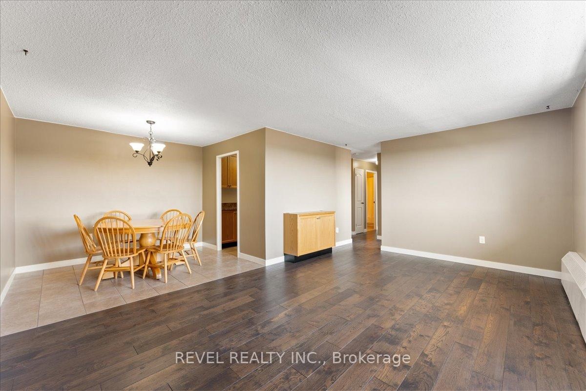 Calling all first time buyers and investors! This clean and bright 2 bedroom unit is on the top floor of a quiet, well-maintained building. Enjoy the southern view from the balcony. Spacious, open-concept living/dining room. Hardwood flooring in living room and bedrooms. The kitchen features custom oak and glass cabinetry, drawers, and appliance depth-countertops. Huge walk-in closet in the primary bedroom and large closet in the second bedroom. Top floor = no neighbours above! Low maintenance fees and property taxes. Recently upgraded heaters in all rooms. Easy to lease for investors.