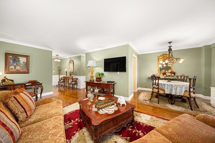 Welcome to Apartment 7IJ, the very definition of turn-key living. Spanning approximately 1,400 square feet with a split-bedroom layout, this thoughtfully combined residence is one of the only true two-bedroom homes on the south side of the building. Since the building was not originally constructed with two-bedroom apartments on the building’s southern side, such layouts only exist through rare combinations like this one. Set at the back of the property, the apartment is filled with natural light and enjoys a rare sense of peace and quiet. A wide entry foyer sets the tone and leads into a beautifully renovated space. The kitchen is outfitted with custom wood cabinetry, granite countertops, and full-size appliances including a Sub-Zero refrigerator, while the adjacent dining area and living room flow seamlessly to create an inviting space for both entertaining and everyday living. Pristine hardwood floors, custom crown and wall moldings, ‘country-style’ window shutters, built-in storage beneath the windows, and through-the-wall air conditioning in every room further elevate the home. The first wing of the apartment offers generous closet storage, a sizable bedroom, and a newly renovated marble bathroom with recessed lighting and all-new plumbing. On the opposite side, the primary suite is truly exceptional, spanning approximately 500 square feet with three walk-in closets, a spa-like bathroom twice the size of any other in the building, and a bedroom large enough to comfortably accommodate children while still leaving ample space for play and study.Apartment 7IJ represents a rare combination of thoughtful upgrades and expansive proportions, an ideal opportunity for buyers seeking both functionality and style.