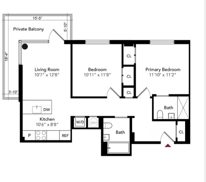 Residence 3A is the largest two-bedroom home in Noble with a corner living room and excellent closet space.