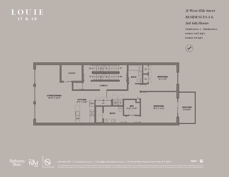 LOUIE 17 is a brand-new boutique condominium nestled in the heart of Ladies Mile Historic District, the symbol of Gilded Age architecture and New York City grandeur. Inspired by the notable loft style NYC buildings by a prominent architect Louis Korn, LOUIE 17 is the collaborative work of the strong team of New York City and European architects, interior designers, and marketing specialists. The building features a collection of 9 full floor residences available in 3-bedroom full-floor layouts and enhanced by direct elevator access and private outdoor spaces. Residents will enjoy the opulence of common spaces that include meticulously designed lobby, fitness room, spa, and a stunning rooftop with endless city views, lush planters, lounge chairs and grills.
