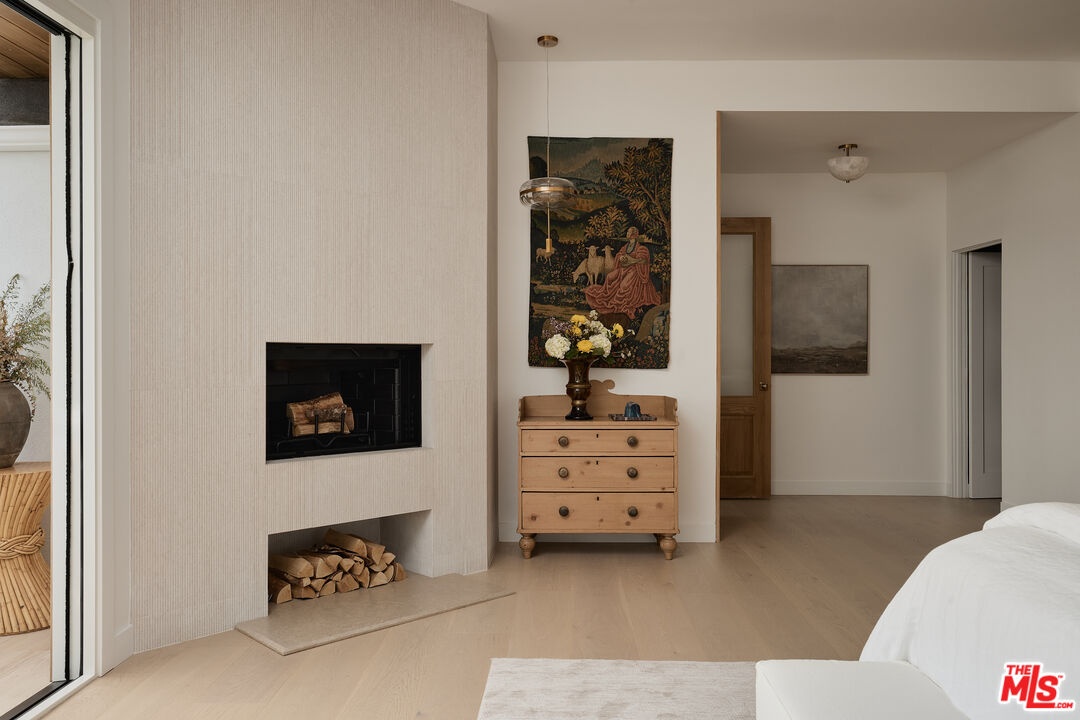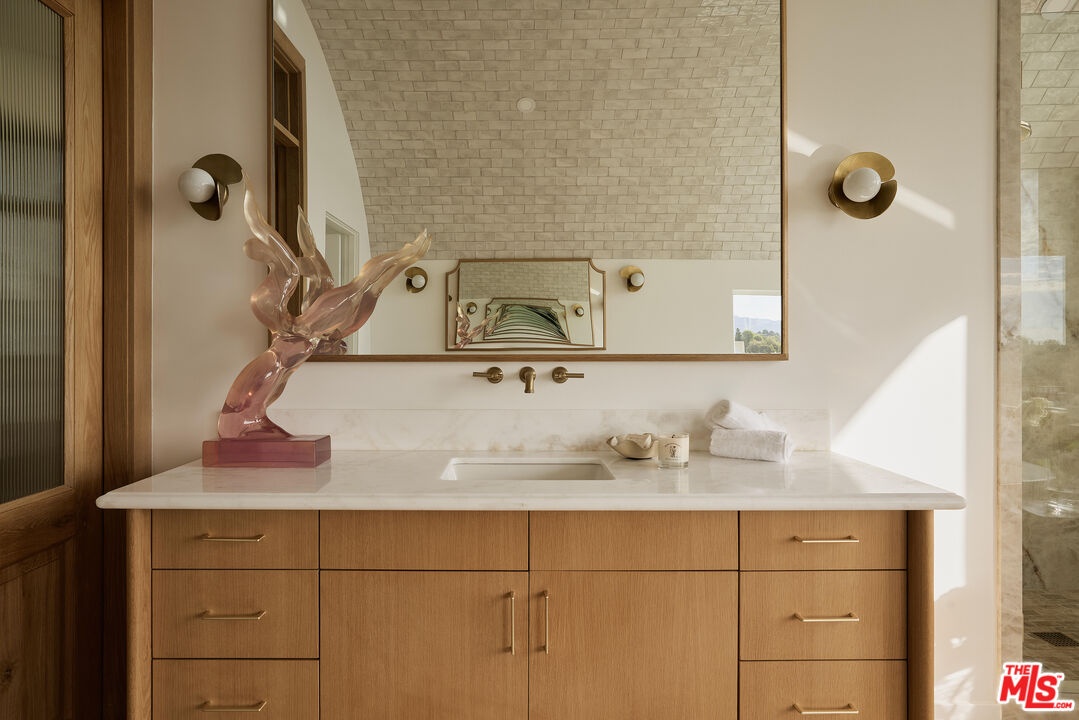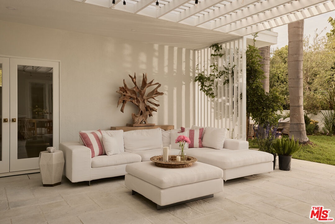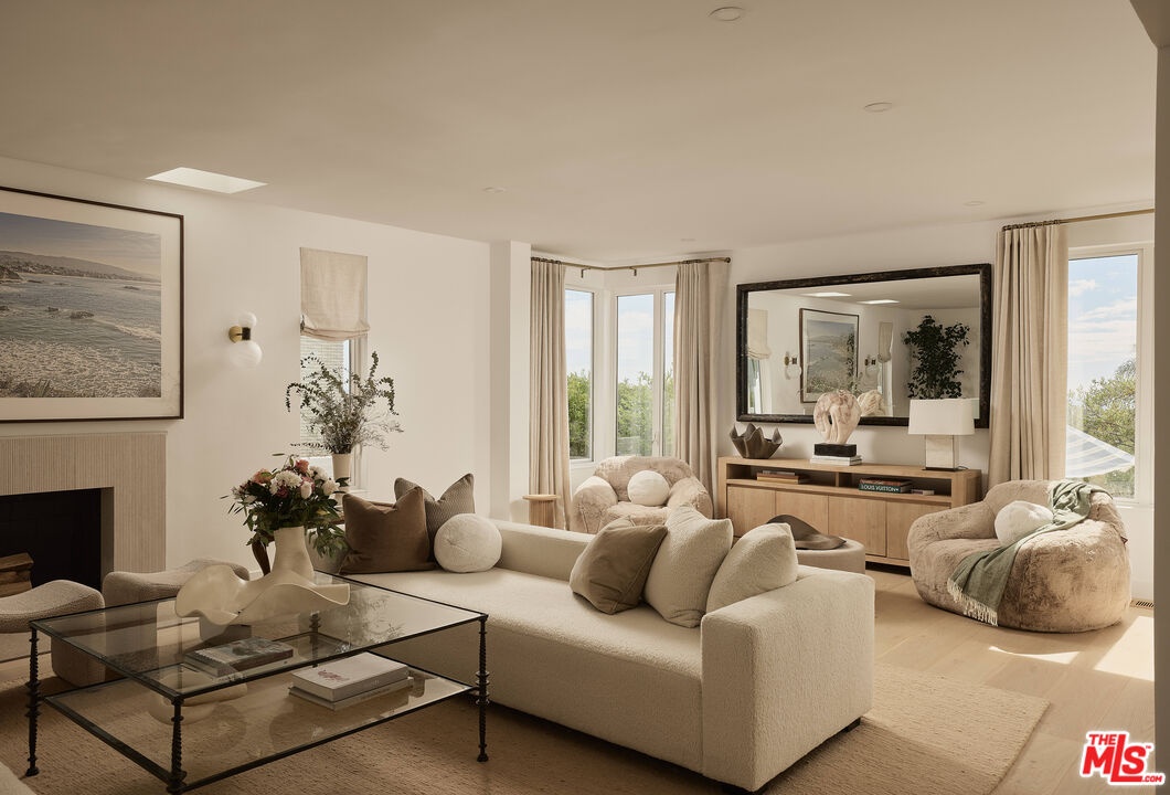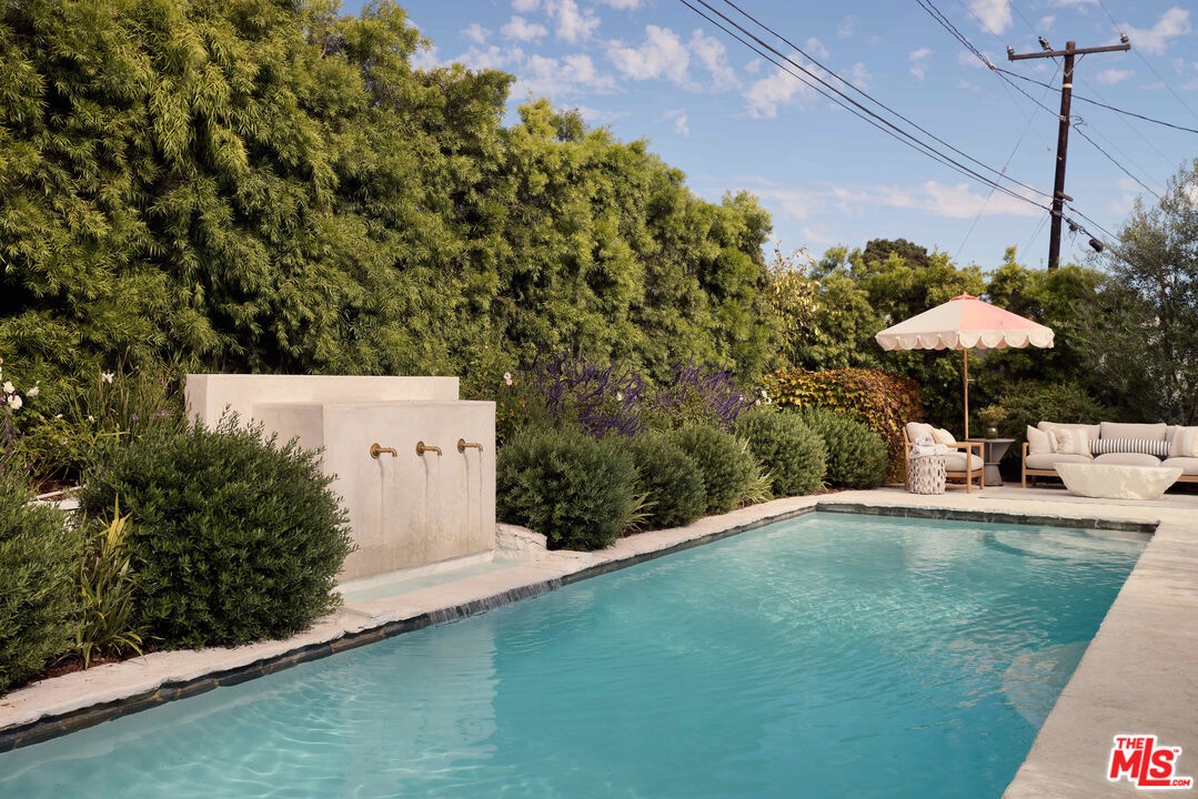 Perched at the highest point of Berkeley Street in Santa Monica, Casa Tramonto is more than a home - it's a story, an experience, and a retreat. From the moment you ascend the private driveway, a sense of calm takes over, carried by breathtaking views that capture both sunrise and sunset across the city, ocean, and mountains. Every detail of this reimagined estate speaks to thoughtful craftsmanship and timeless design. Local artisans built custom oak cabinetry and vanities throughout, paired with Kalista fixtures and an artful mix of natural stone, tile, and porcelain. Wide-plank white oak floors ground the interiors, while oversized oak doors with reeded glass and Rejuvenation hardware add character and warmth. Light floods through fully extendable glass doors, opening each room to balconies and breezes. Belgian linen dressings frame windows, and every bedroom offers a private moment among the trees. This home offers a highly functional layout with four bedrooms upstairs, one bedroom downstairs, and an additional office/den space perfect for work or a gym. The newly resurfaced exterior and refreshed landscaping bring the property into harmony with its setting, now surrounded by 60 mature trees and enhanced by thoughtfully updated lighting. The backyard is an invitation to linger - swim in the updated pool, unwind by the fountain, or simply soak in the serenity. Behind the beauty, modern systems provide peace of mind: two tankless water heaters, dual-zone HVAC, updated plumbing and electrical, and two laundry spaces. Designed by Lizabeth K. McGraw of Tumbleweed & Dandelion and built by American Valley Builders, Casa Tramonto is a rare work of art.