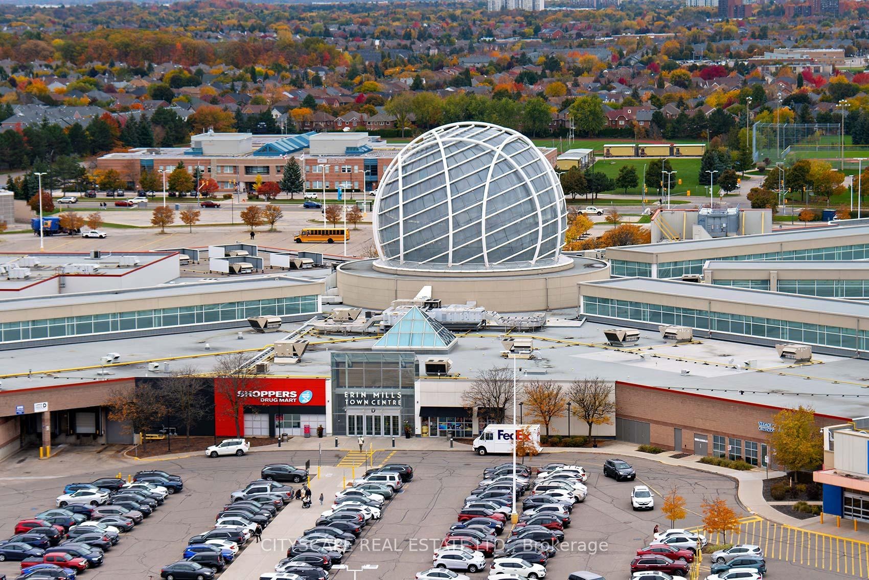 Freshly Painted and renovated, Brightened up, Outstanding Location, Erin Square 2 Bed 2 washrooms and a spacious den, Corner unit with wraparound balcony. opposite to Erin Mills Town Centre with amazing shopping, great Restaurants & Dining, Highly rated Schools, Credit Valley Hospital, Quick access to High way well maintained Landscape d Gardens. Building Amenities Include: 24Hr Concierge, Guest Suite, Games Room, Playground for Children , Rooftop Outdoor Pool, Terrace, Lounge, BBQ, Fitness Club, Pet Wash Stations. This spacious 2-bedroom + den, 2-bathroom unit offers a bright and modern layout with 9-foot ceilings and big windows. Virtually Staged.