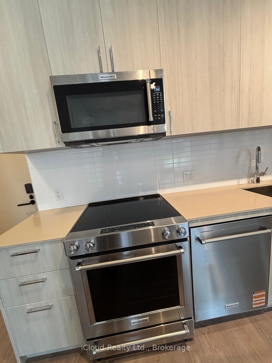 Experience upscale living in Oakville's sought-after Preserve neighbourhood with this brand- new, never-occupied 2+1 bedroom, 2-bathroom suite at the prestigious Carding House Condos by Mattamy Homes. Offering approximately 820 sq. ft. of thoughtfully designed space, this modern condo features a bright open-concept layout, soaring 12-foot ceilings, and wide-plank flooring throughout. Located on the main level, this unit offers easy access and convenience, making it an excellent choice for seniors or those seeking step-free living. The sleek, contemporary kitchen boasts stylish cabinetry, quartz countertops, stainless-steel appliances, and a built-in microwave, seamlessly flowing into the sun-filled living area that opens onto an expansive retractable glass patio-perfect for enjoying morning coffee or evening relaxation. The primary bedroom includes a private ensuite bathroom, while the second bedroom is ideal for guests or a home office. A versatile den provides additional space for work or leisure. Designed for modern comfort and convenience, the suite includes Valet Smart Home technology for lighting, temperature, and secure access, in-suite laundry, and a heat pump with central air conditioning. Residents enjoy access to exceptional amenities, including a fully equipped fitness centre, yoga studio, elegant party room, and sophisticated social lounge, all supported by 24/7 building security for peace of mind. Perfectly situated just steps from everyday essentials, cafés, restaurants, and scenic parks-and only minutes from top-rated schools, major highways, the GO Station, and Downtown Oakville-this residence blends modern luxury with urban accessibility. Includes one underground parking space and one locker. Tenant is responsible for all utilities. No smoking, Airbnb, or short-term rentals permitted.