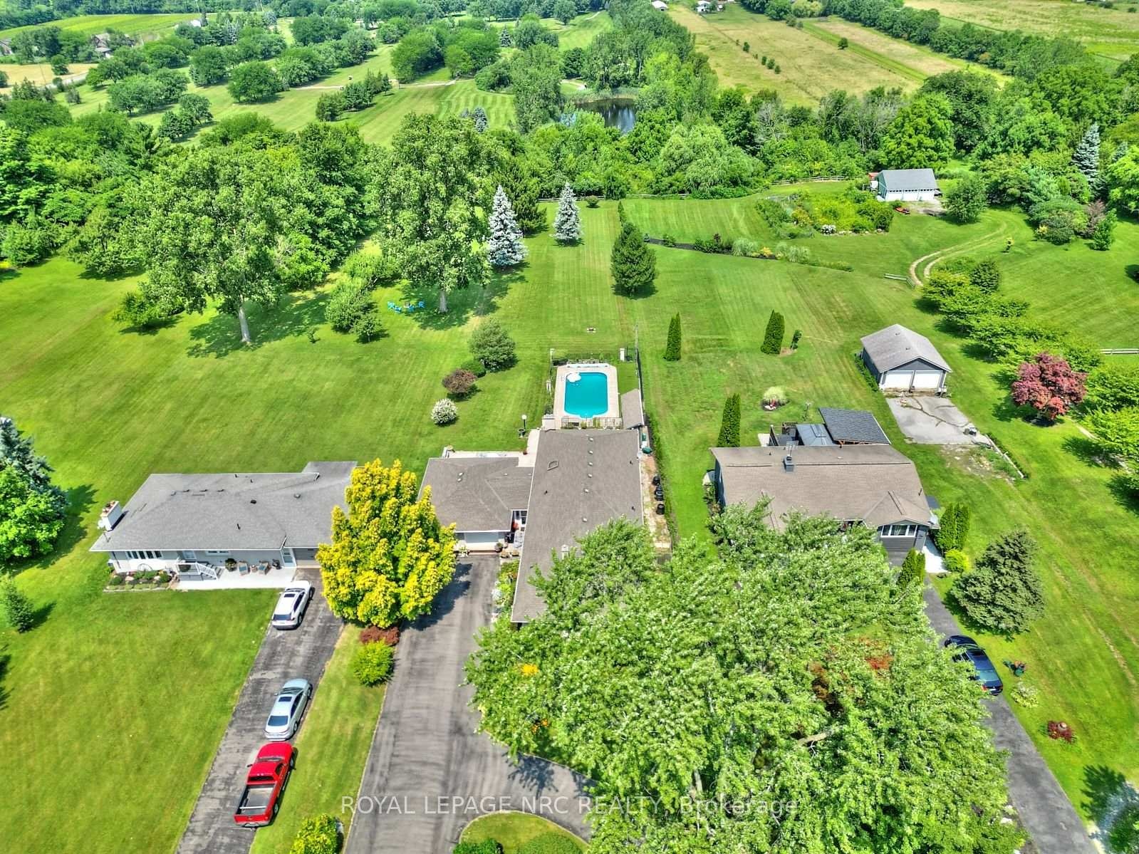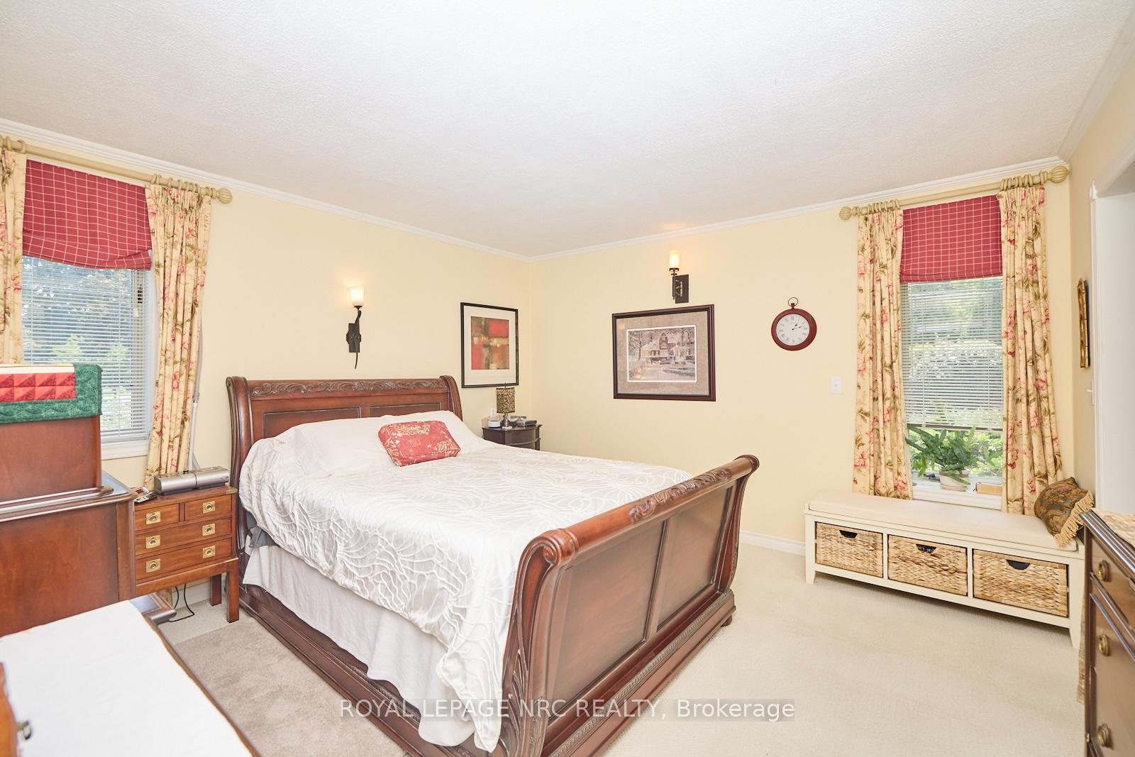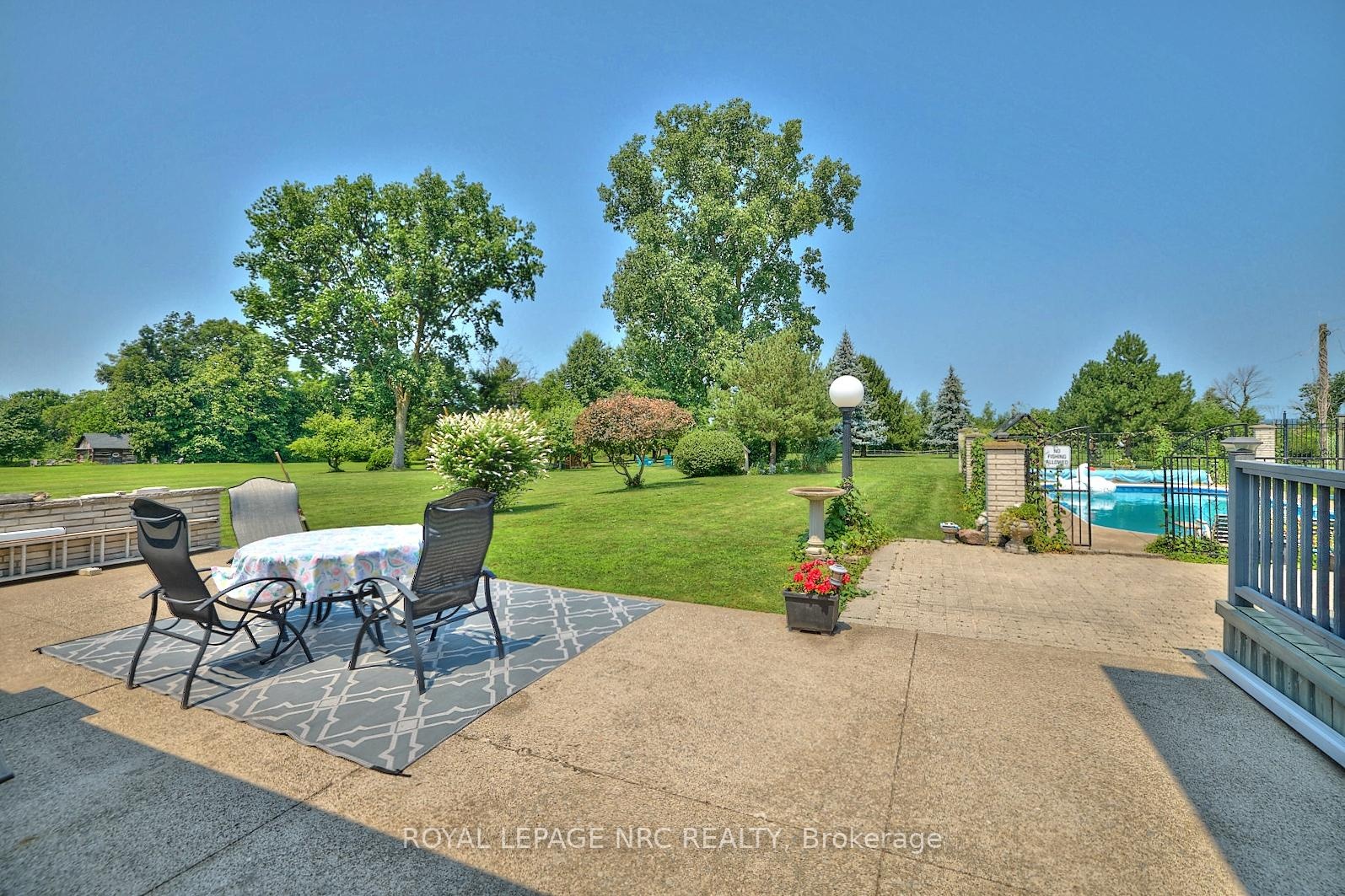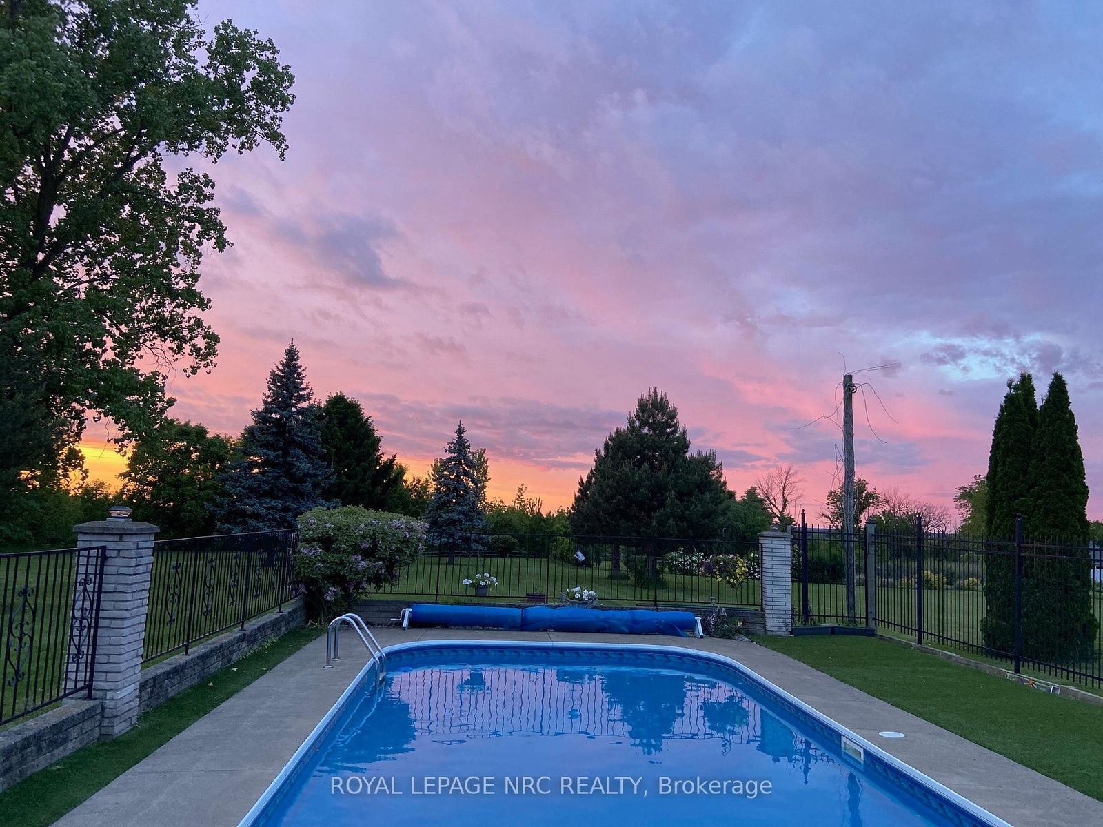 BONUS: Seller will credit buyer $25,000 for decorating/improvements on completion. Say good-bye to the hustle and bustle of city living. Come home to fresh air, peace and quiet, a park like yard, the wonders of nature, and awesome sunsets. This sprawling, quality custom built bungalow features the convenience of 1 floor daily activities. It includes 4 bedrooms, 2 full baths, spacious living rm, kitchen, dining rm, and laundry all on the main level. The lower level boasts a large family rm with gas fire place and games/library rm for your enjoyment+ work shop and big storage area. A total of  3,000+ sq ft of finished space. The sunlight streams through the entrance skylight,  floor to ceiling windows overlooking the back yard and large windows in the family, and games/library rooms. Newer heat pump provides very clean and efficient air and heat throughout the seasons. Fully renovated 4pc bath. Enjoy  the 6ft shower with rain head or relax in the spa-like soaker tub. Come inside to feel the comfort and  spaciousness  of this well maintained home. It is much bigger than it looks from the street! In summer the back yard is an entertainers delight .Convenient back door entrance from the eating area to a two tiered deck and large patios overlook the inground pool and deep yard where you could host a Company party, practice golf ,play football or baseball. An oversize 2 car garage and lots of parking complete the picture. One of the best locations, on the Bench of the Niagara escarpment in N.-O.-T.-L. It fronts on to vineyards and backs on to a golf course (the best of both worlds)!  Among multimillion dollar homes, with more being built close by. This premium, almost 1 acre property, will be a great investment. Both home and property offer excellent potential and possibilities. Central location has convenient access to N. F., St. Catharines, the U.S. and major highways. A home for all seasons. Enjoy the present while investing in the future. Make an appointment  TODAY!