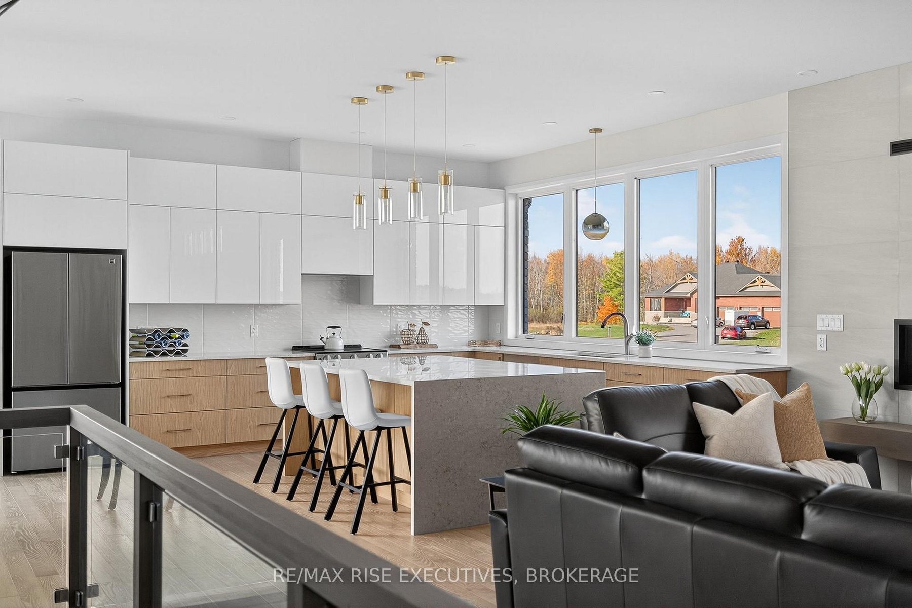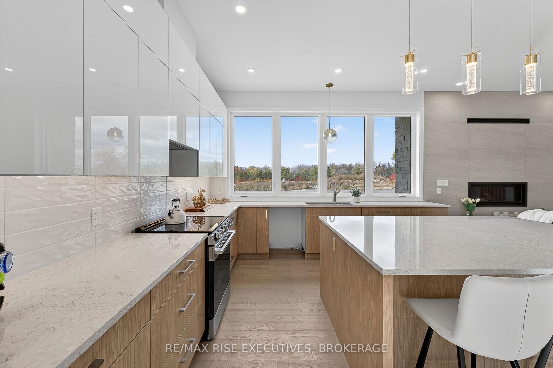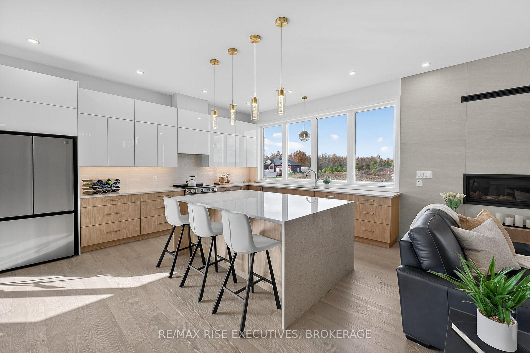 Nestled just minutes north of Kingston, this luxurious estate-style home combines timeless craftsmanship with modern sophistication. Built on a solid ICF foundation and wrapped in a full masonry exterior, it stands as a true testament to elegant and enduring design. Step through premium doors into a grand foyer with soaring ceilings, where Gaylord hardwood floors flow throughout the home. The open-concept main level is anchored by a striking gas fireplace in the living room-creating warmth and ambiance that beautifully complement the home's architectural character. At the heart of the home, a gourmet kitchen worthy of a magazine spread features a waterfall island, custom cabinetry, and stainless steel appliances, including a full-sized fridge and stove. Upstairs, glass railings and hardwood staircases showcase the fine attention to detail, leading to a spa-inspired primary ensuite with a glass-enclosed shower-your private retreat at the end of the day. Outside, a covered rear deck overlooks the expansive backyard, offering a perfect setting for entertaining or quiet evenings outdoors. With a three-car driveway, premium construction, and the reassurance of a Tarion new-home warranty, this home blends style with long-term confidence.This is estate-style living at its finest-a statement residence that balances grand design, premium finishes, and lasting quality in a serene, highly desirable location.